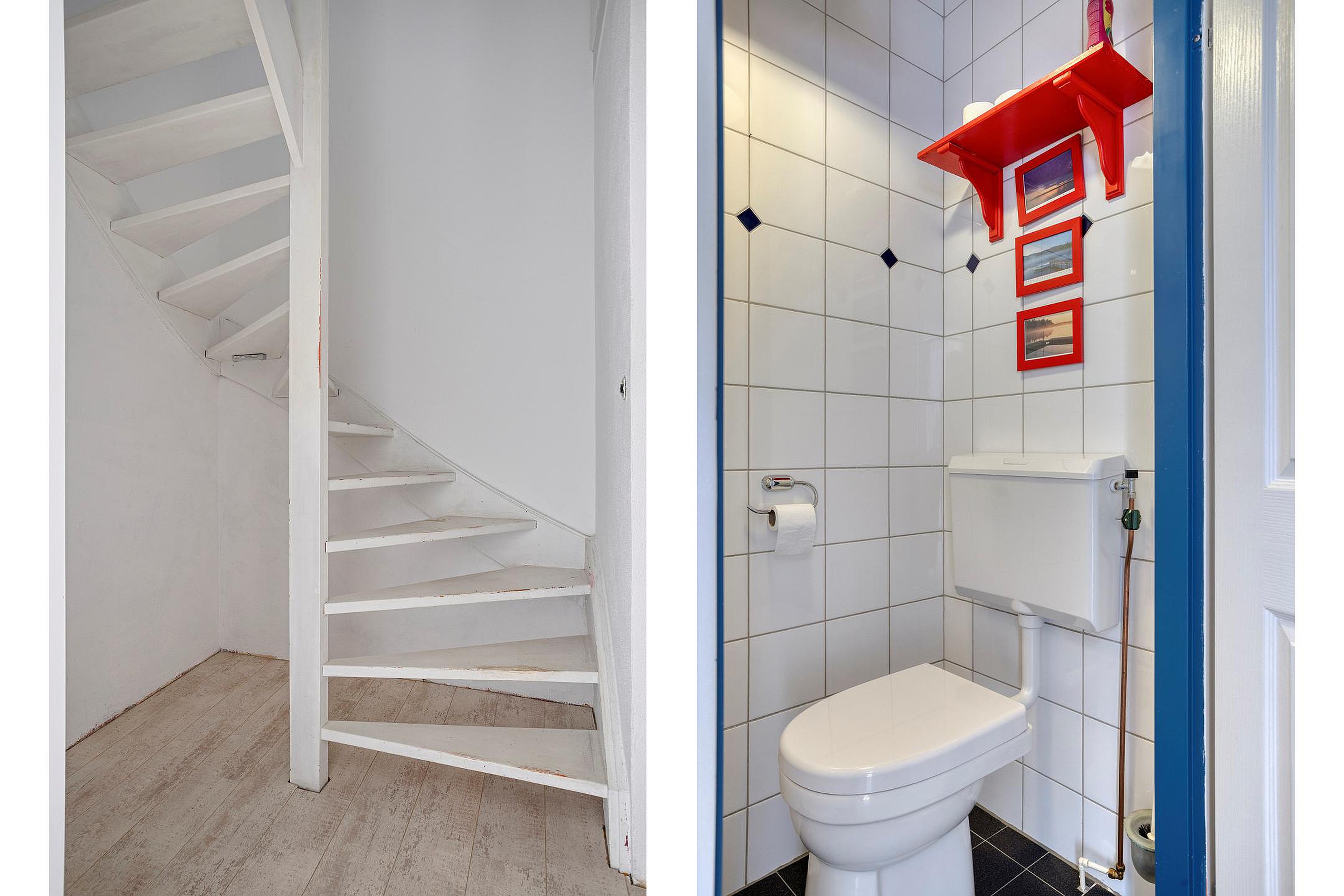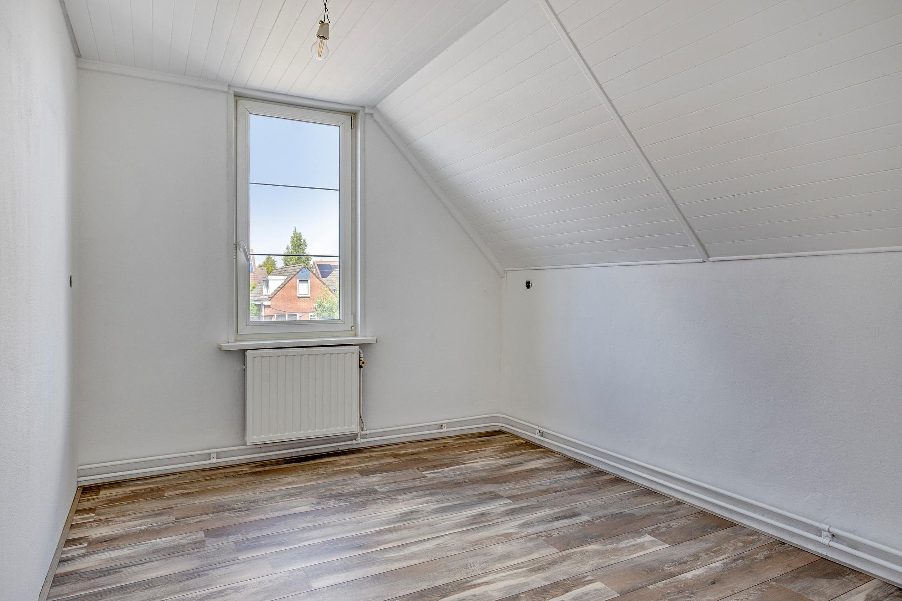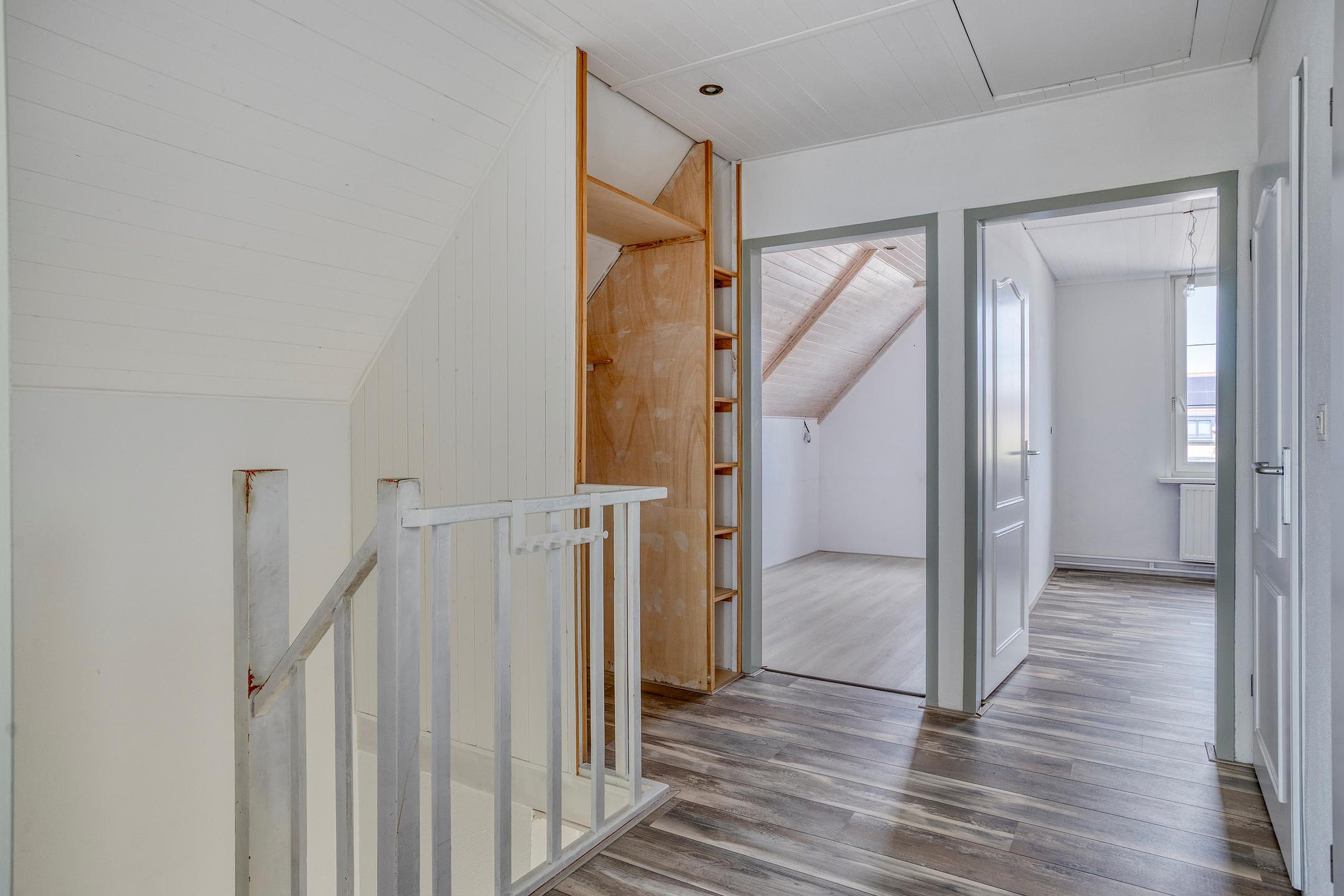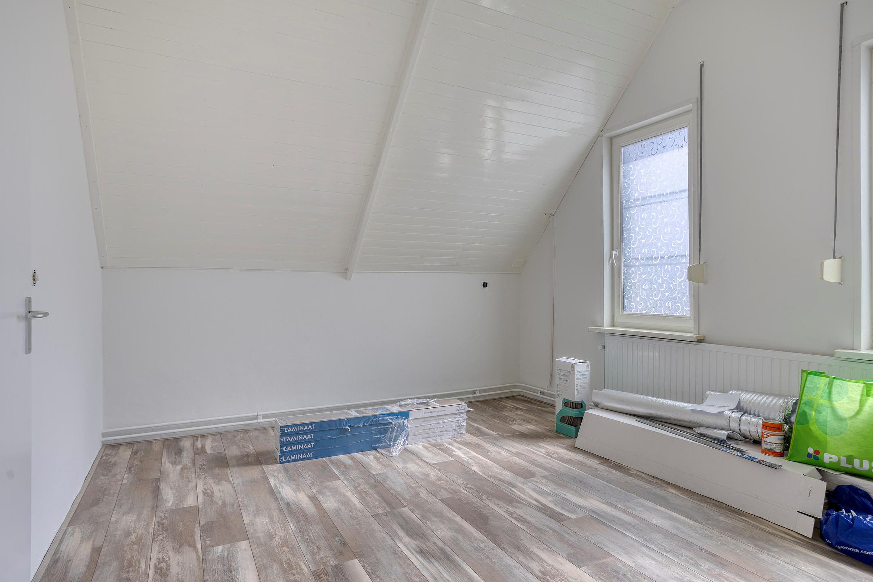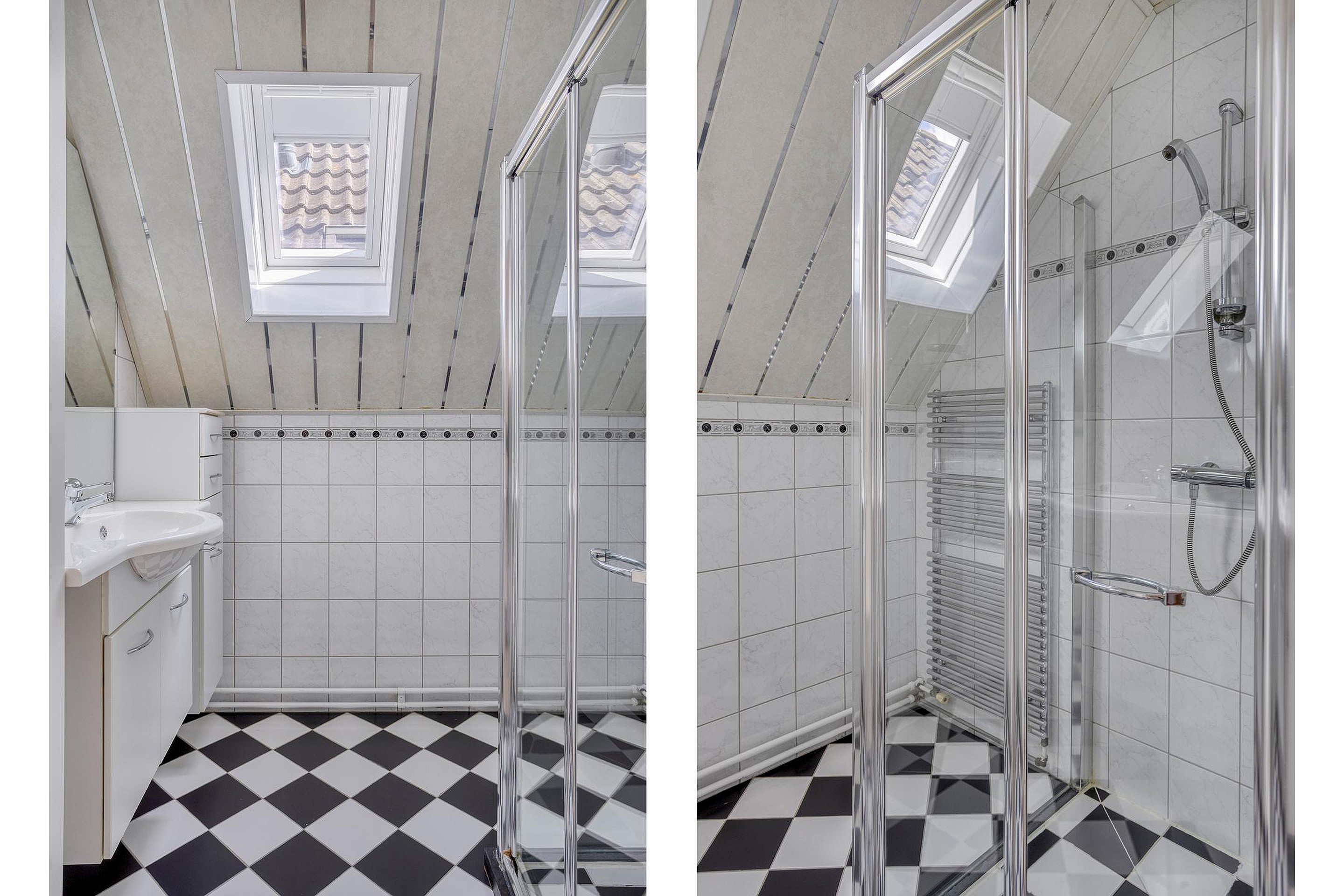 Hier bevinden zich drie slaapkamers, allemaal voorzien van nieuw laminaat, en de badkamer met douche en wastafelmeubel. Via de vlizotrap is de bergzolder bereikbaar, ideaal voor extra opslag.