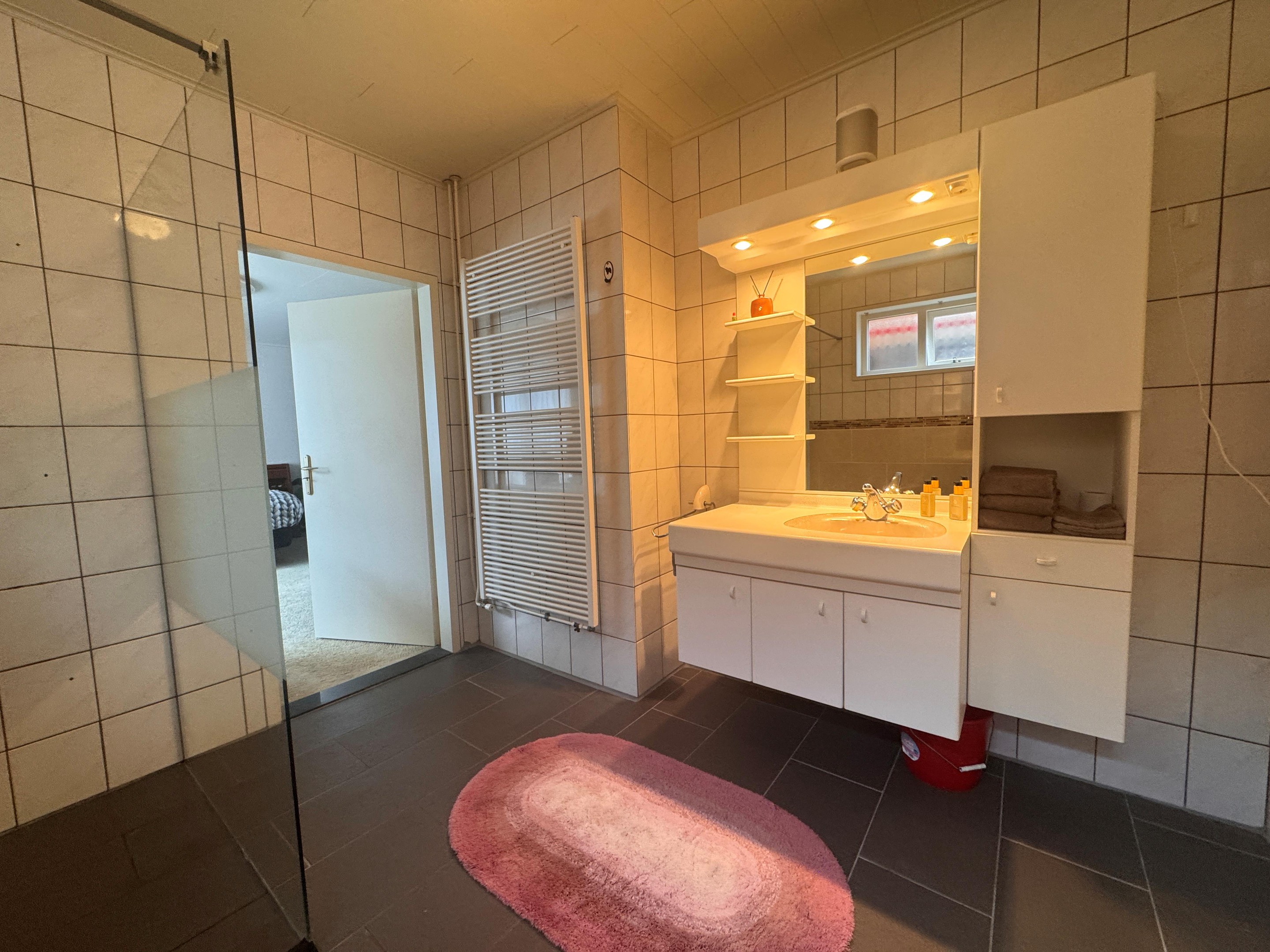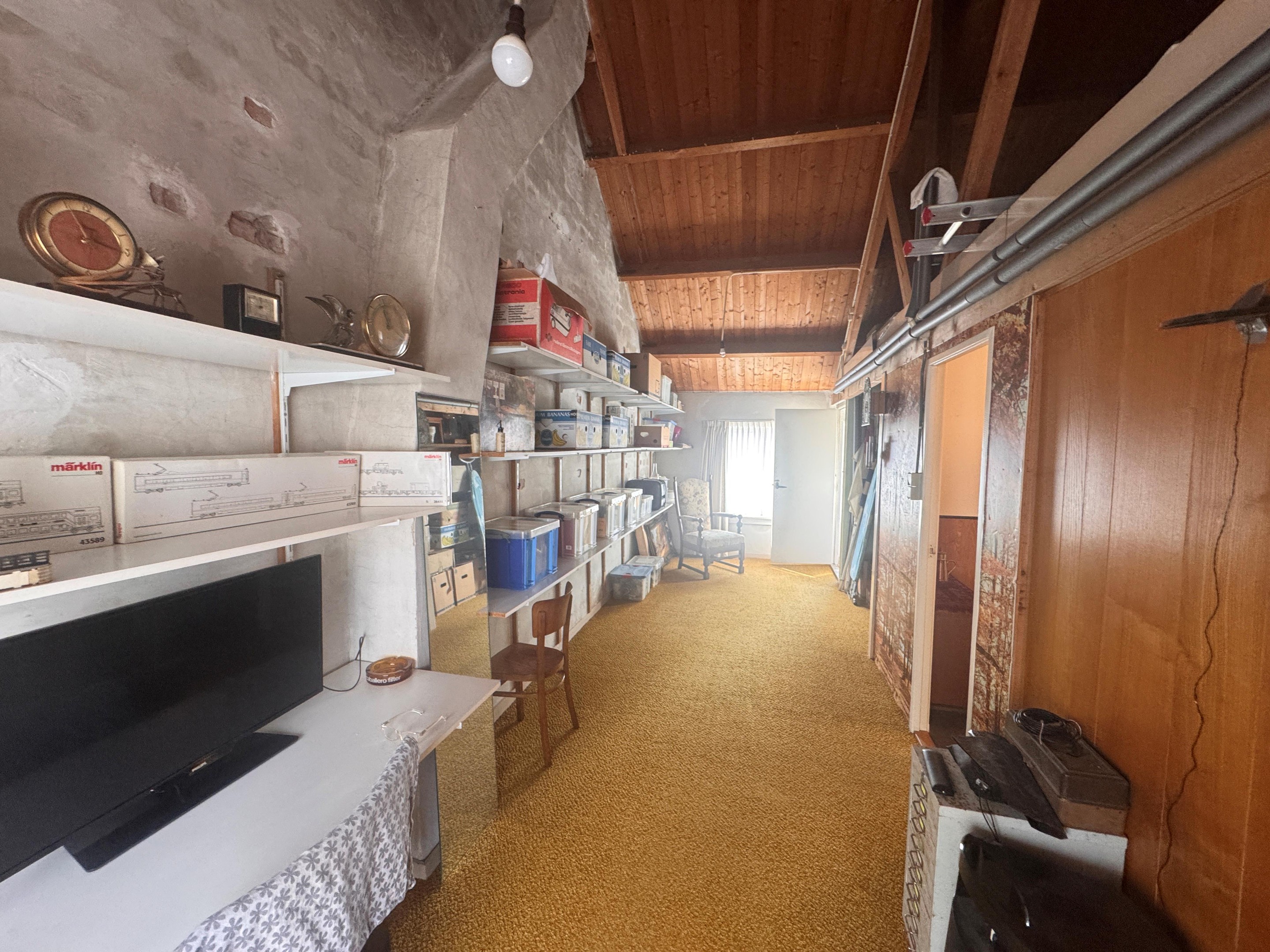 Boven vind je twee ruime slaapkamers, een kleinere kamer en een imposante magazijnruimte die doorloopt tot onder de nok — ideaal als hobbyruimte, thuiswerkplek of extra opbergruimte. Via een ladder bereik je de vliering. Er is ook een aparte douche aanwezig op de verdieping.