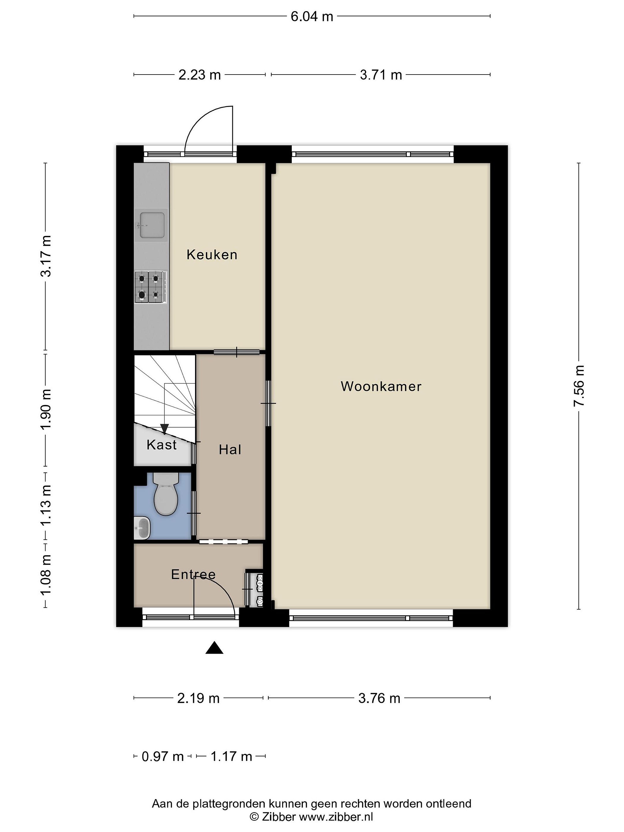 Begane grond Entree, hal met toilet, ruime trapkast, trapopgang naar de eerste verdieping en toegang tot de lichte woonkamer. Dichte keuken met nette keukeninrichting.