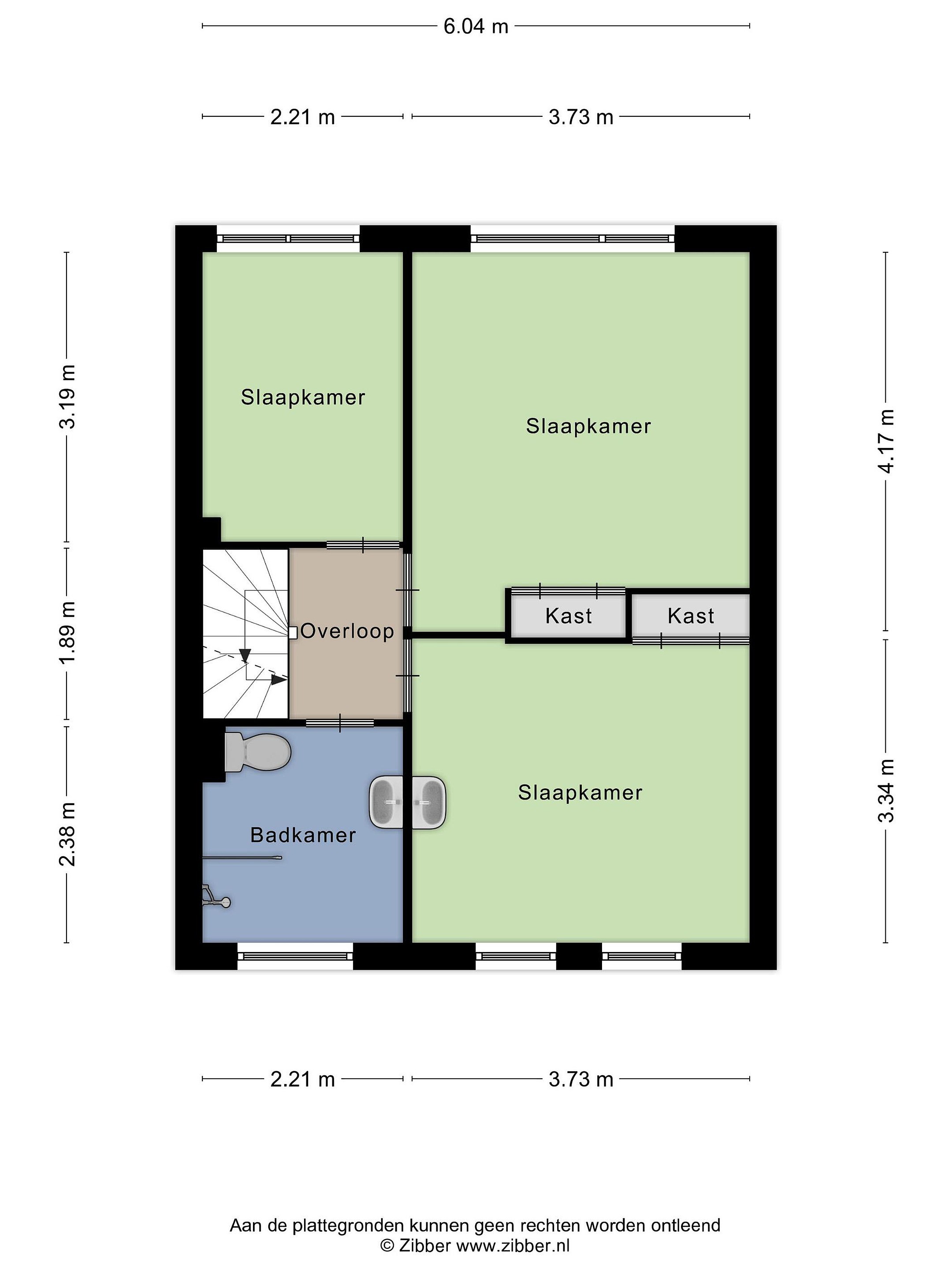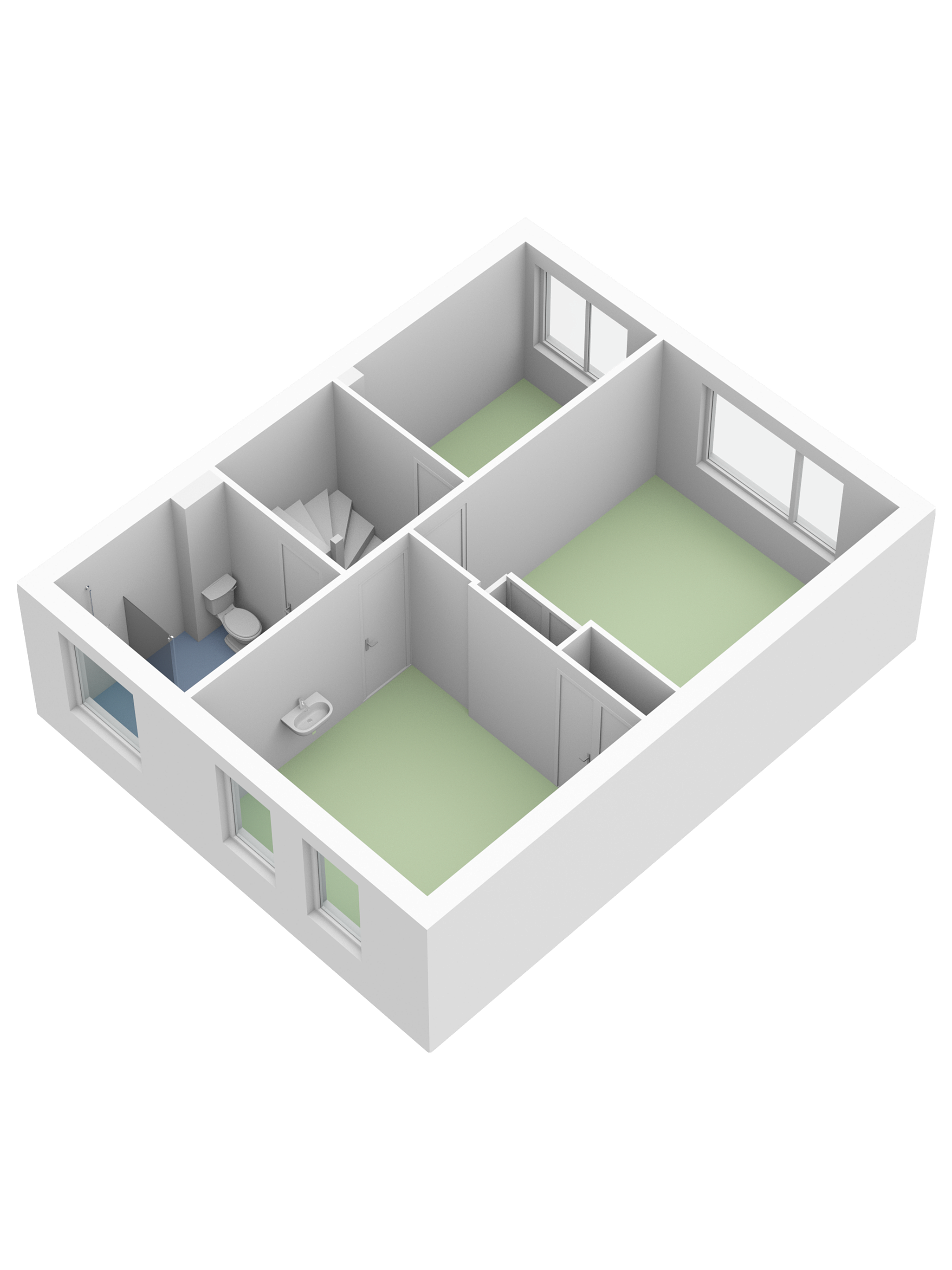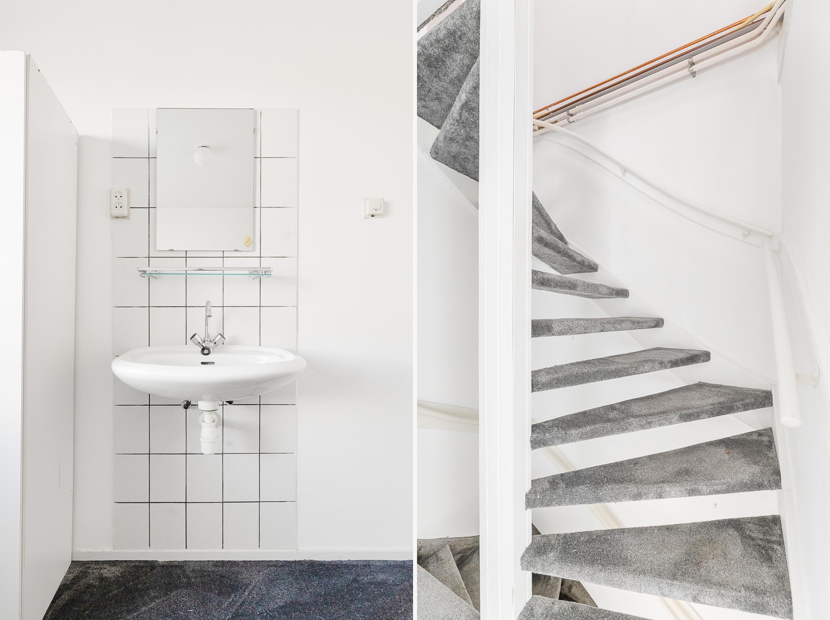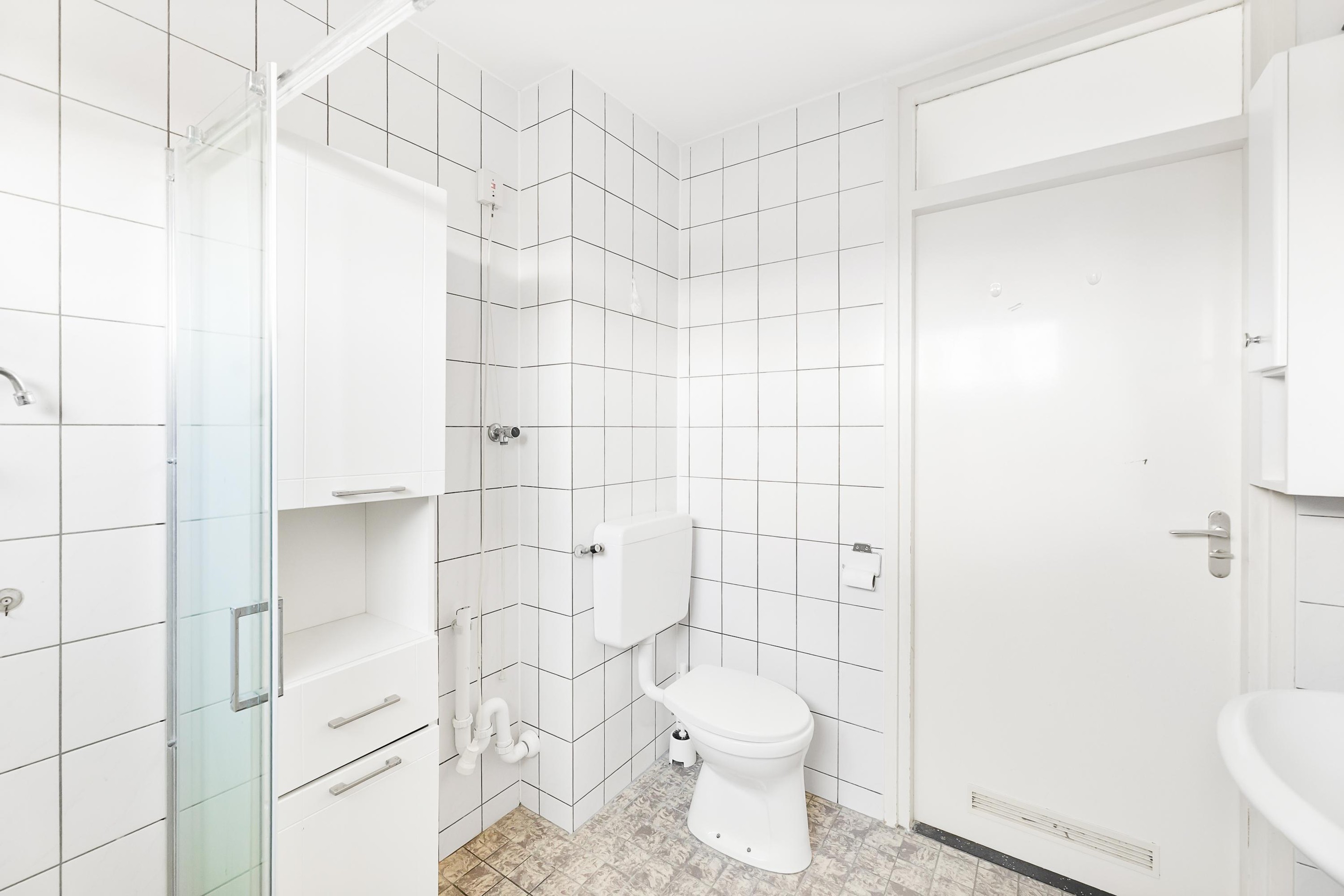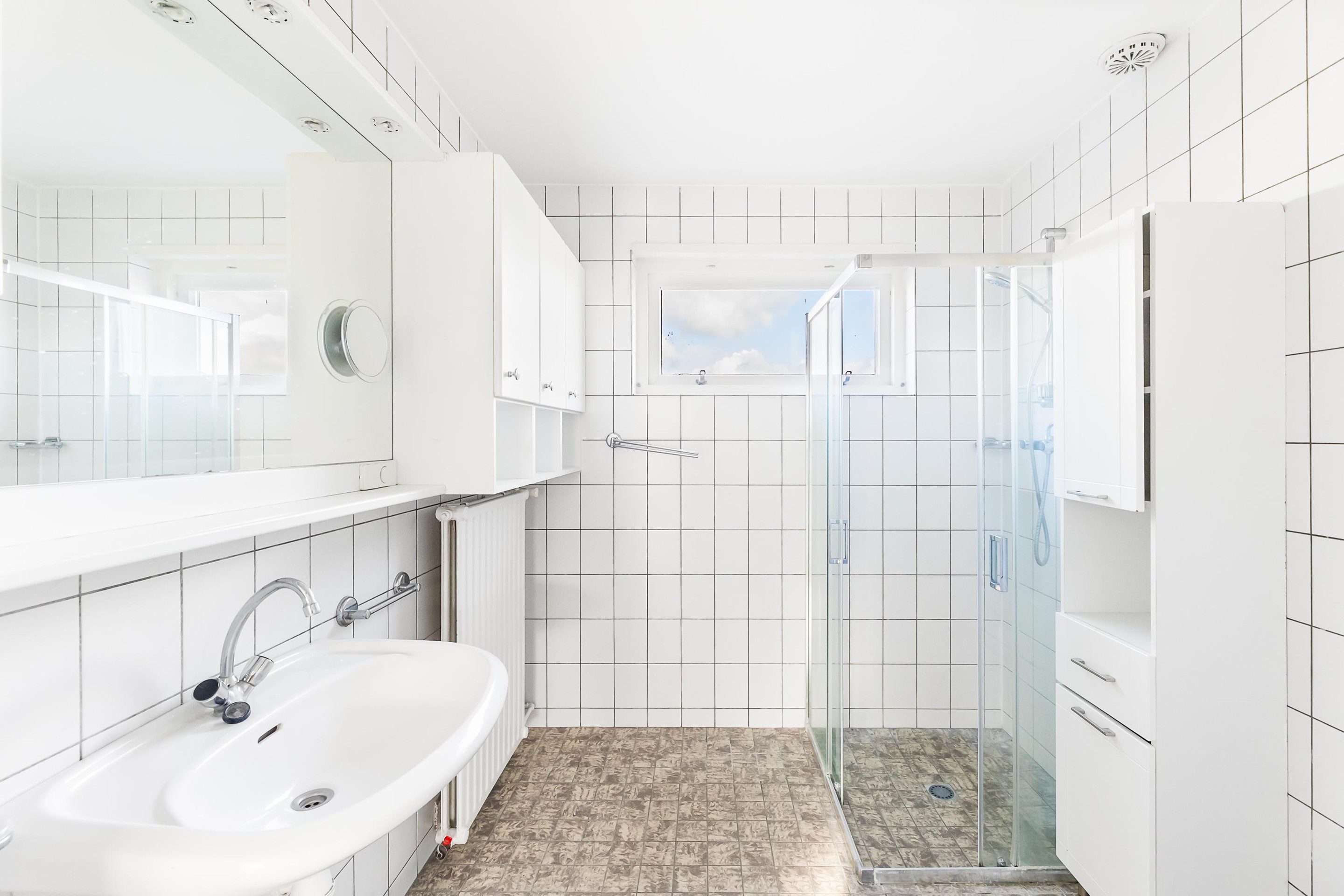 Eerste verdieping Overloop met toegang tot de badkamer en drie slaapkamers. Twee slaapkamers zijn voorzien van vaste kasten. De badkamer is afgewerkt met een douche, toilet, wastafel en aansluiting voor de wasmachine.