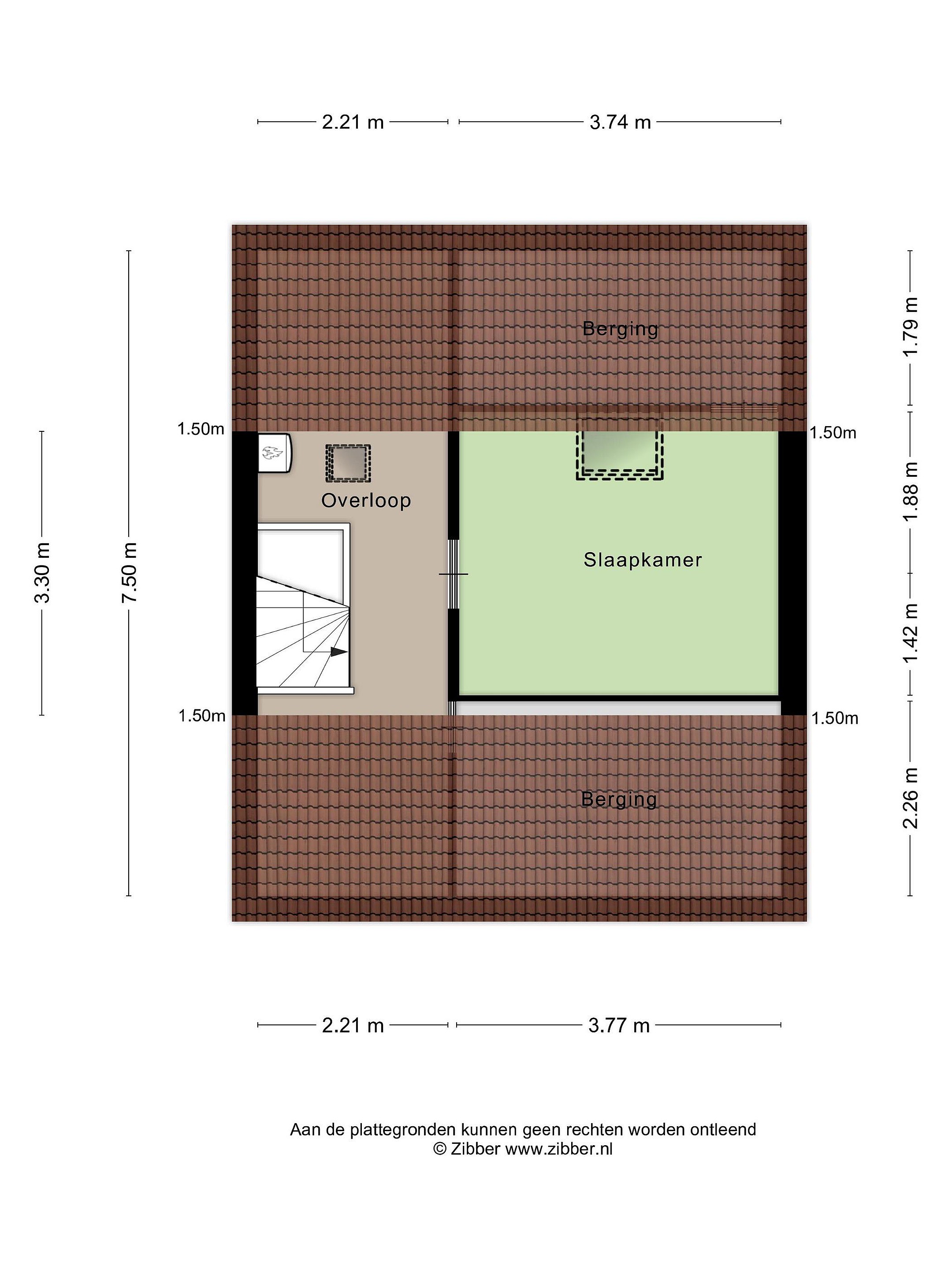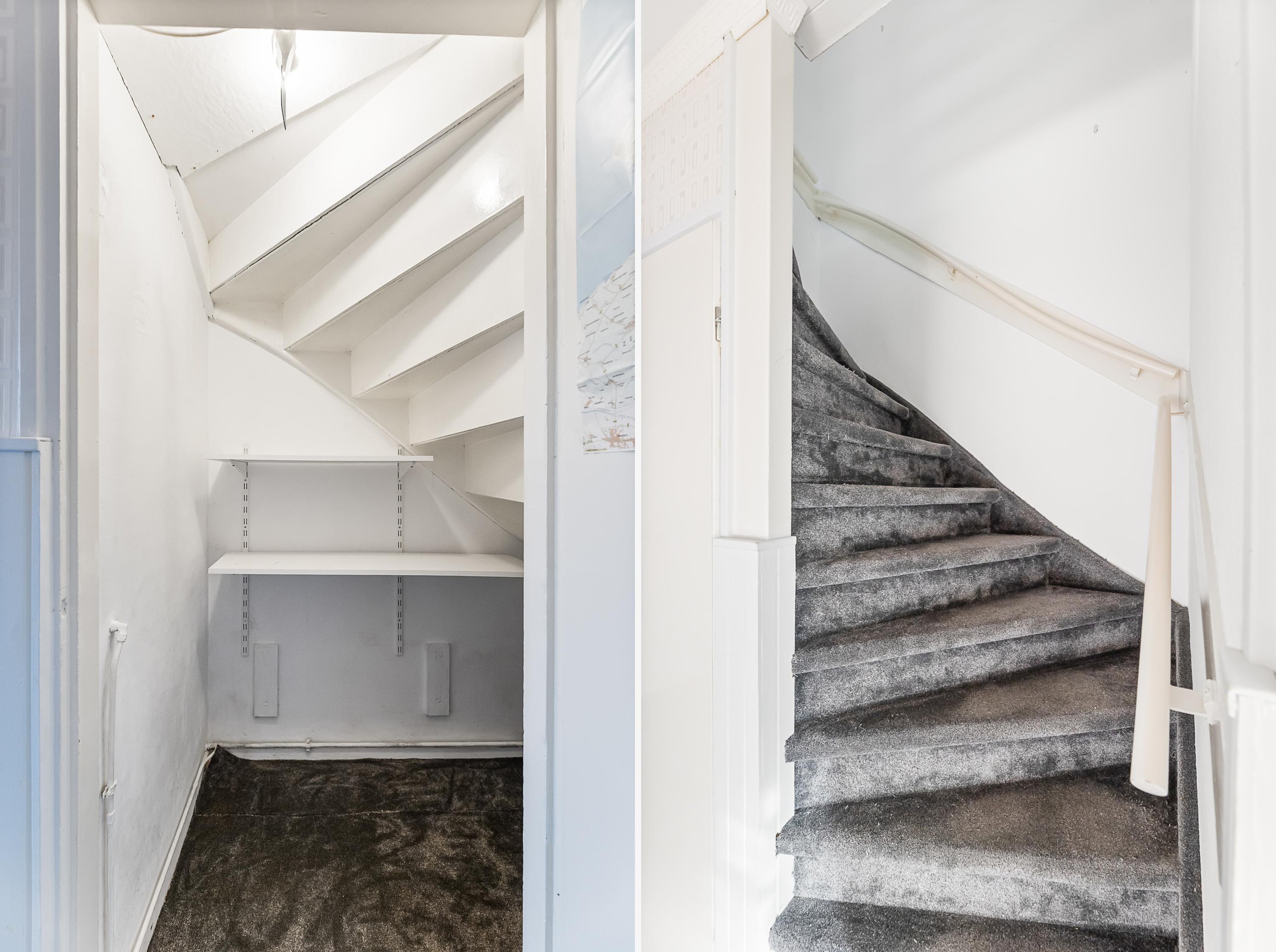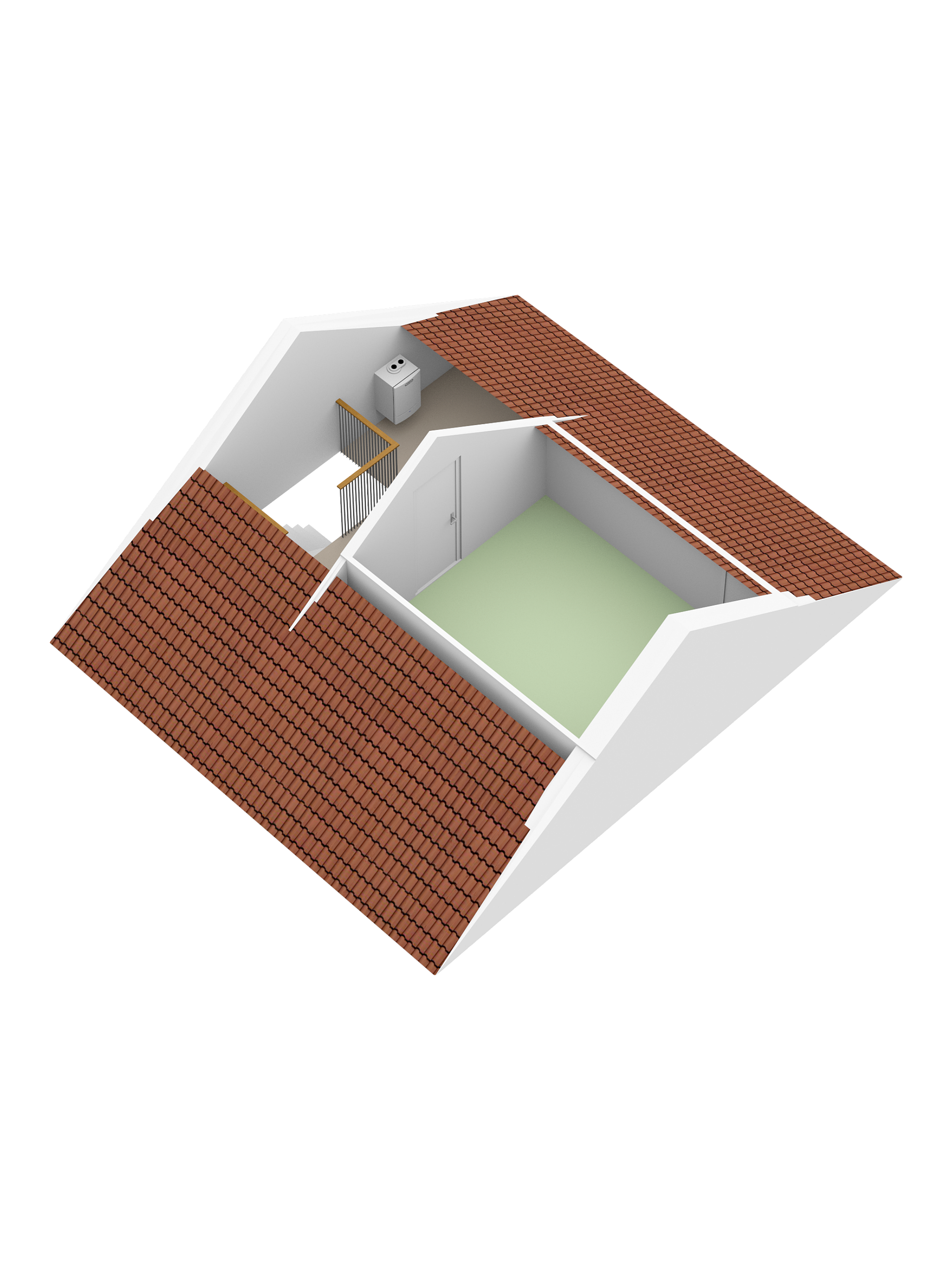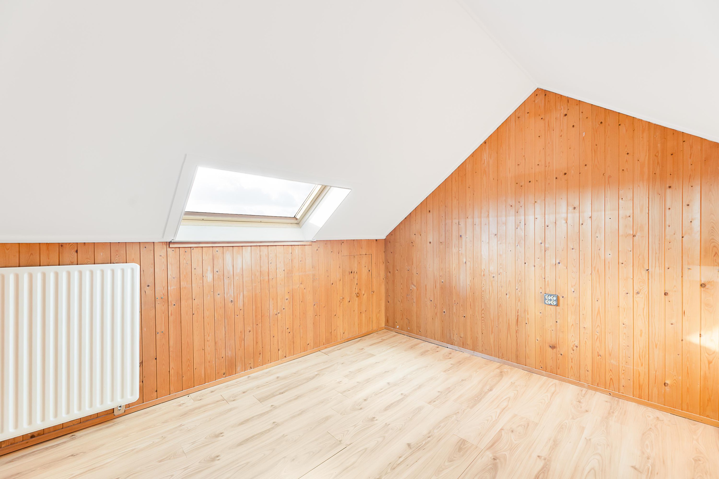 Tweede verdieping Deze verdieping, bereikbaar door middel van een vaste trap, heeft een fijne, vierde slaapkamer met Velux dakraam en bergruimtes achter de knieschotten. De c.v.-combiketel hangt op de overloop.