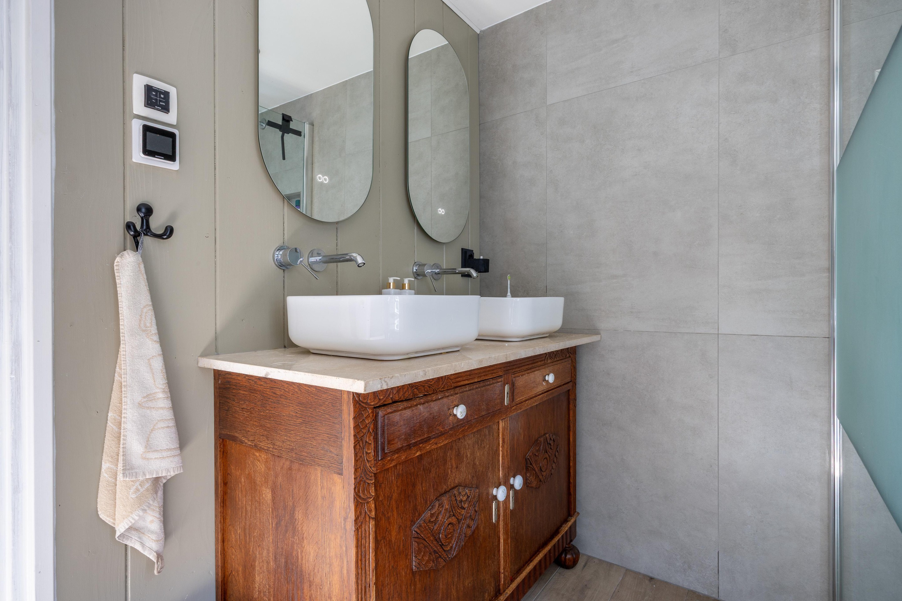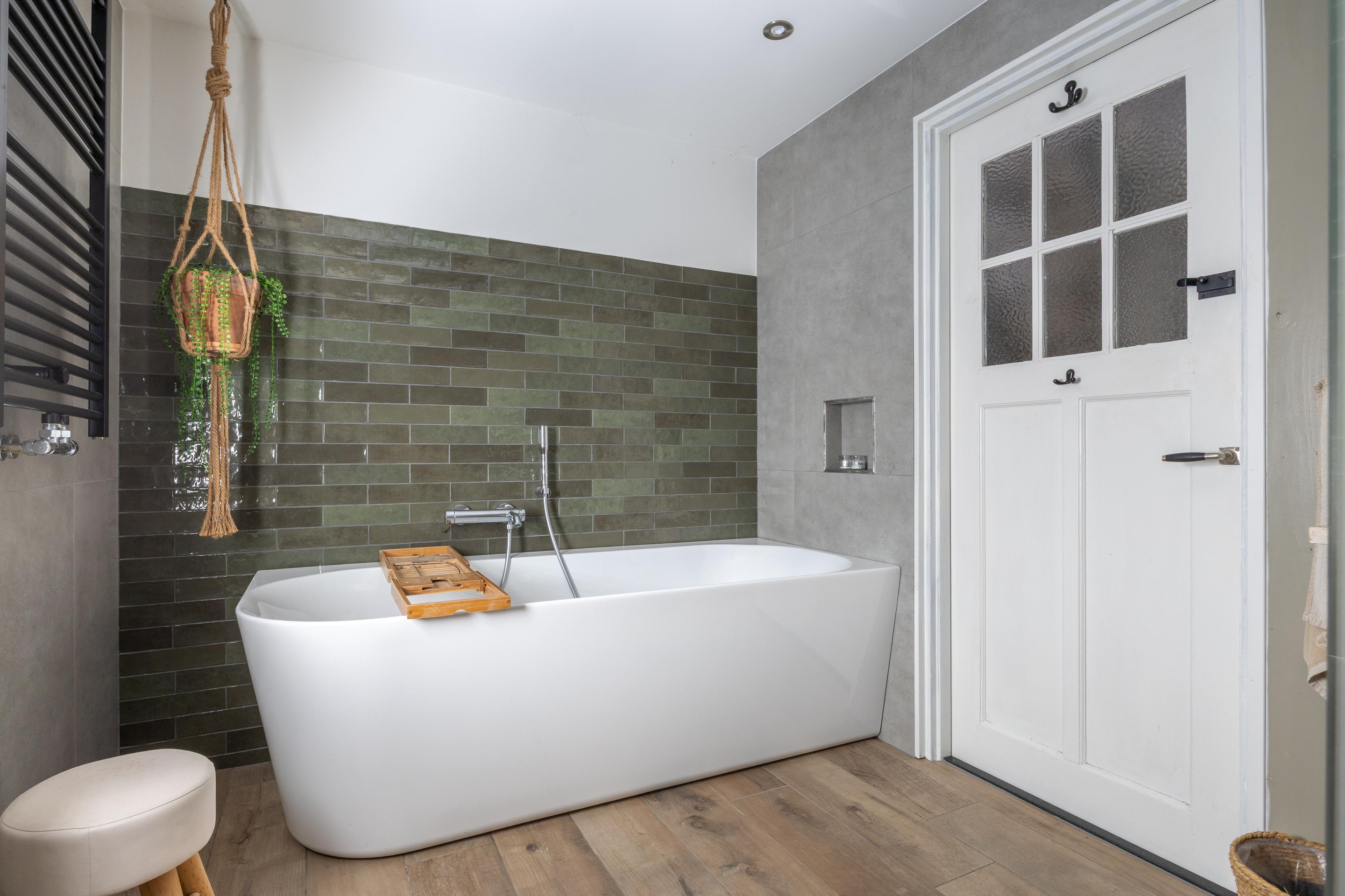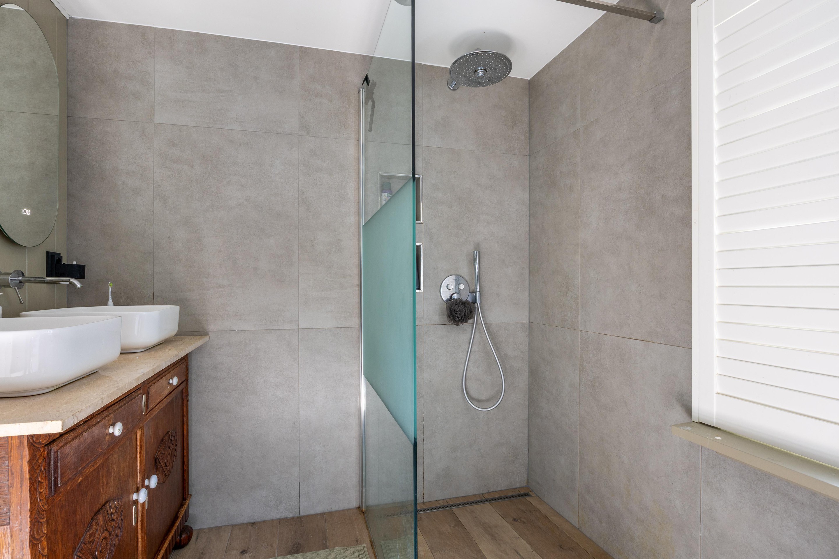Verder vind je op de begane grond een toilet met hangcloset en fonteintje, een luxe badkamer met ruime inloopdouche, ligbad, dubbele wastafel met verwarmde spiegels en een designradiator, én een slaapkamer met uitzicht op de tuin.