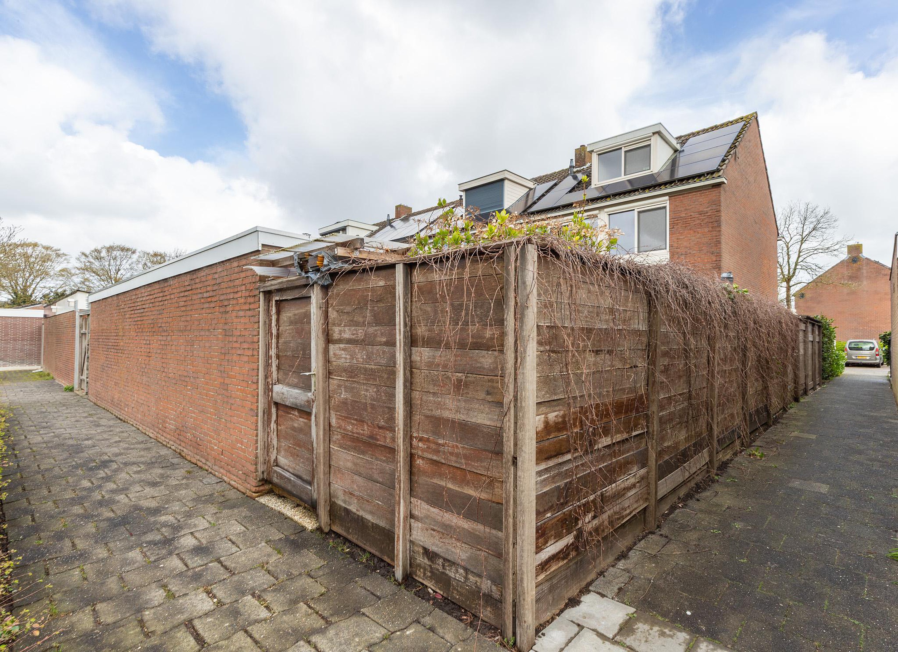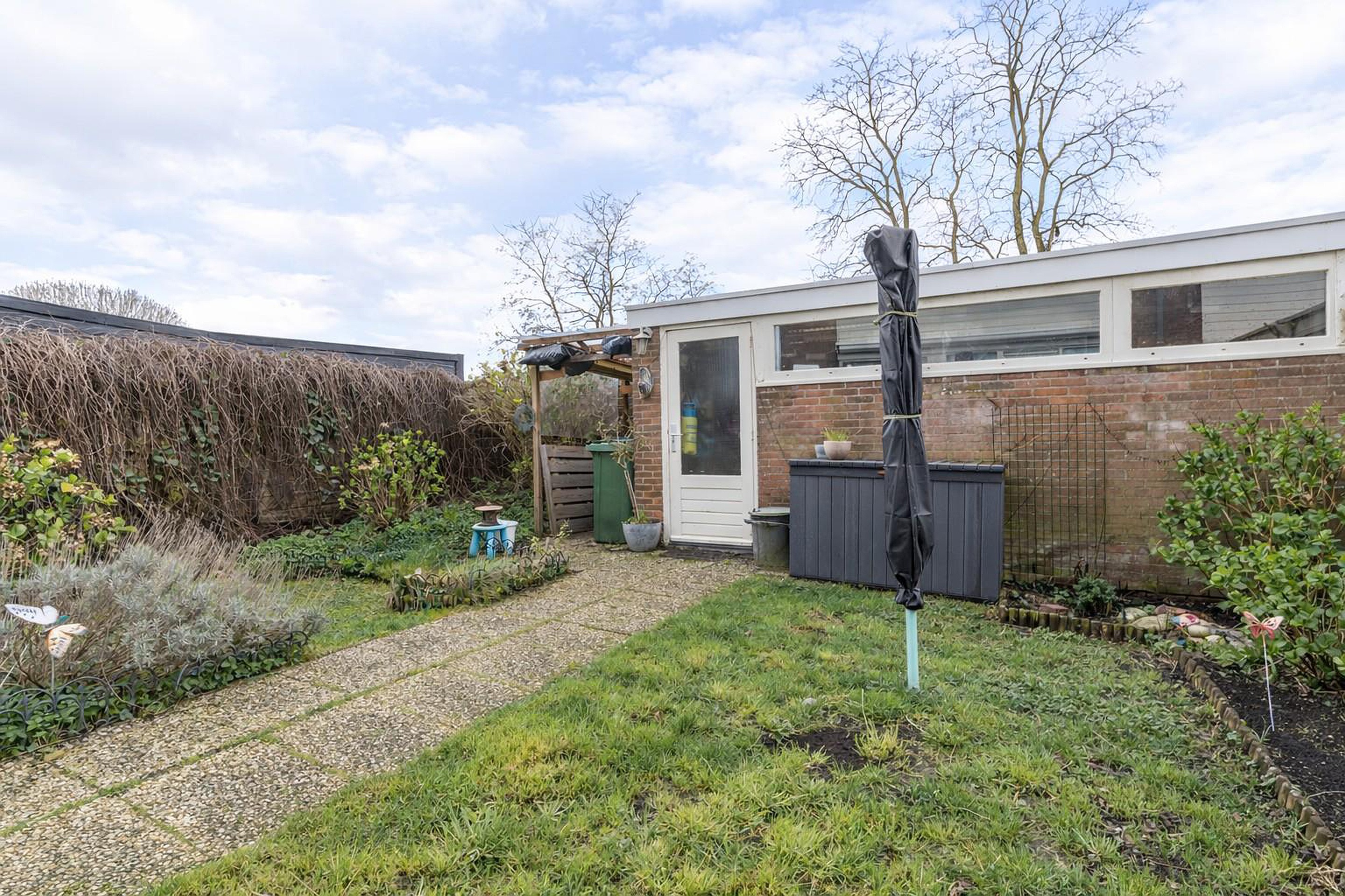 Begane grond Via de entree komt u in de hal met garderobe, meterkast (7 groepen), toiletruimte met staand toilet en fonteintje en een praktische trapkast. Vanuit de hal bereikt u de woonkamer met open keuken aan de achterzijde. De woonkamer is ruim en licht en voorzien van een tegelvloer en kunststof kozijnen (2018). De keuken is compleet uitgerust met een koel-/vriescombinatie, vaatwasser, 6-pits gaskookplaat, oven, afzuigkap en een Daalderop boiler. Vanuit de keuken heeft u direct toegang tot de zonnige achtertuin op het zuidwesten. In de tuin bevindt zich een stenen berging en via de zijgevel is er een overkapping, geschikt voor bijvoorbeeld het stallen van een motorfiets. Ook is er een gedeeld achterpad aanwezig.