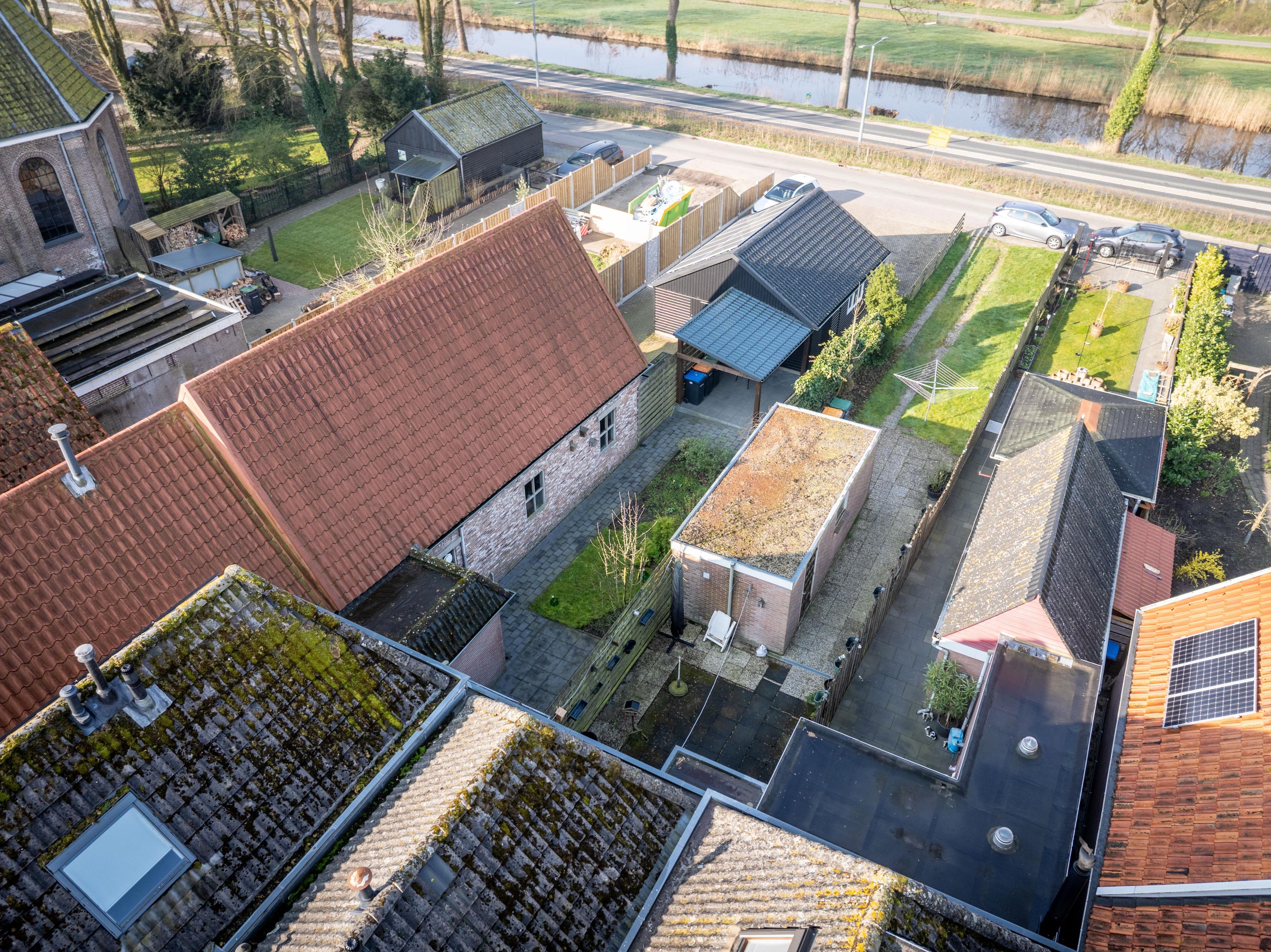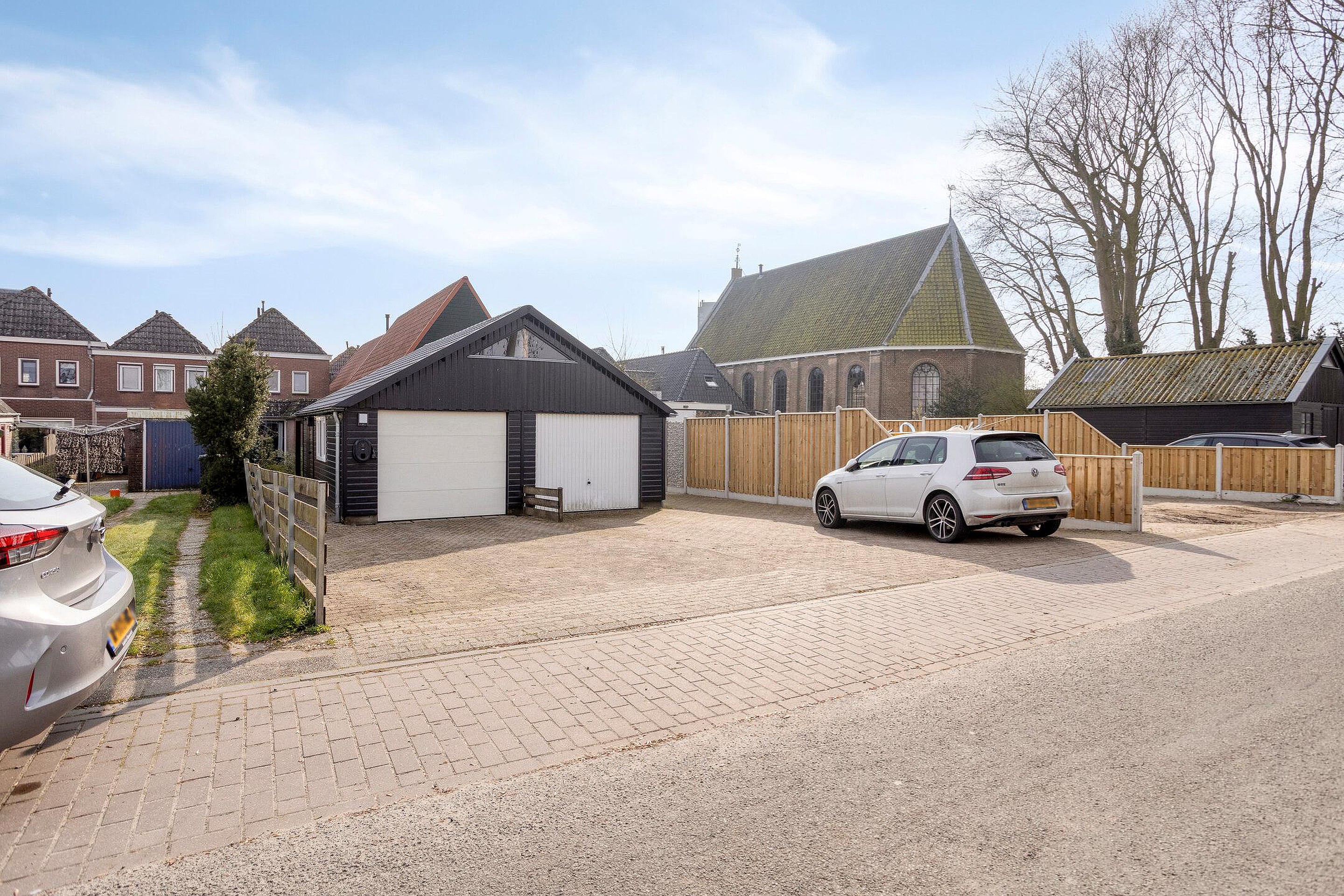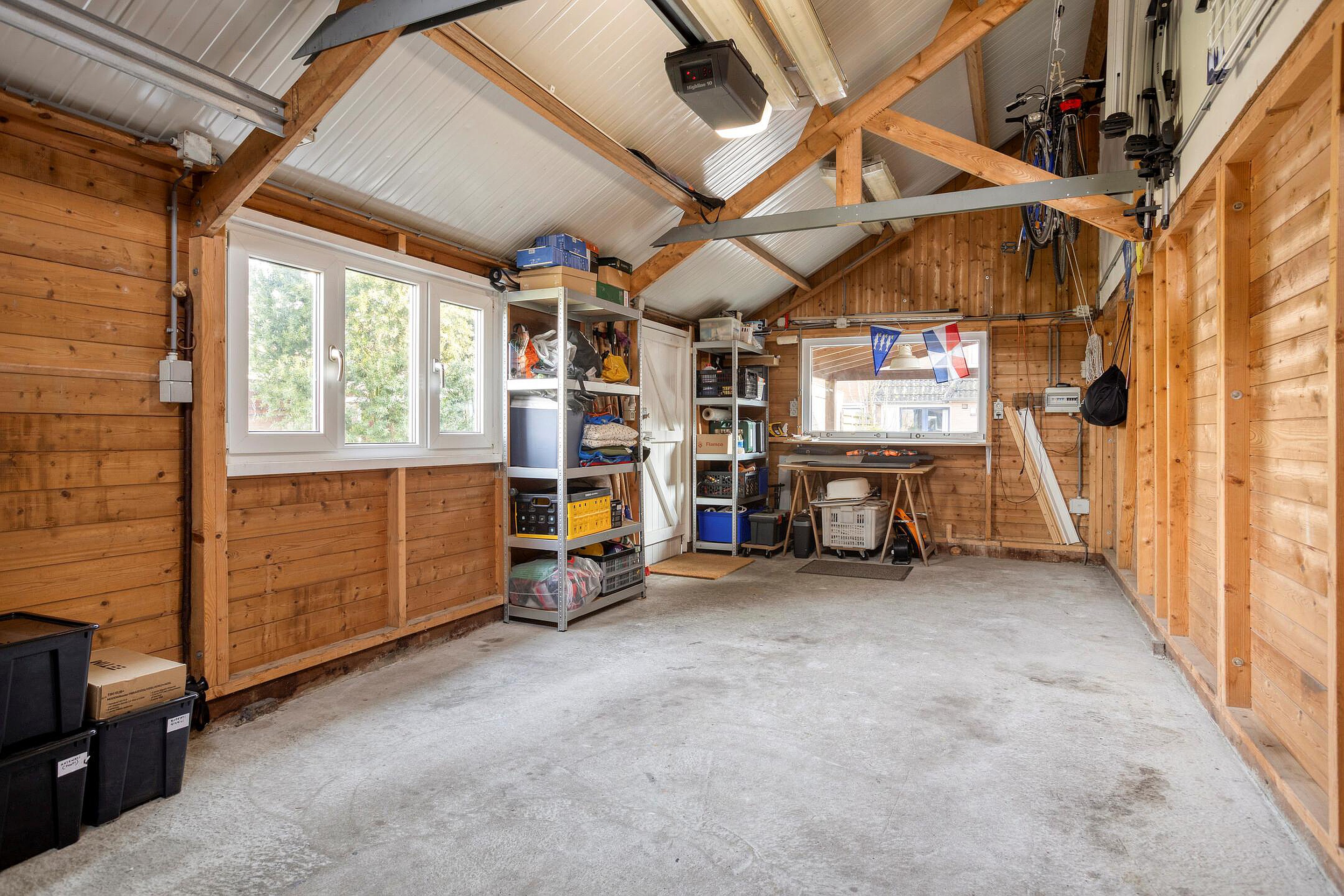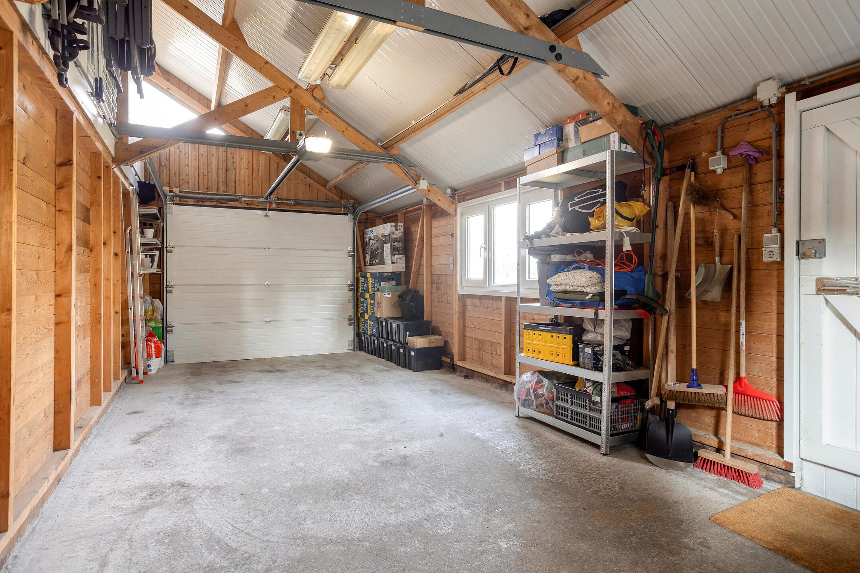 - De woning is voorzien van een achtertuin met o.a. diverse terrassen, een achterom en een garage.