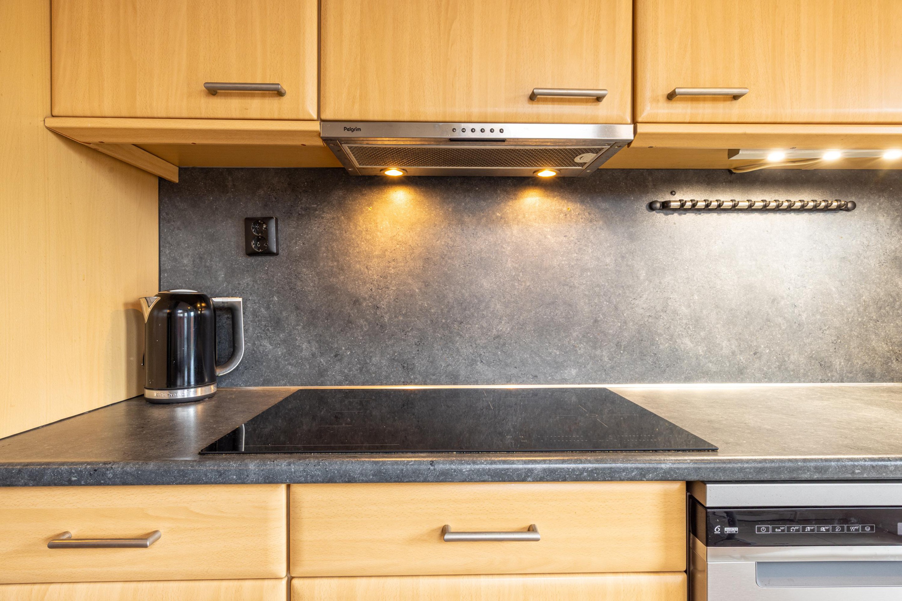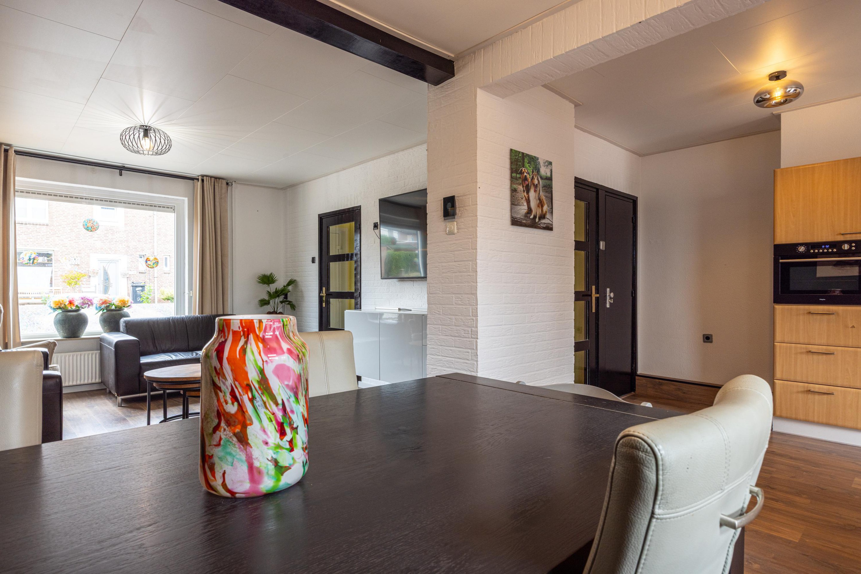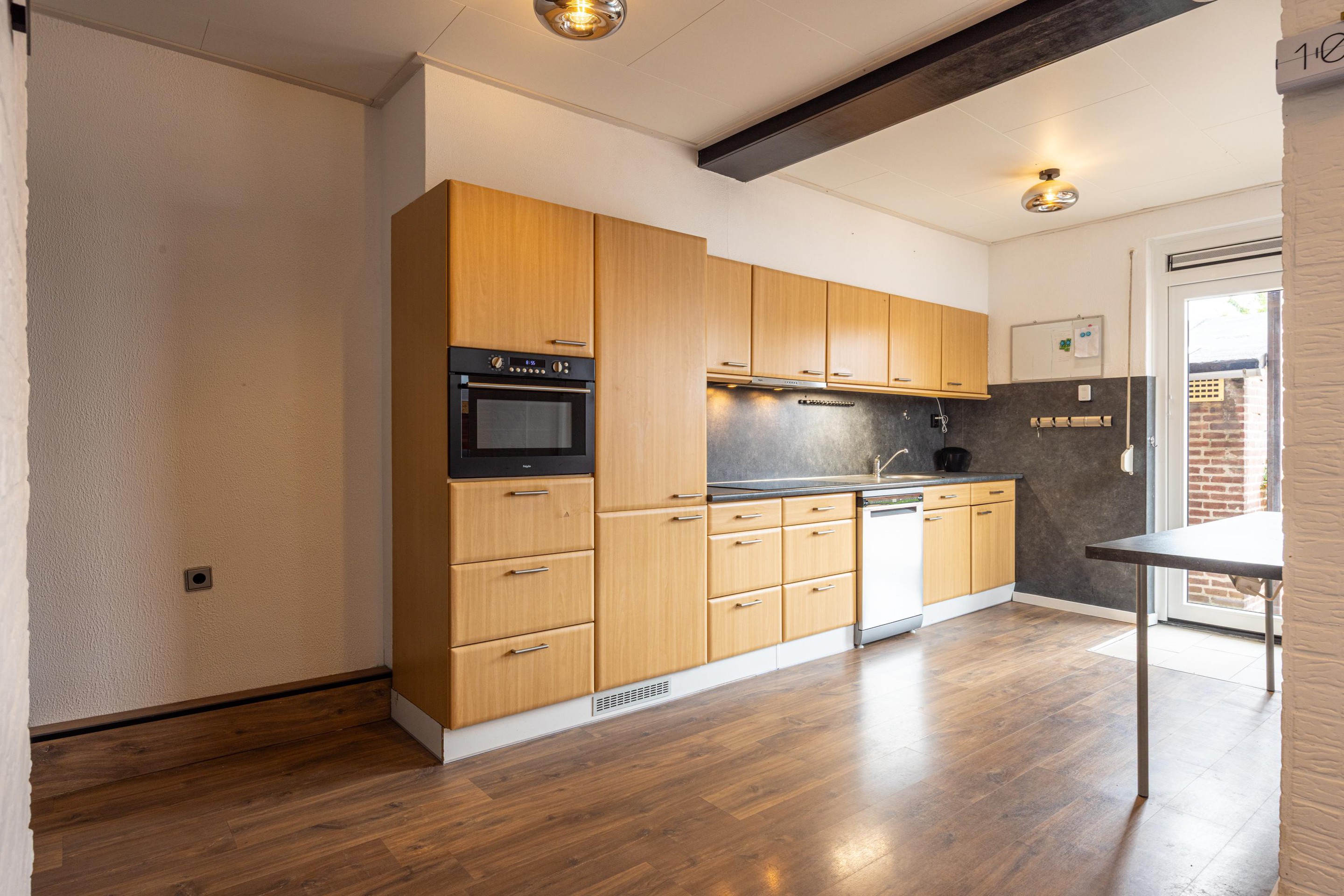 Begane grond De voortuin is netjes en onderhoudsvriendelijk aangelegd. Via de entree met tegelvloer kom je in de ontvangsthal met garderobe, meterkast (vernieuwd in 2016) en toegang tot de provisiekelder. In deze kelder bevinden zich tevens de witgoedaansluitingen. Daarnaast is er op de begane grond een separaat toilet aanwezig, uitgerust met staand closet en fonteintje. De woonkamer is een fijne doorzonkamer met veel daglicht en een laminaatvloer. Dankzij de rolluiken is er eenvoudig een gezellige sfeer en privacy te creëren. De woonkamer loopt door in een uitbouw, waar de open keuken is gesitueerd. De keuken is eveneens voorzien van laminaatvloer en is zowel via de woonkamer als via de hal bereikbaar. Hier vind je volop kastruimte en inbouwapparatuur: keramische kookplaat, afzuiging, heteluchtoven, koelkast, vriezer en een vaatwasser (nieuw in 2025). Een muurkast biedt plaats aan de cv-installatie. Vanuit de keuken is er toegang tot de achtertuin.