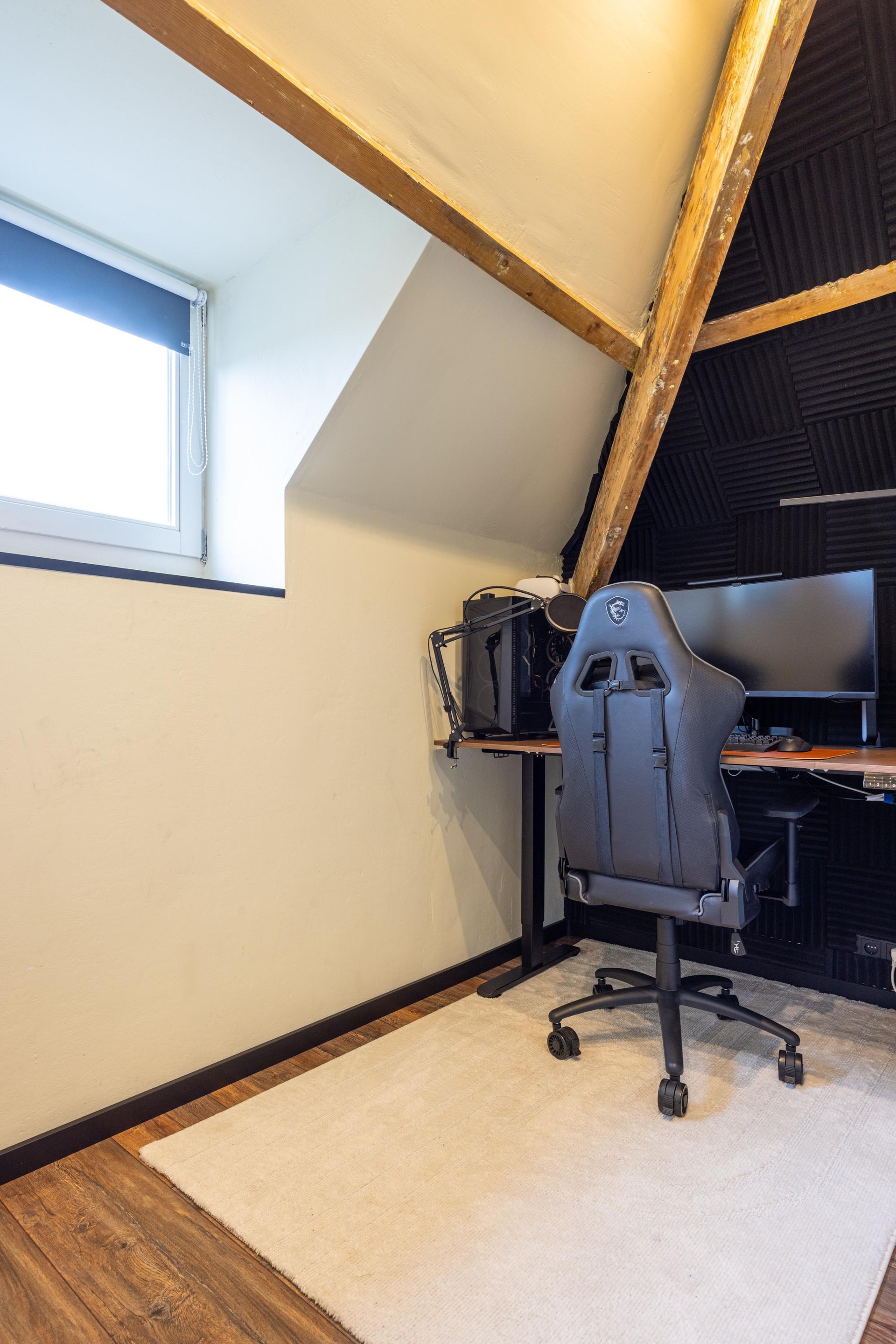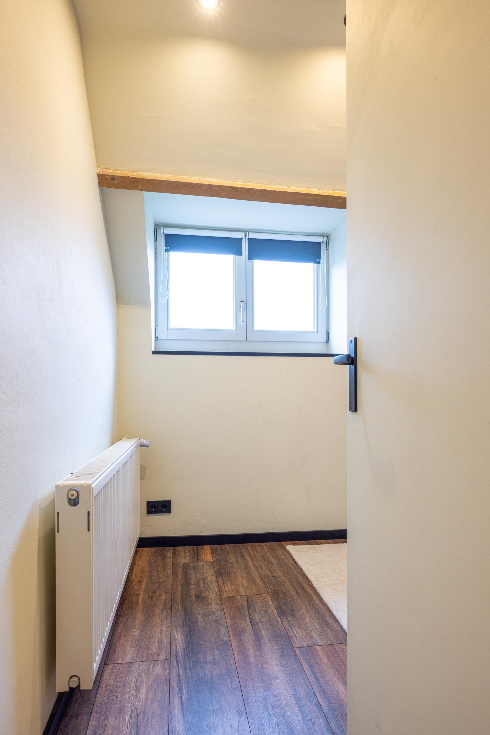 De badkamer sluit hier naadloos op aan en is keurig afgewerkt met HR++ glas en een eveneens in 2023 vernieuwde dakkapel. Verder is de ruimte uitgerust met vloerverwarming, een inloopdouche, een fraai badkamermeubel met wasbak en spiegel en een toilet. Alles oogt verzorgd en praktisch ingedeeld, waardoor de verdieping een prettige indruk maakt.