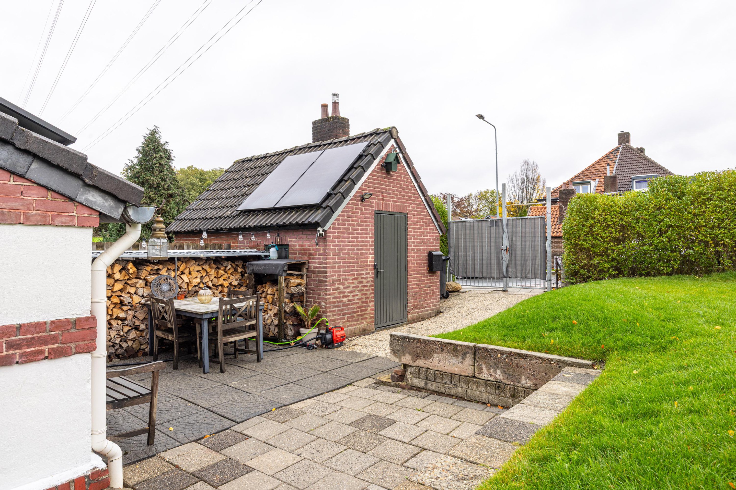 Ook buiten is het prettig wonen. De verzorgde voortuin geeft het huis een nette aanblik, terwijl de achtertuin een fijne plek biedt om te ontspannen. Er is voldoende ruimte voor een tuinset of barbecue en dankzij de ligging geniet je hier volop van privacy. De aanwezigheid van een garage met vliering en een tuinhuis maakt het geheel extra compleet.