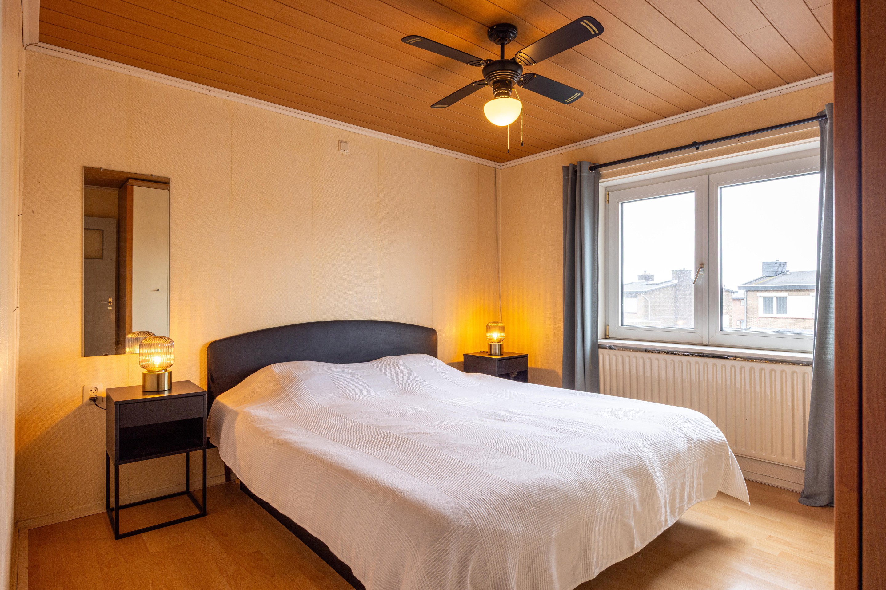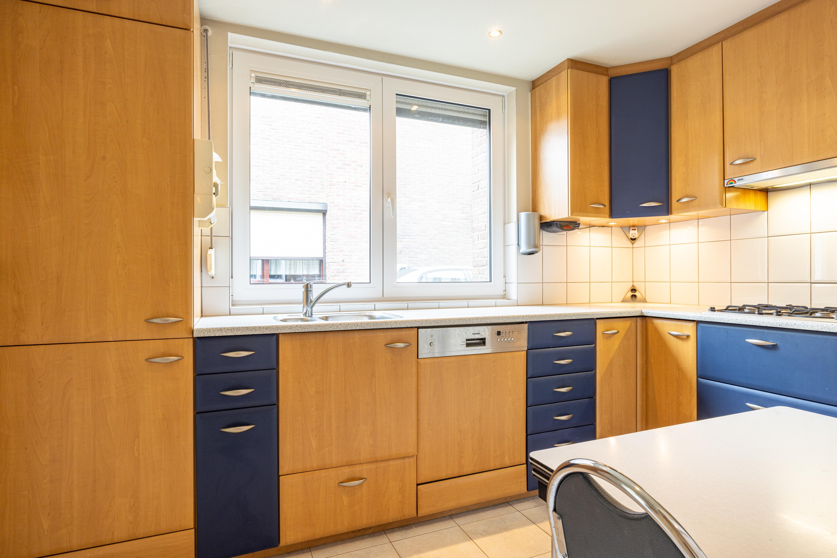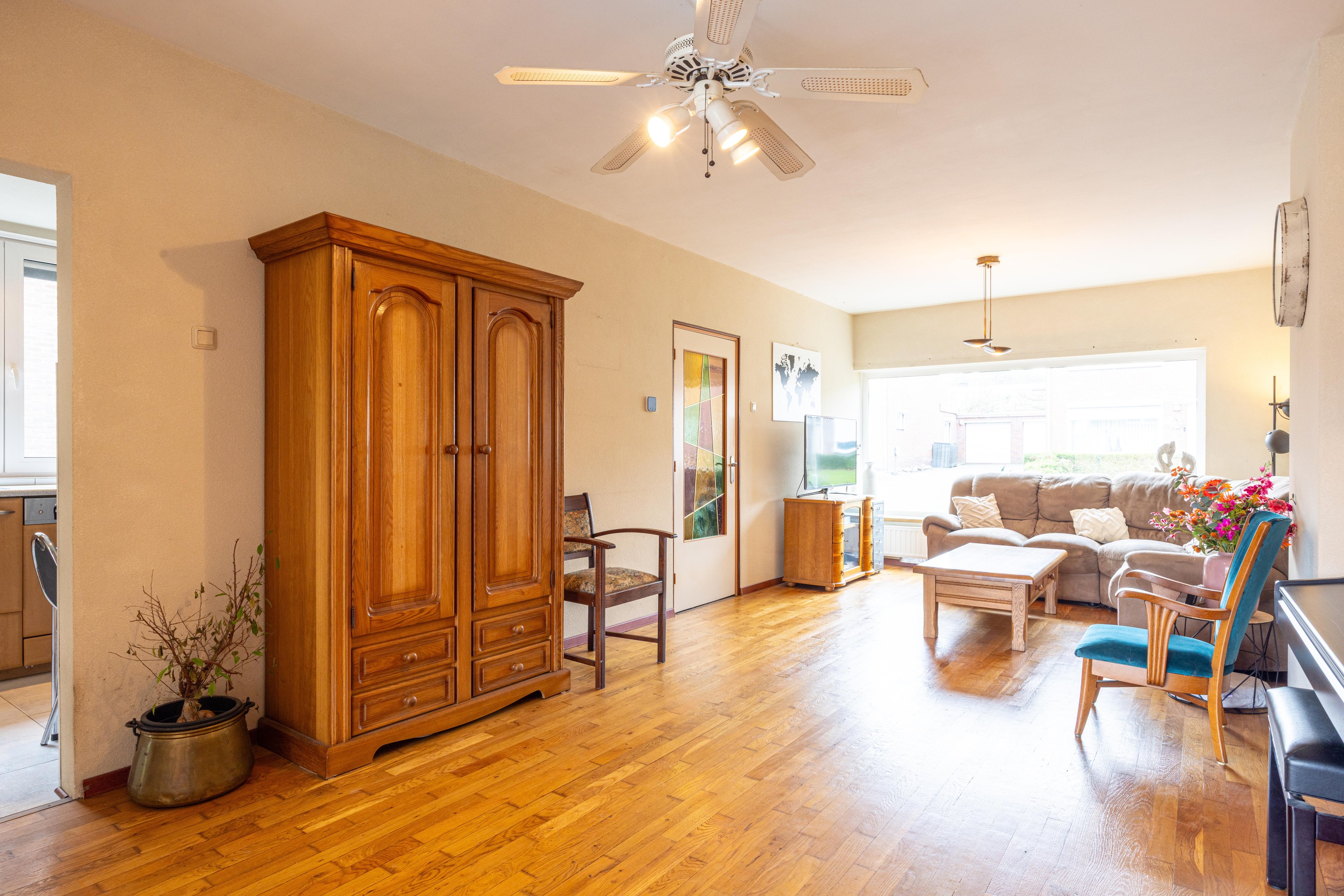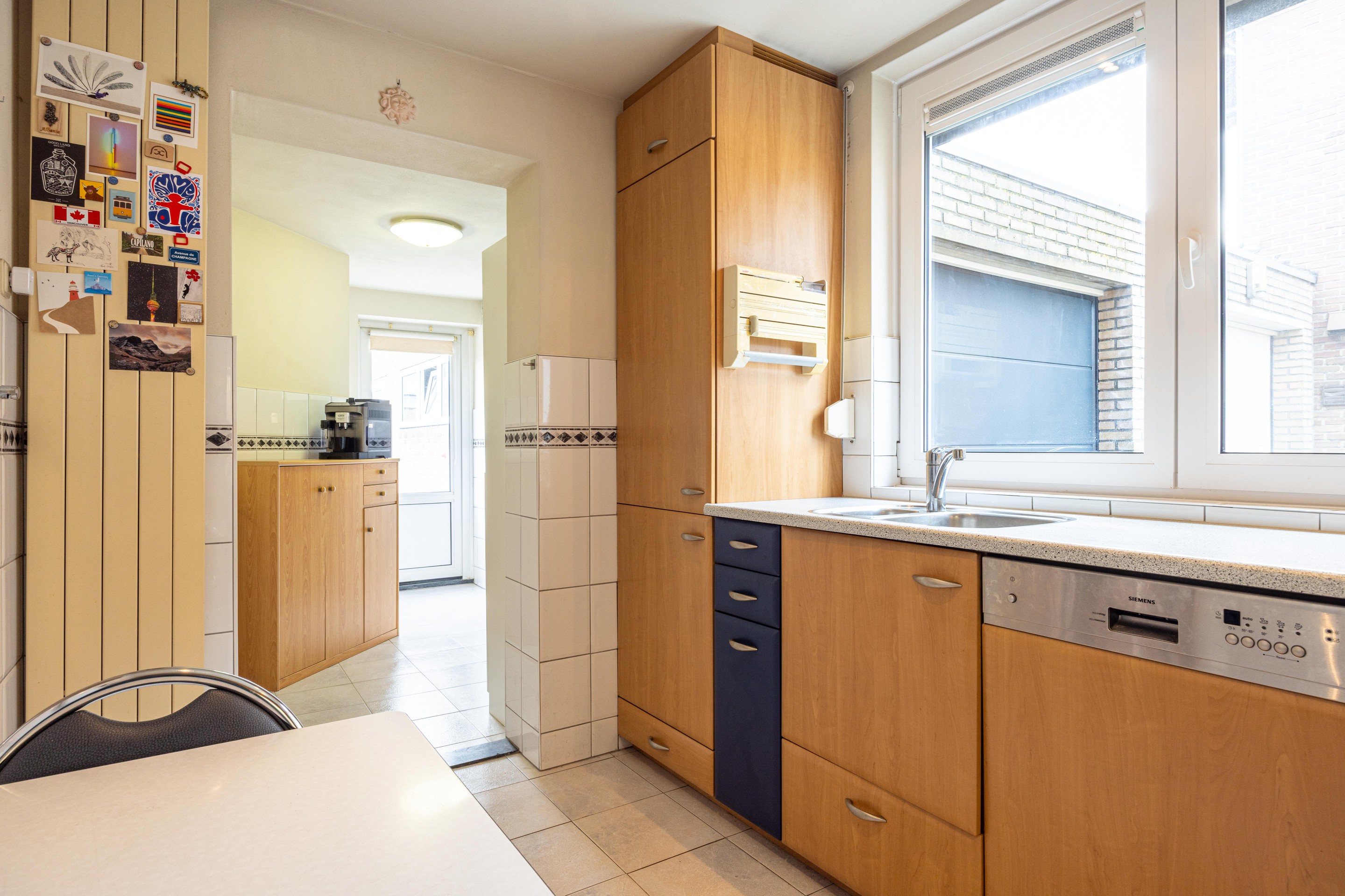 De woning beschikt over een lichte doorzonwoonkamer met parketvloer, een aparte eetkamer, een praktische gesloten keuken met inbouwapparatuur en aansluitend een bijkeuken die direct toegang geeft tot de garage. De garage is extra ruim, ideaal voor wie een hobbyruimte zoekt, graag sleutelt of gewoon veel bergruimte wil. Op de verdieping zijn drie slaapkamers, een moderne badkamer en een aparte wasruimte aanwezig. De overloop is voorzien van airconditioning, wat zorgt voor een prettig binnenklimaat.