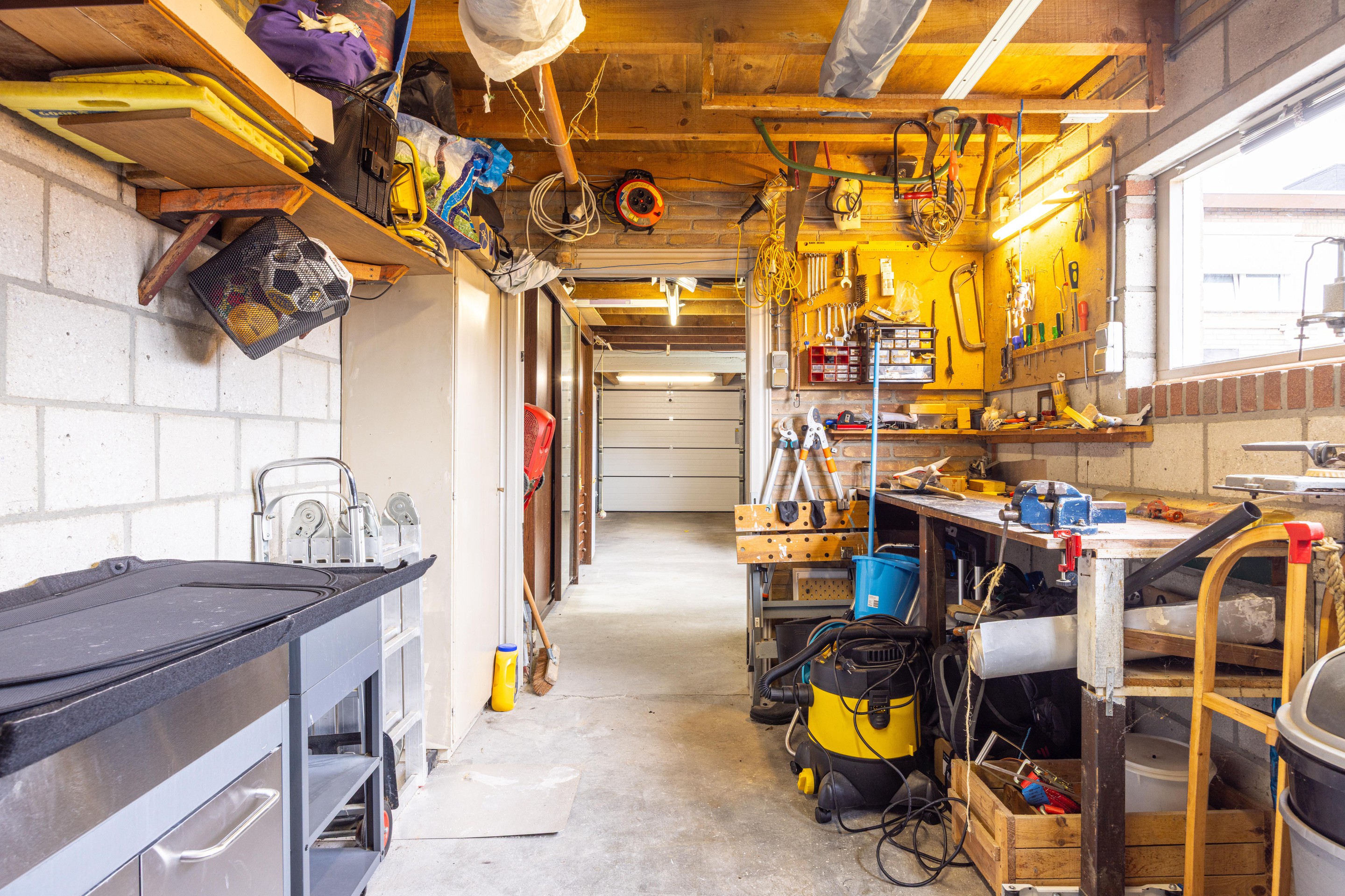 Via de bijkeuken is de inpandige garage bereikbaar, een groot pluspunt van deze woning. De garage is extra ruim, voorzien van een sectionaalpoort, water en elektriciteit. Er is plek voor een auto én voldoende ruimte om te klussen of spullen op te slaan.