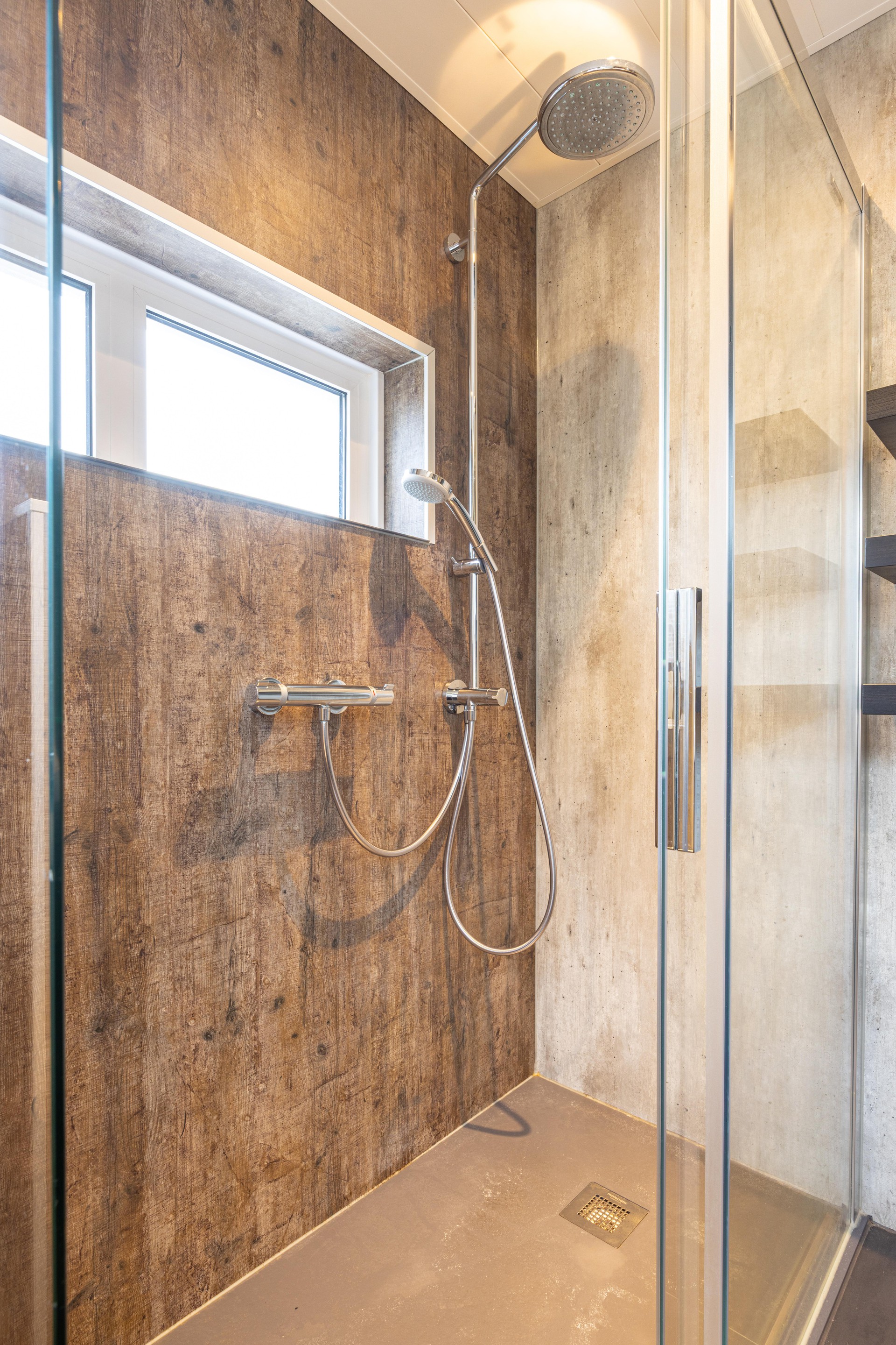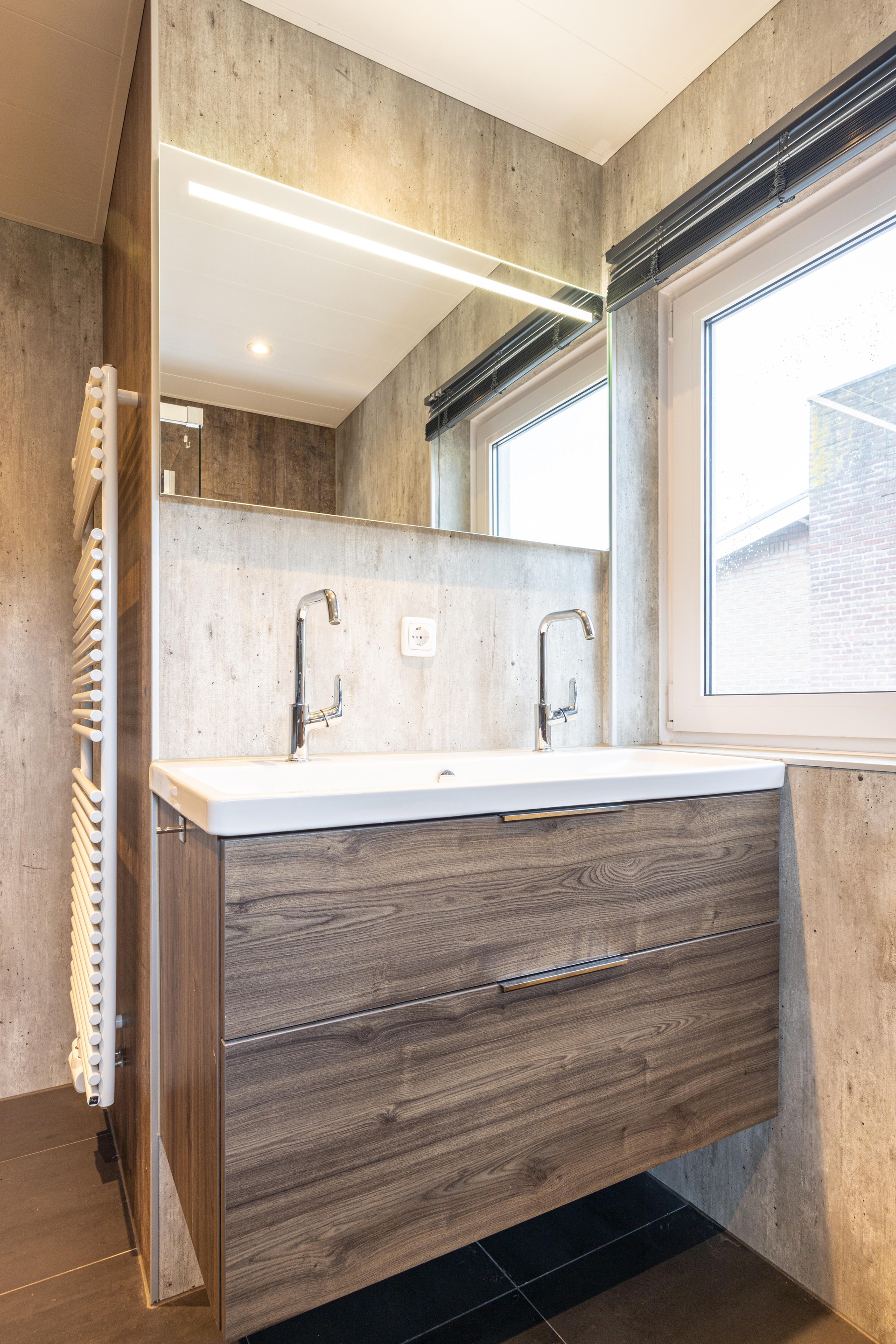 De badkamer is gerenoveerd in 2022 en is verrassend ruim en netjes afgewerkt. Er is een grote inloopdouche, een dubbele wastafel met spiegel, een zwevend toilet en een designradiator. Alles bij elkaar een fijne ruimte om de dag te beginnen of juist af te sluiten.