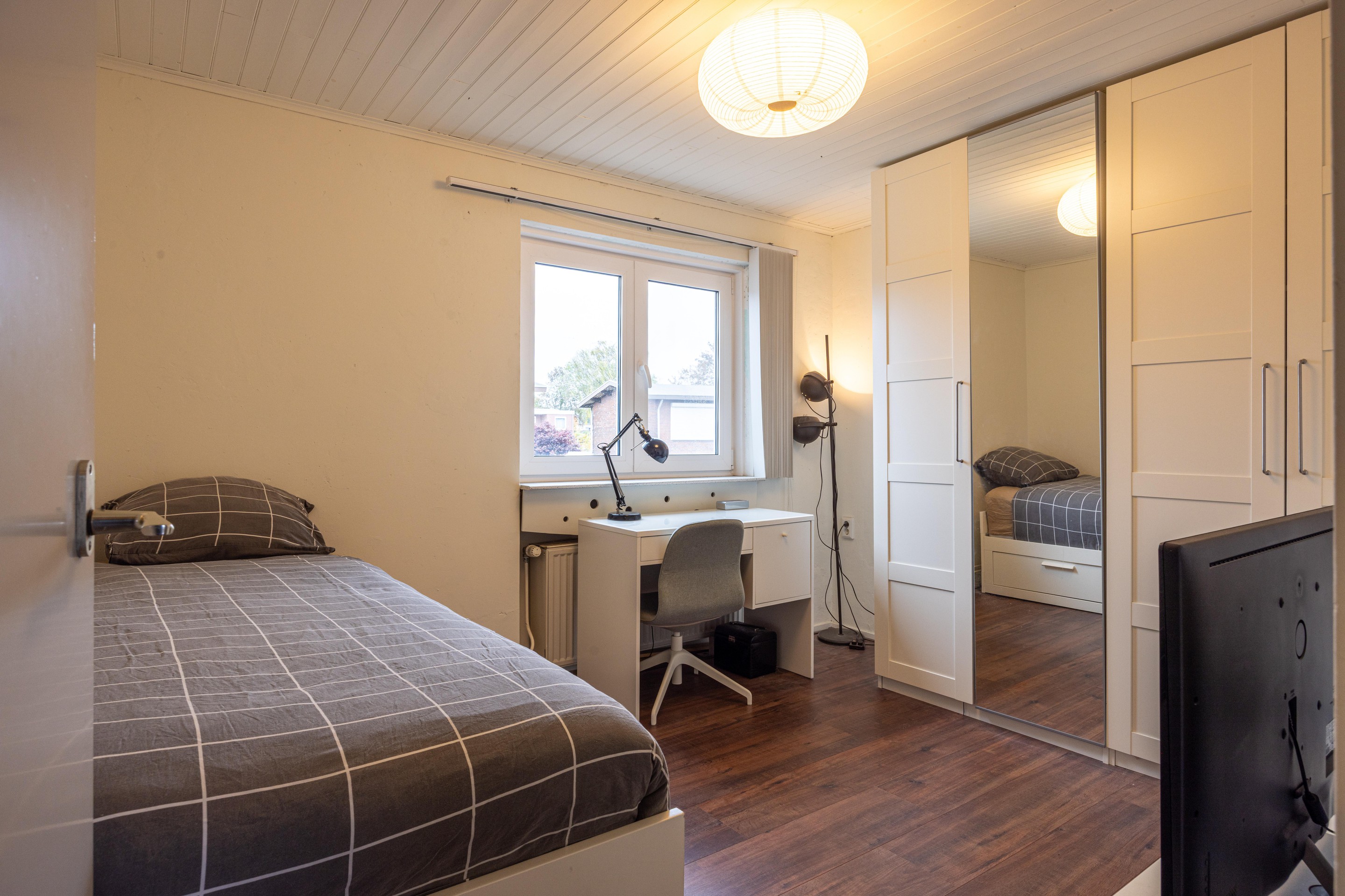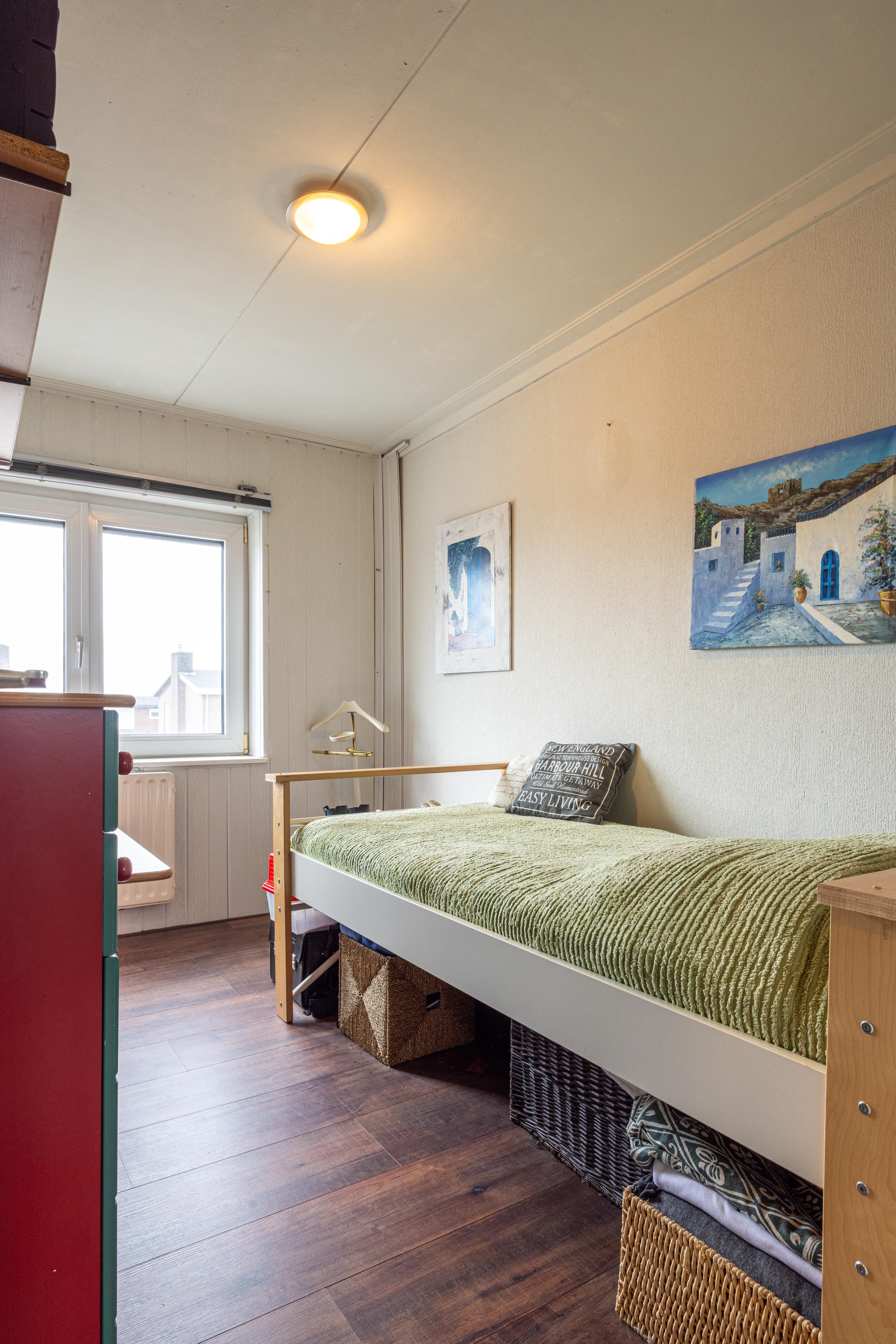 Eerste verdieping Op de overloop ligt een nette laminaatvloer en is er een airco aanwezig die zorgt voor een aangename temperatuur, ook op warme dagen. Vanuit hier heb je toegang tot drie slaapkamers en de badkamer. De slaapkamers hebben allemaal een laminaatvloer en veel daglicht. De kamers aan de achterzijde zijn voorzien van rolluiken, praktisch voor wie van een donkere, koele slaapkamer houdt.