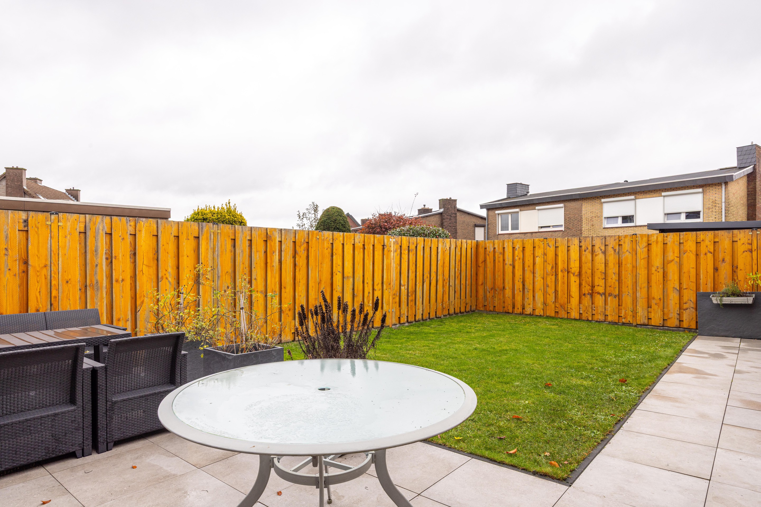 Verder naar achteren ligt een verzorgd stuk gazon dat zorgt voor een groene uitstraling en waar kinderen fijn kunnen spelen. De tuin is volledig omsloten met een nette erfafscheiding, wat zorgt voor veel privacy en een beschut gevoel. Dankzij de gunstige ligging kun je hier de hele dag door van de zon genieten.