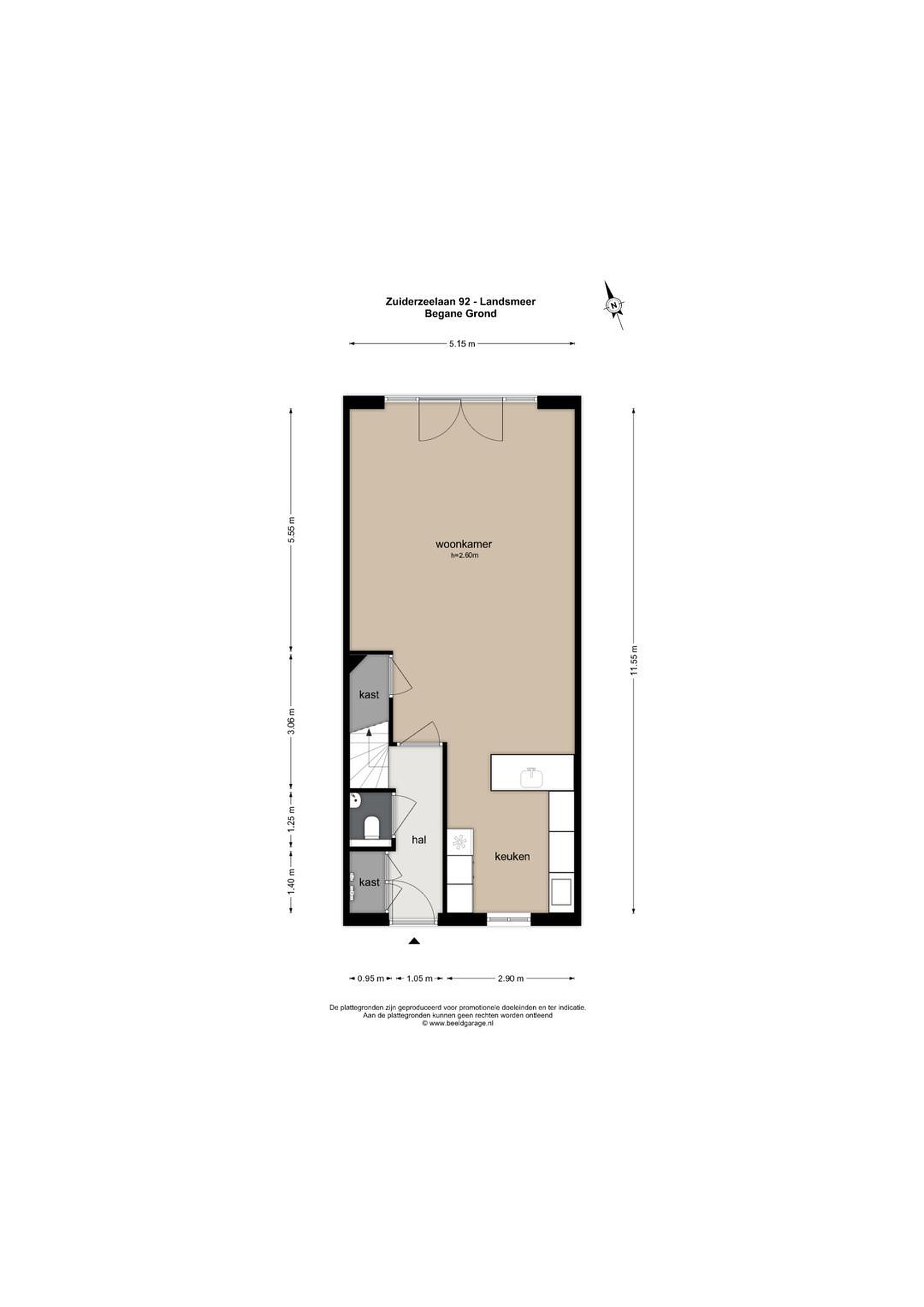 Via de verzorgde voortuin bereikt u de entree van de woning. U komt binnen in de hal met modern toilet en fonteintje. Vanuit hier loopt u door naar de royale, uitgebouwde woonkamer met open keuken aan de voorzijde. De begane grond meet in totaal ca. 52 m2 en heeft een prettige plafondhoogte van 2.60 meter, wat zorgt voor een ruimtelijk gevoel.