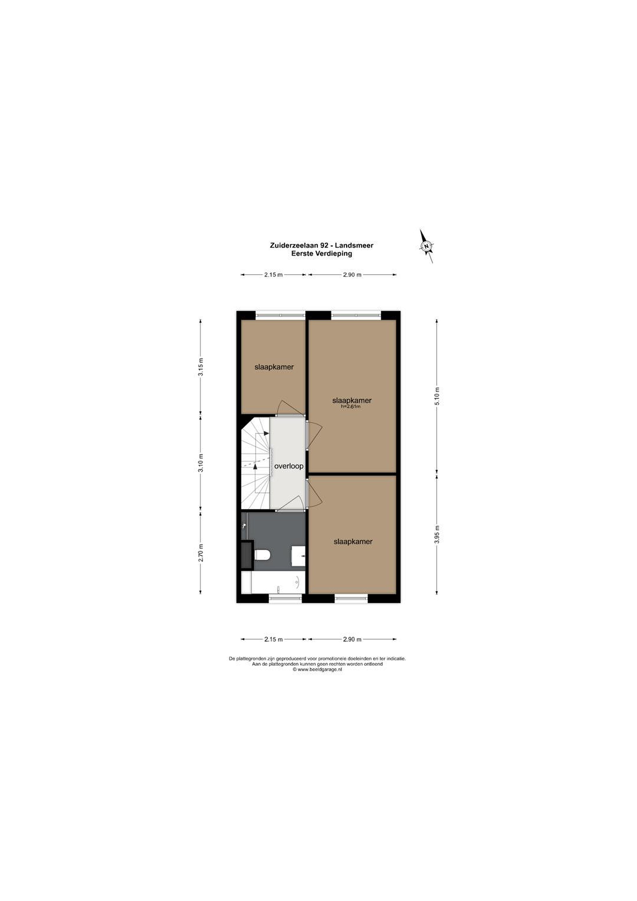 - Slaapkamer 2 (achterzijde) ca. 15 m2
