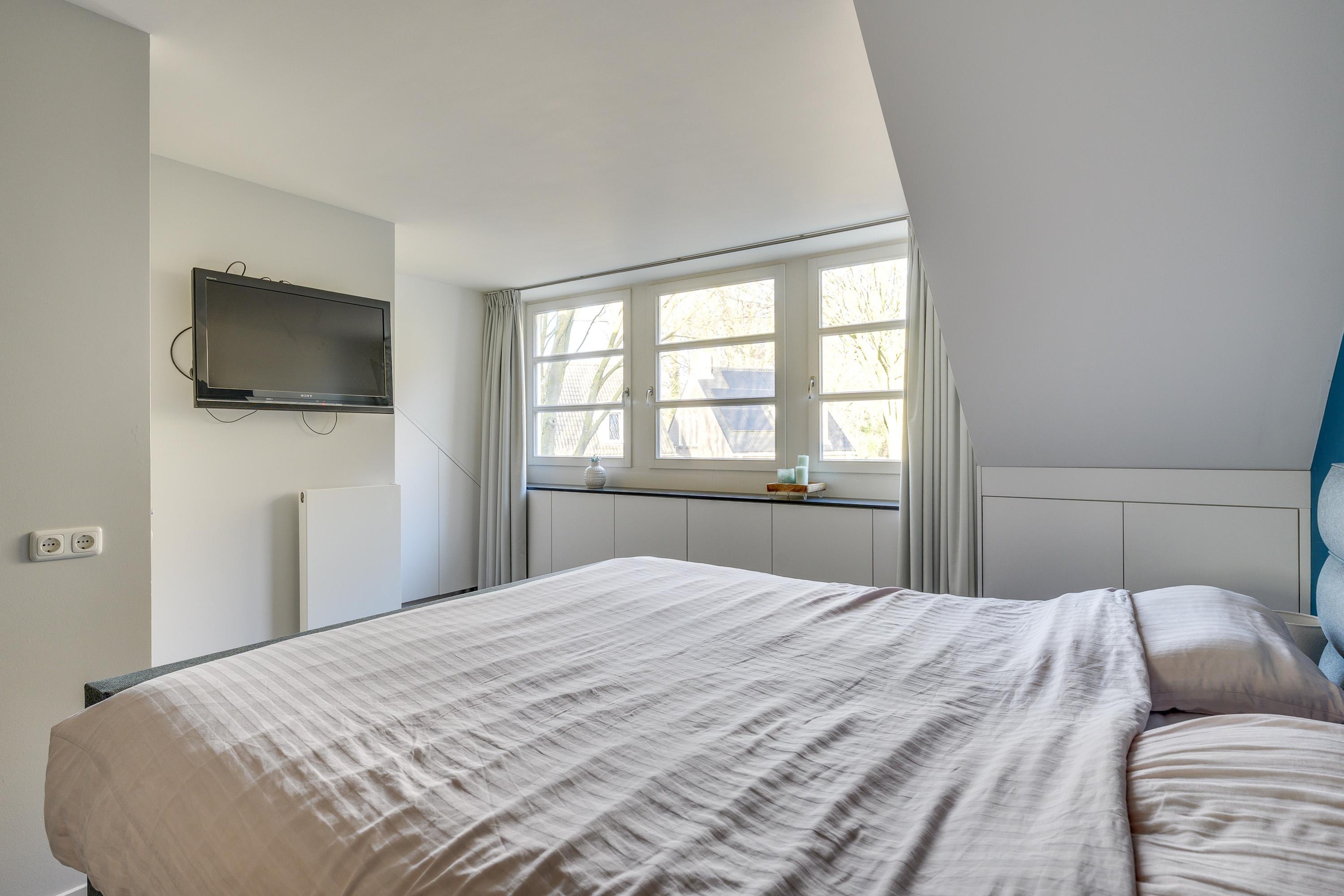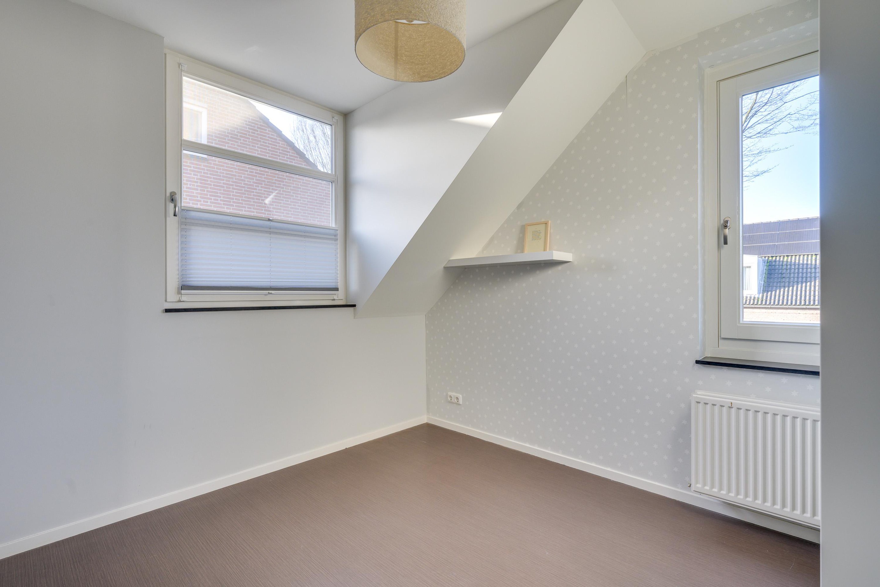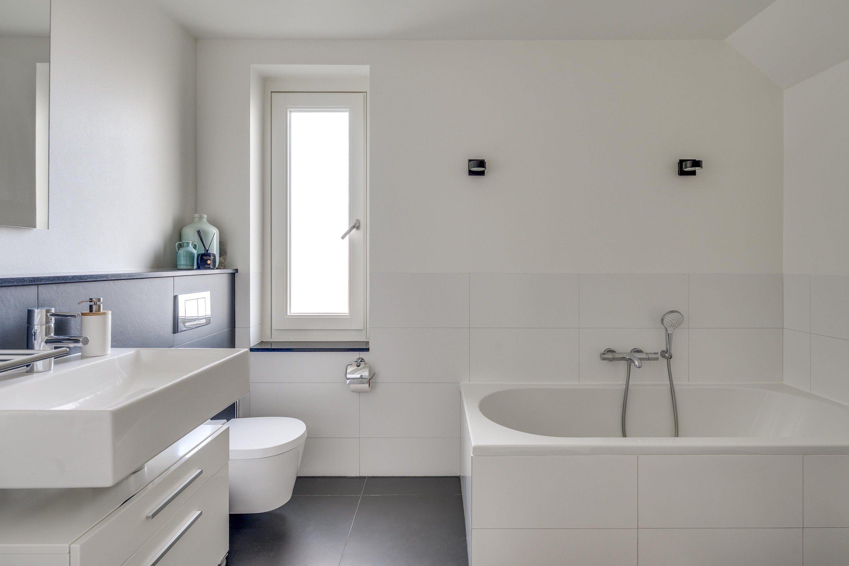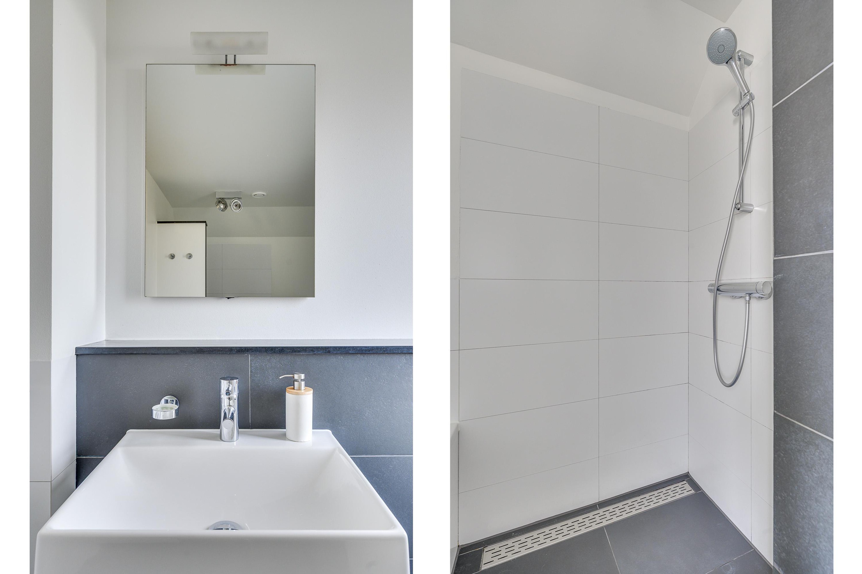Eerste verdieping Op de eerste verdieping bevinden zich drie slaapkamers: twee ruime kamers en een derde, iets kleinere slaapkamer. Alle kamers zijn afgewerkt met strak stucwerk, een luxe pvc-vloer en op maat gemaakte inbouwkasten onder de kapschuinten, wat zorgt voor een rustige en luxe uitstraling. De moderne, deels betegelde badkamer beschikt over een douche, wastafelmeubel, tweede toilet en een grote verlichte spiegel.