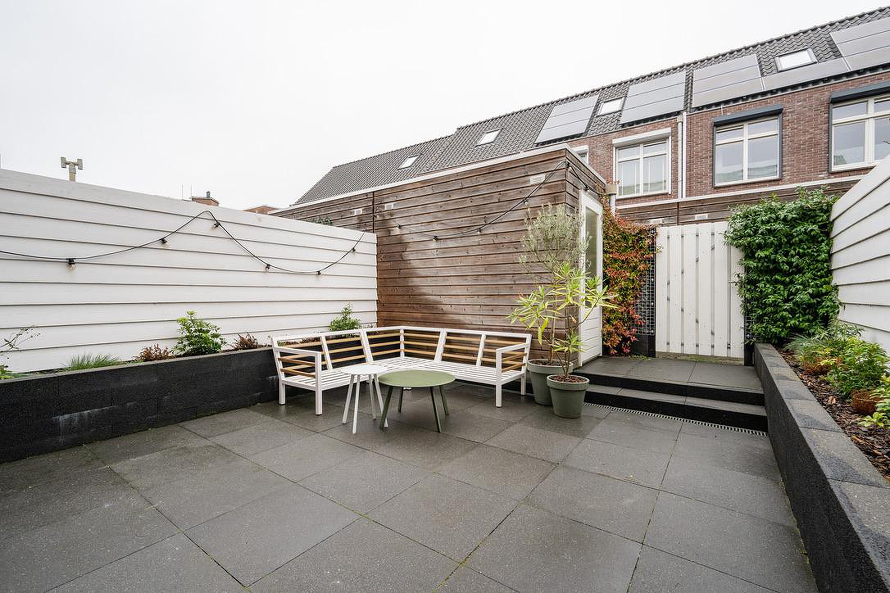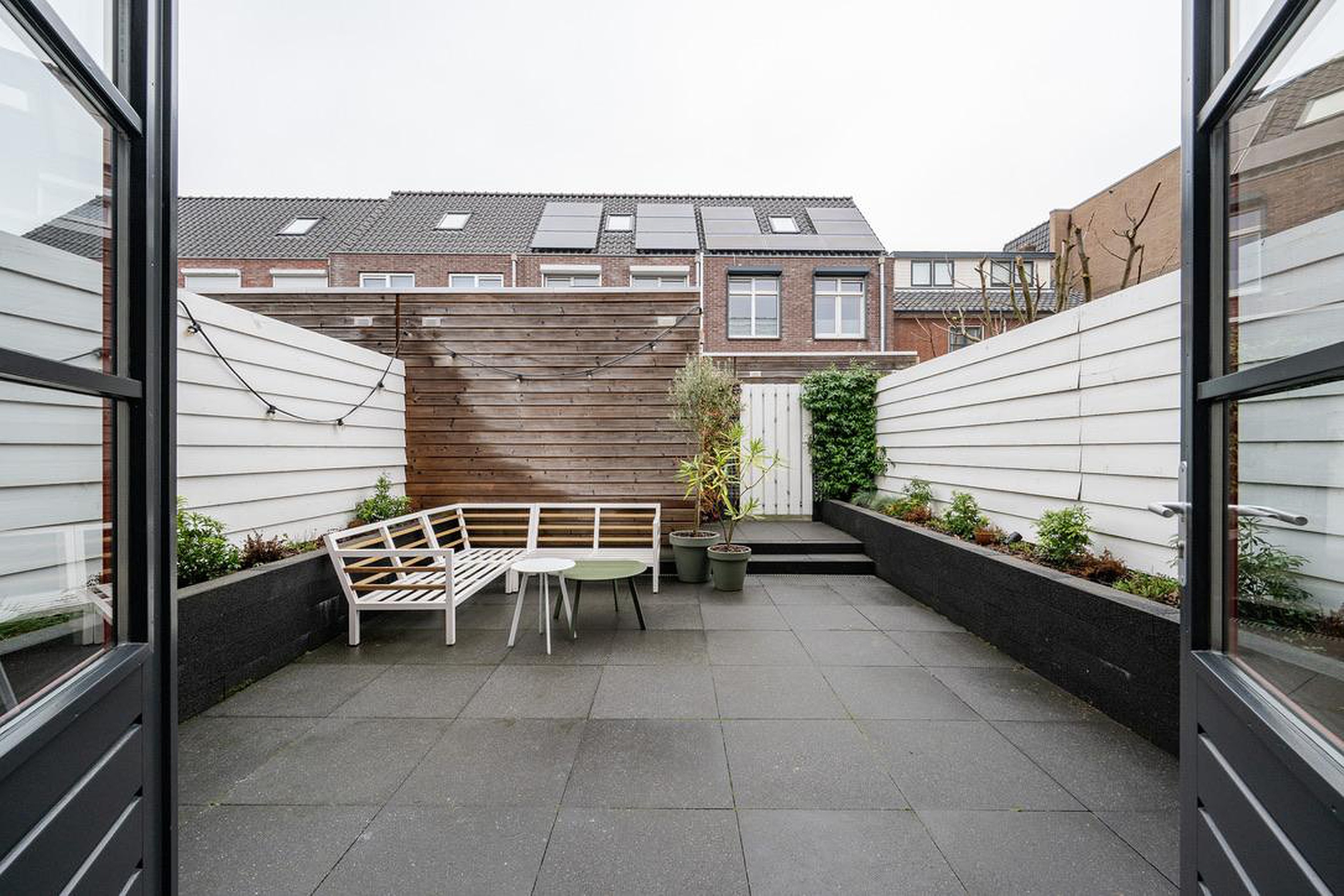 Tuin De achtertuin is aangelegd als onderhoudsvriendelijke stadstuin en beschikt over een terras, vaste plantenbakken en voldoende privacy.