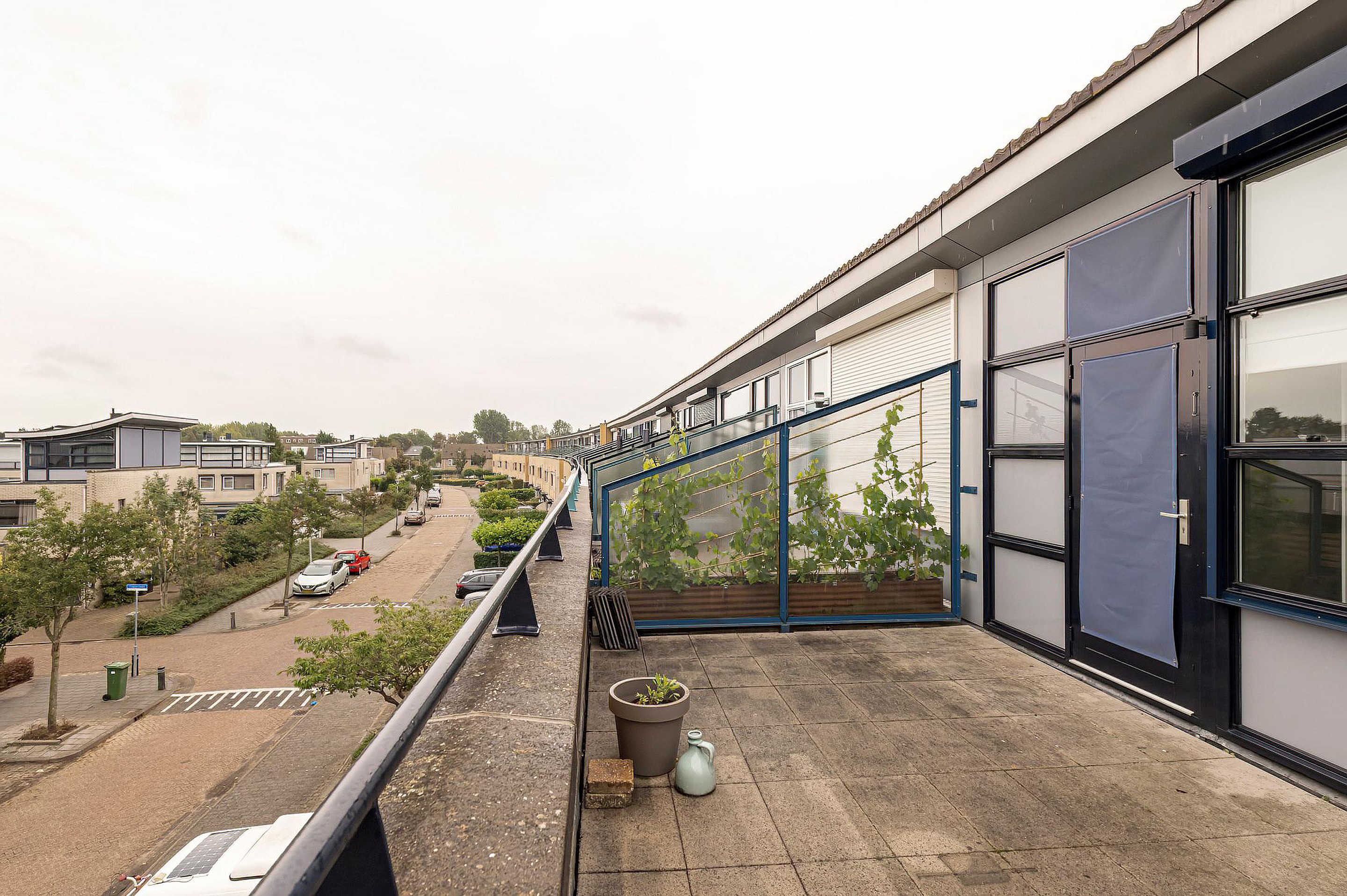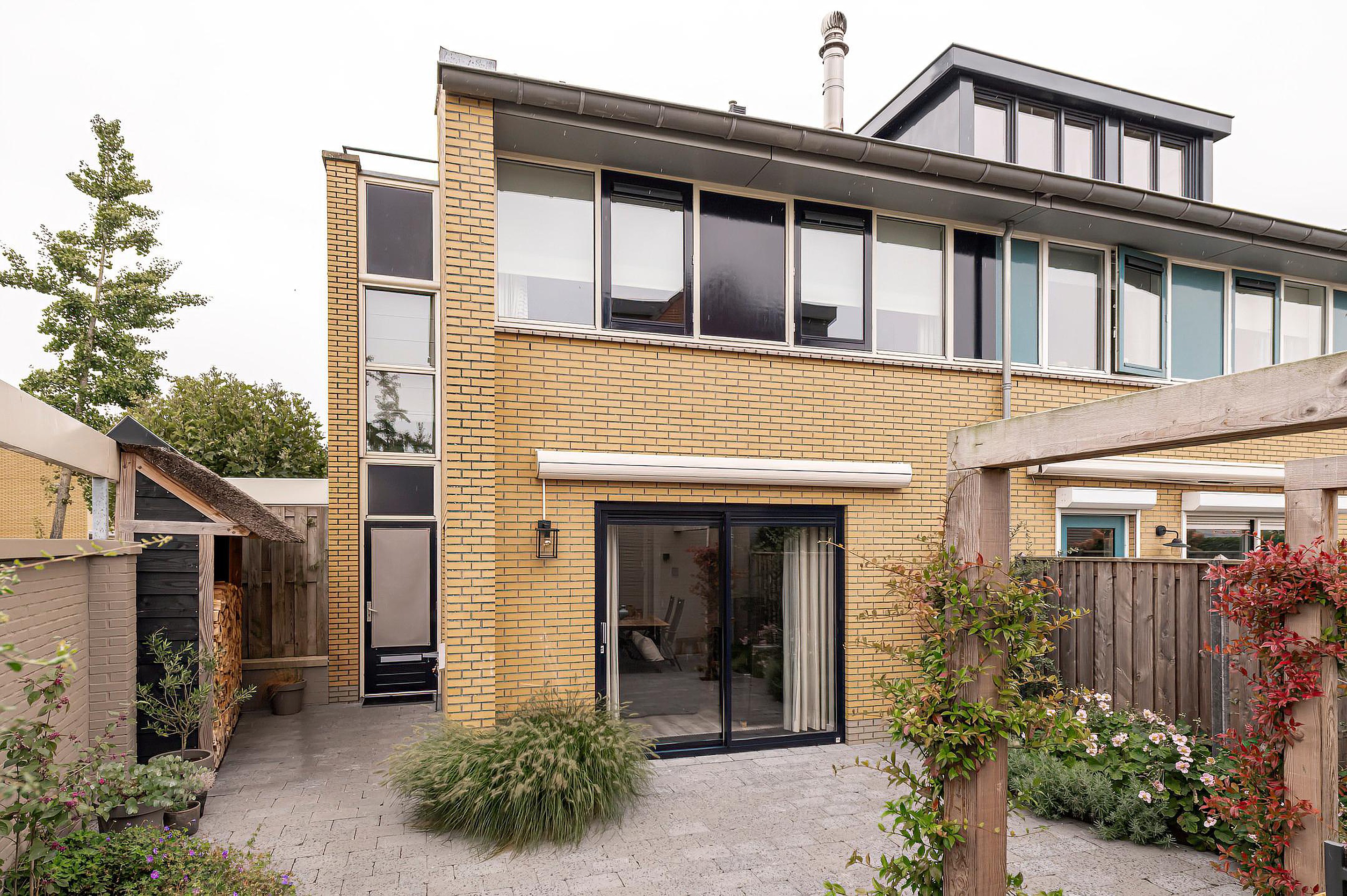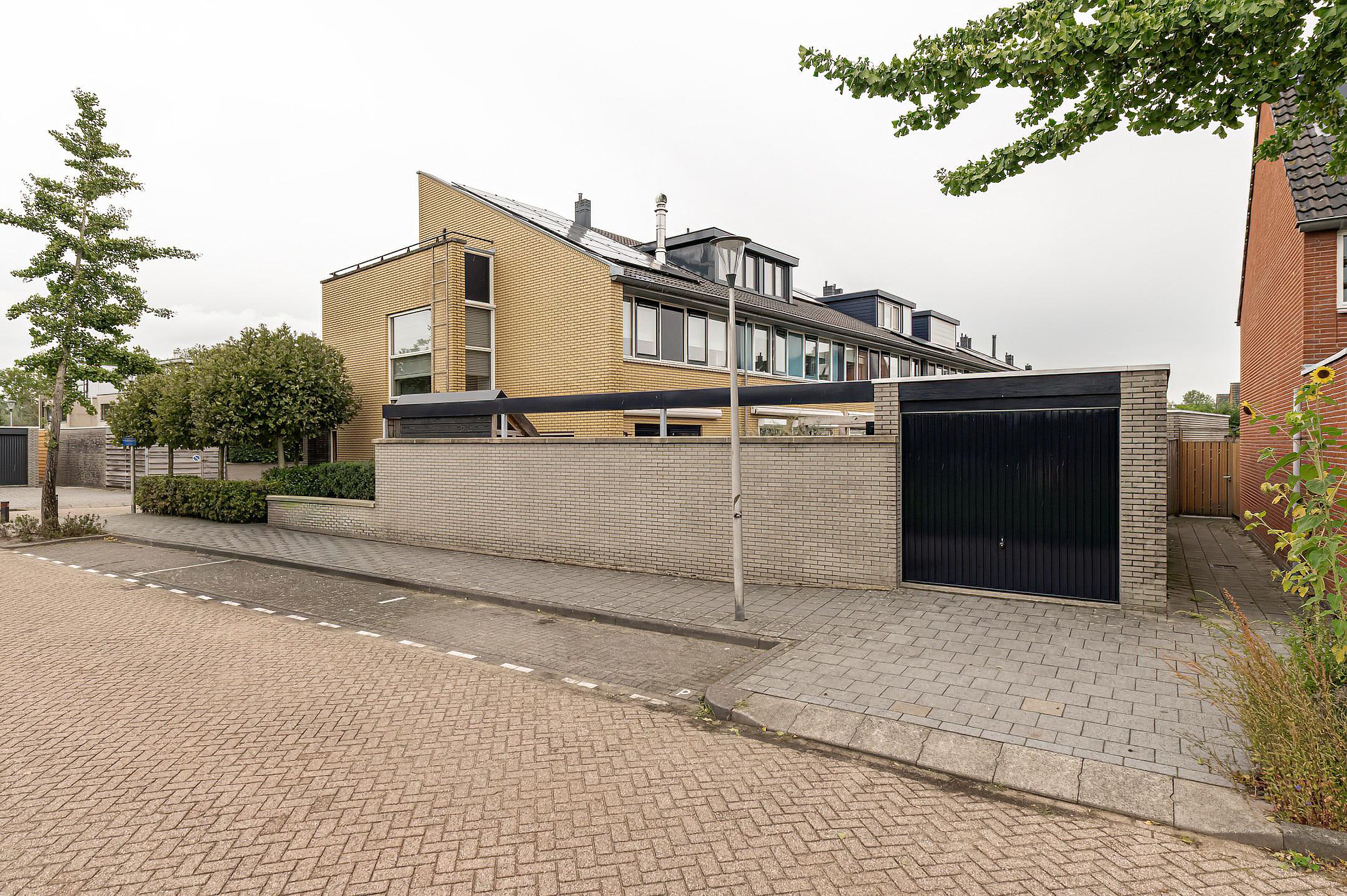 De woning is rond 1995 gebouwd in een ruim opgezette en groene woonwijk. De architectuur is met de hoge raampartij en het dakterras speel en fraai te noemen. Beslist geen dertien in een dozijn.