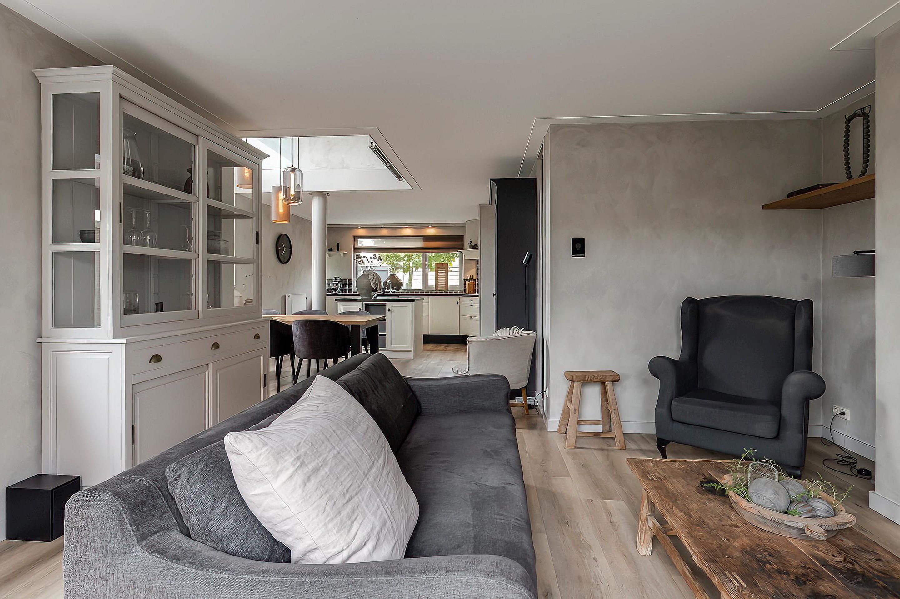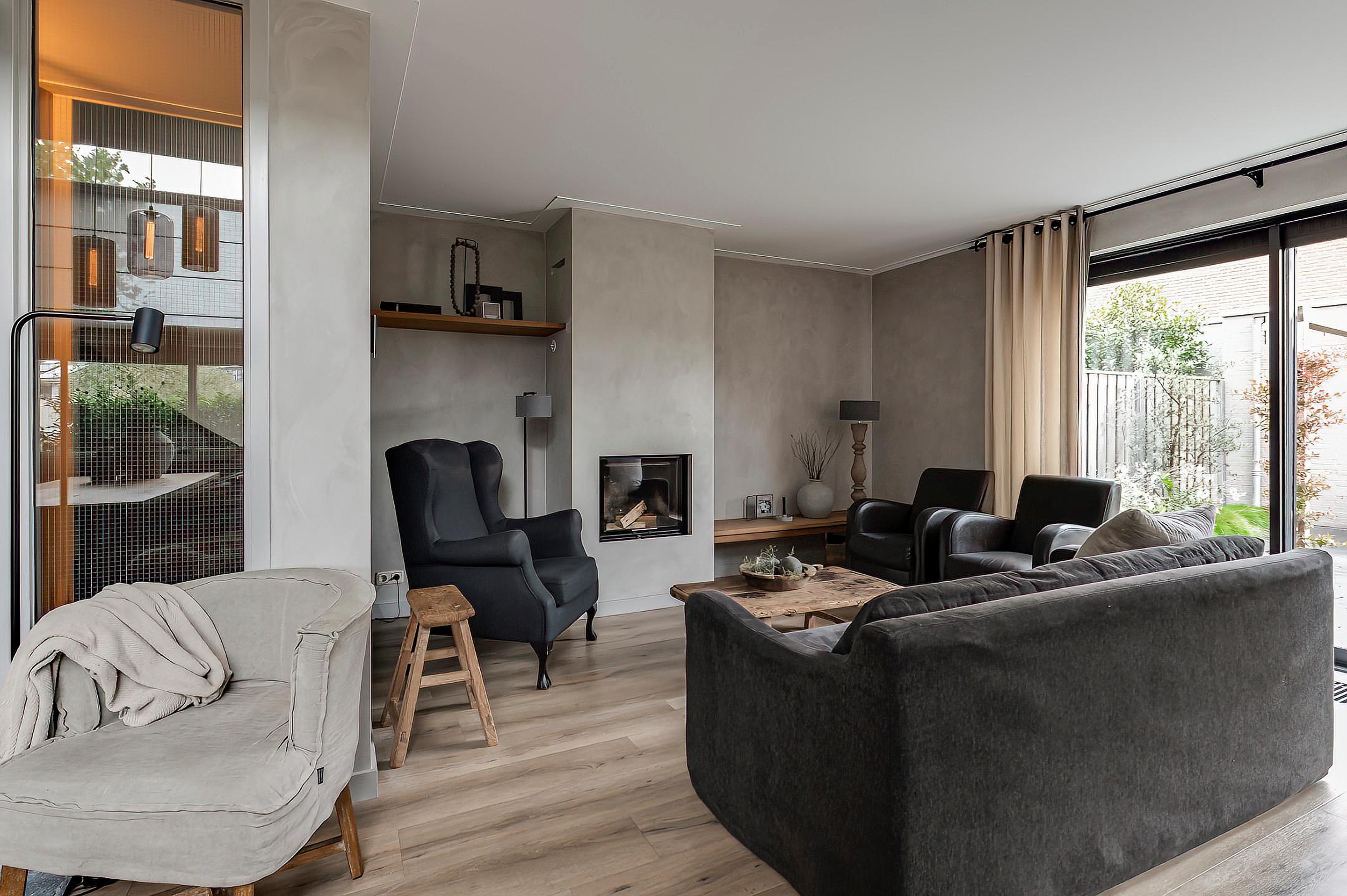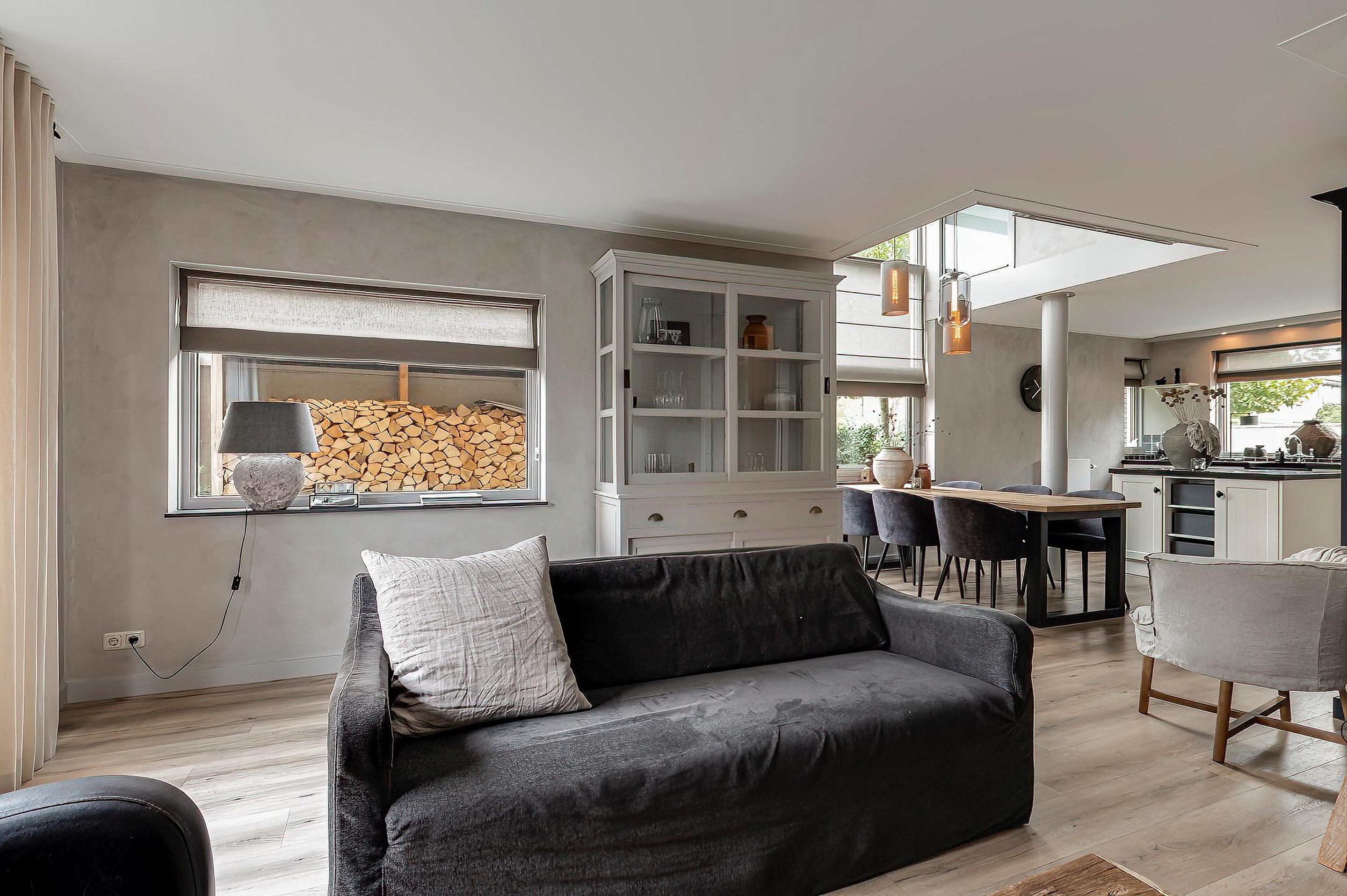 De woonkamer is tuingericht en via een deur of een brede schuifpui is de achtertuin te bereiken. Naast vloerverwarming is er een fraaie houtkachel. De hoge raampartij aan de zijkant zorgt voor veel licht en een mooi zicht op het ‘Muizenveld’.