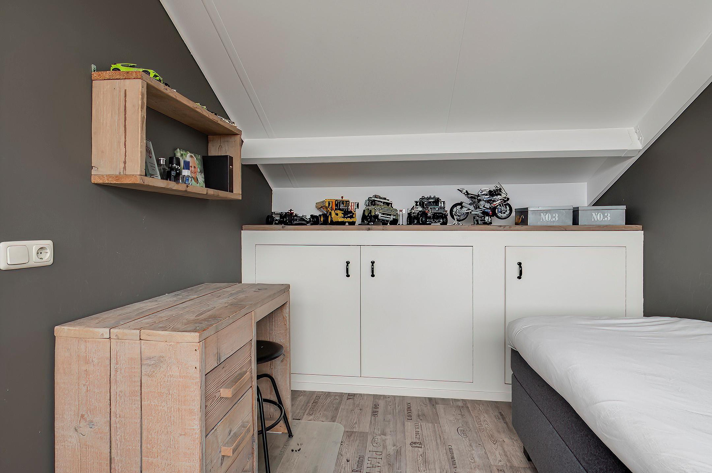 Via een vaste trap is de 2e verdieping bereikbaar. Op de ruime zolder treffen we veel bergruimte achter de knieschotten.