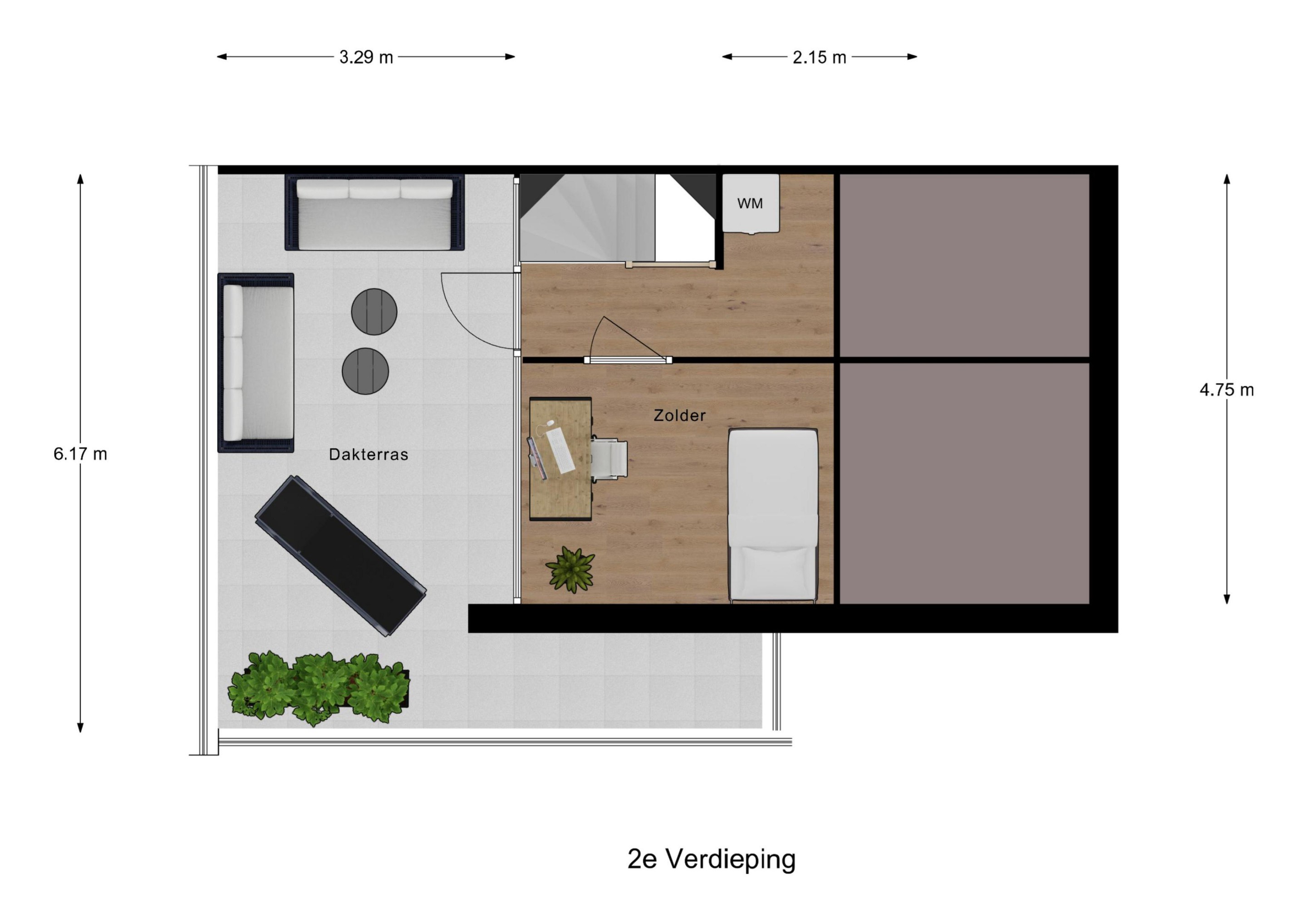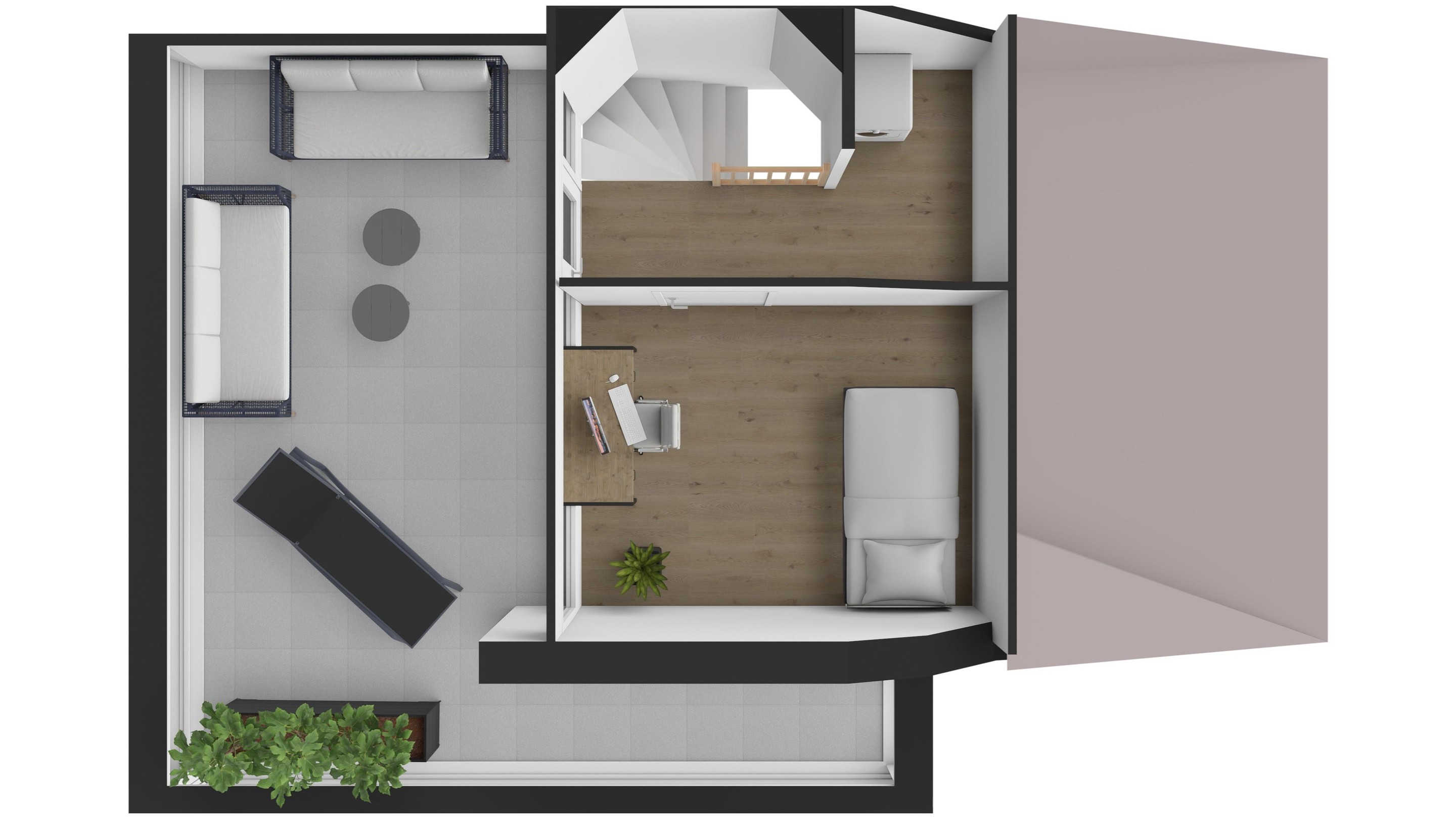Genieten van het zonnetje kan ook op deze etage. Het dakterras meet maar liefst zo’n circa 23 m2!