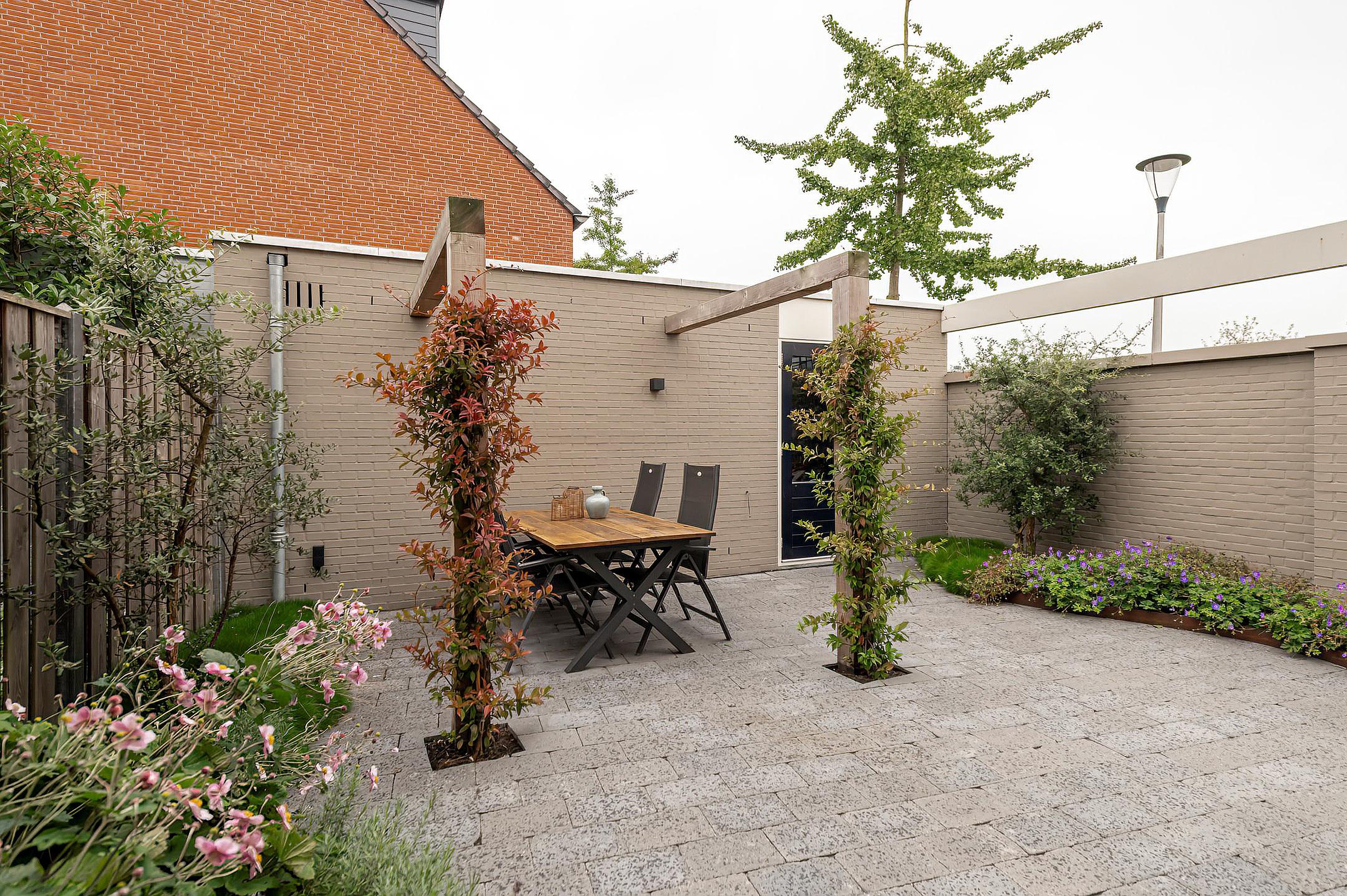 Voor is er een dubbele oprit en de achtertuin is stijlvol en onderhoudsvriendelijk aangelegd.