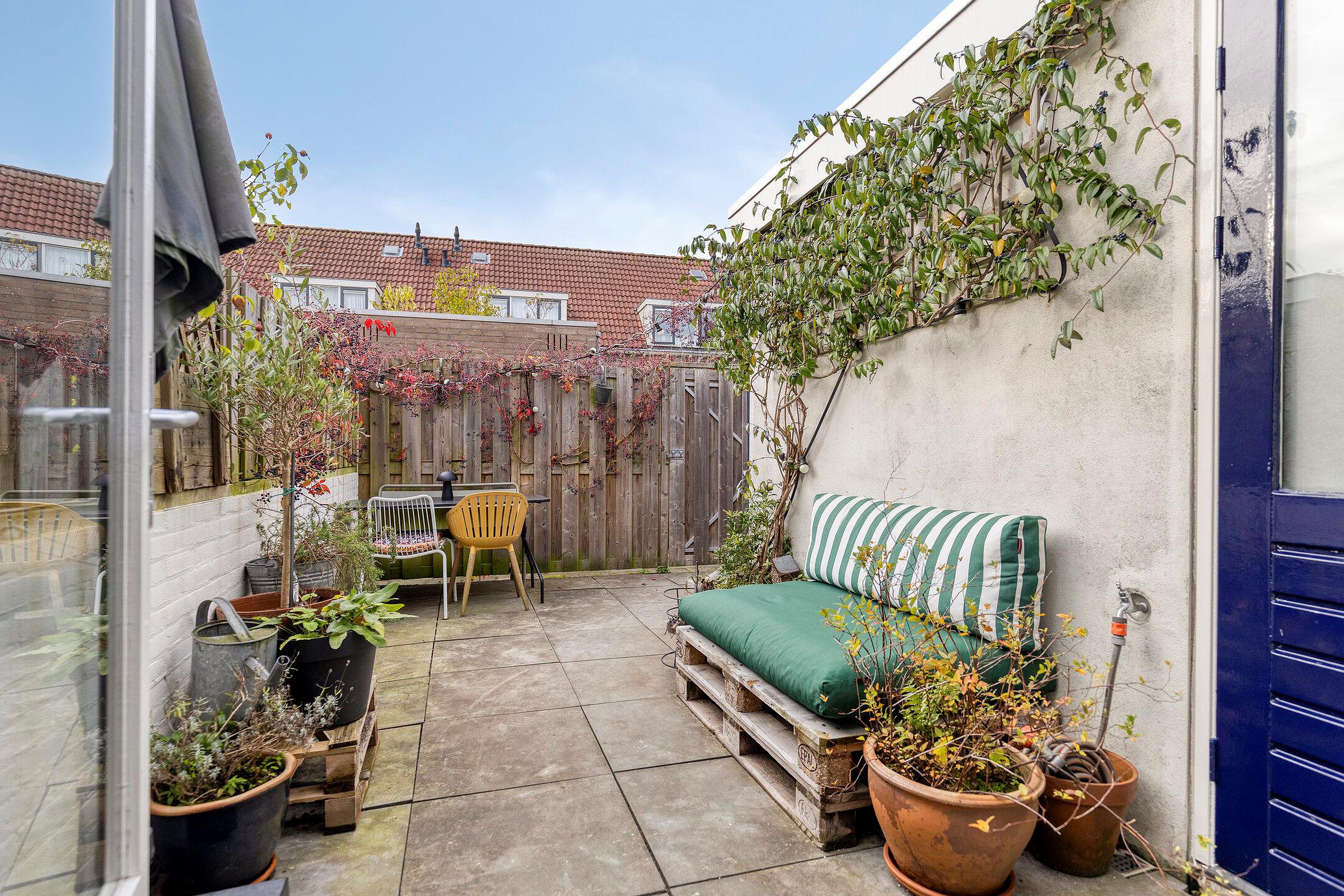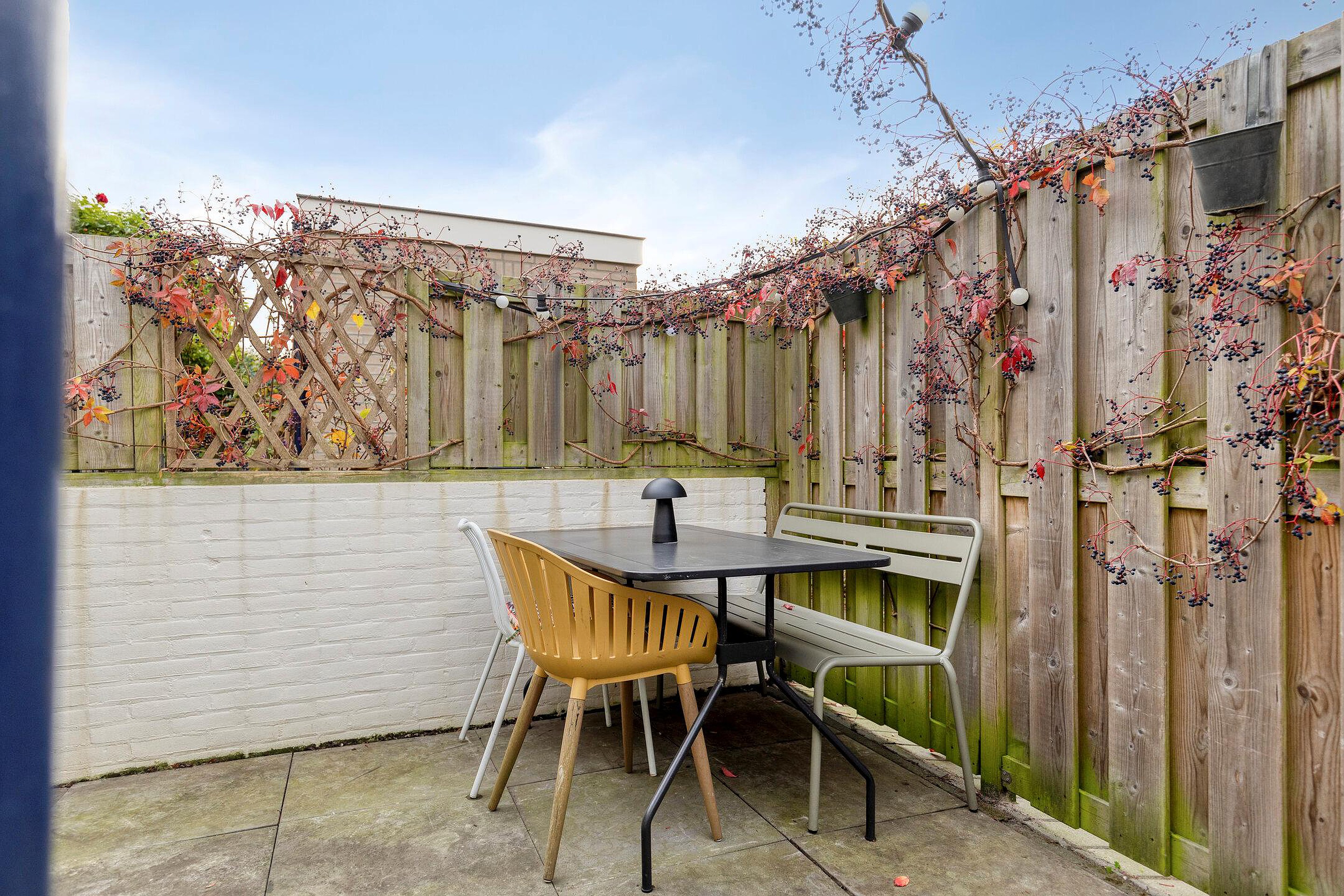 Via de openslaande deuren loop je de achtertuin in: een fijne plek om te ontspannen, met ruimte voor een eettafel en loungehoek. Hier kun je de hele dag door genieten van zon én privacy. De ligging is noordwest, maar er is geen hoogbouw in de buurt dus je hebt bijna de hele dag de zon Ideaal.