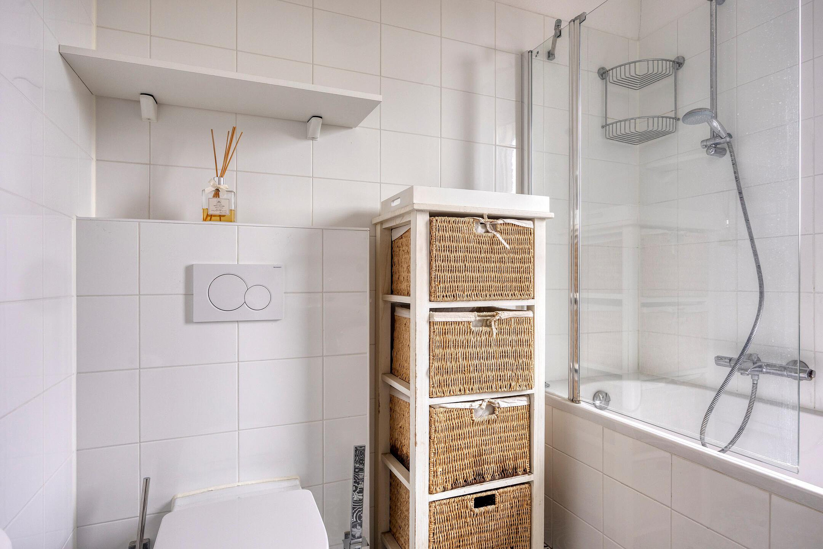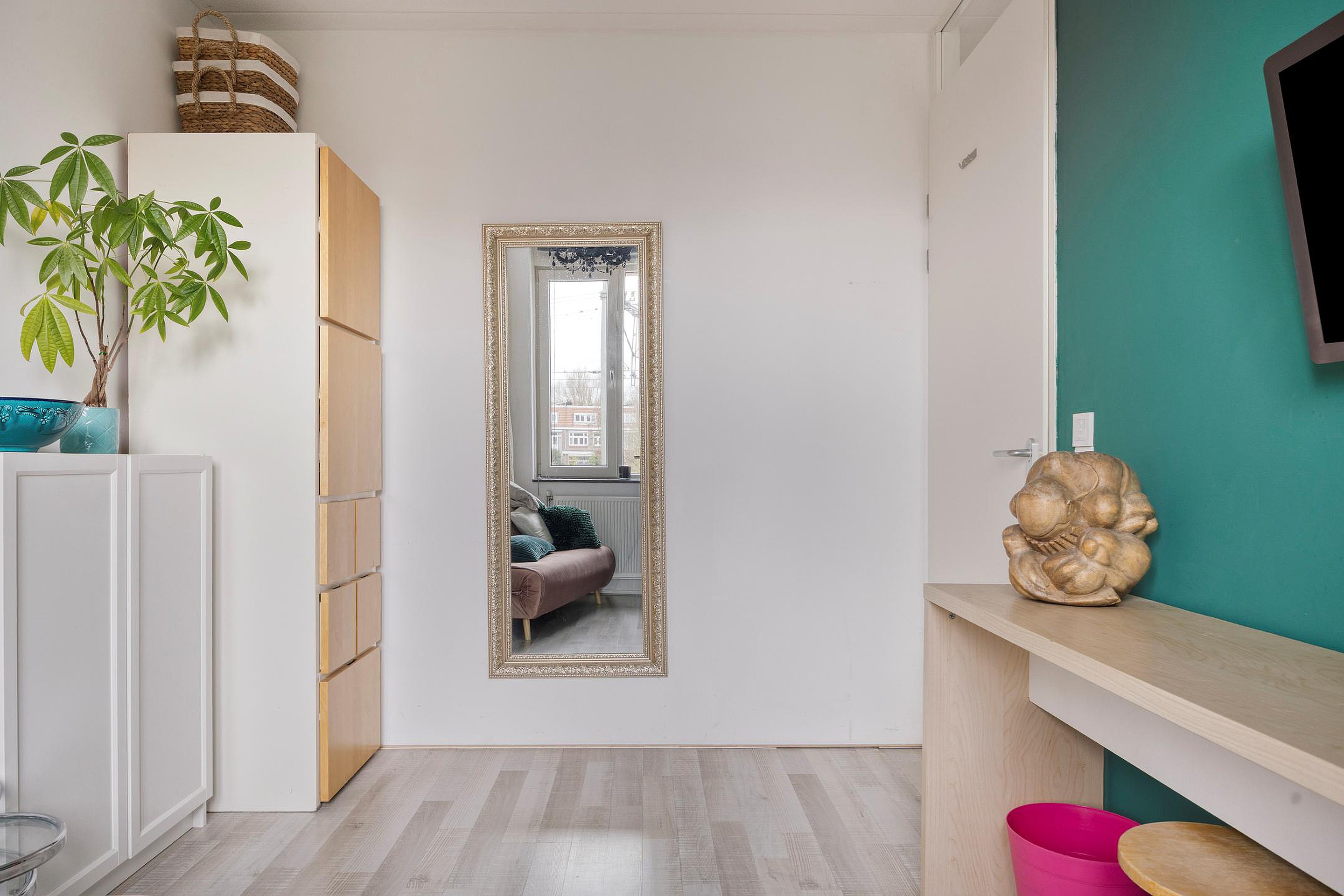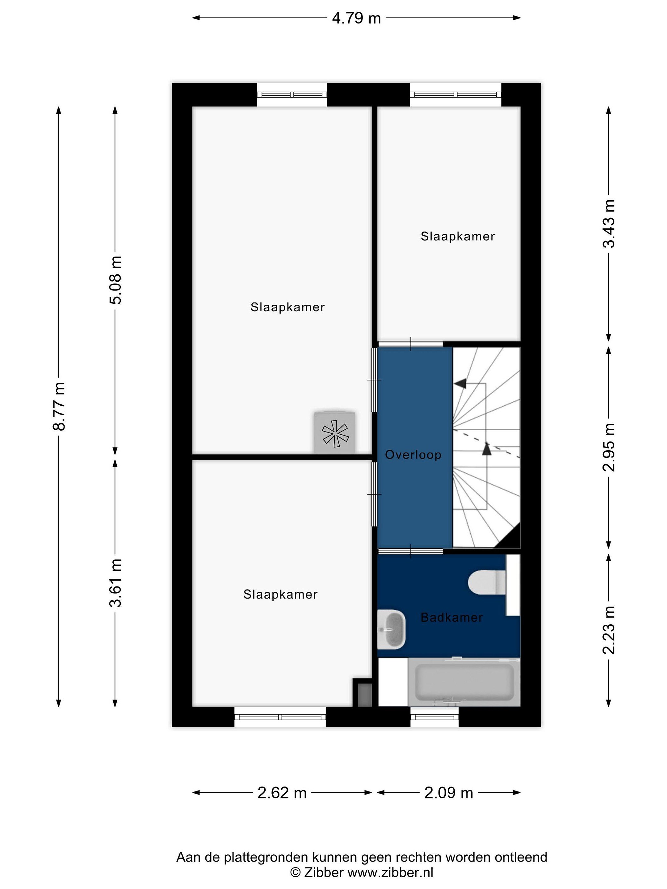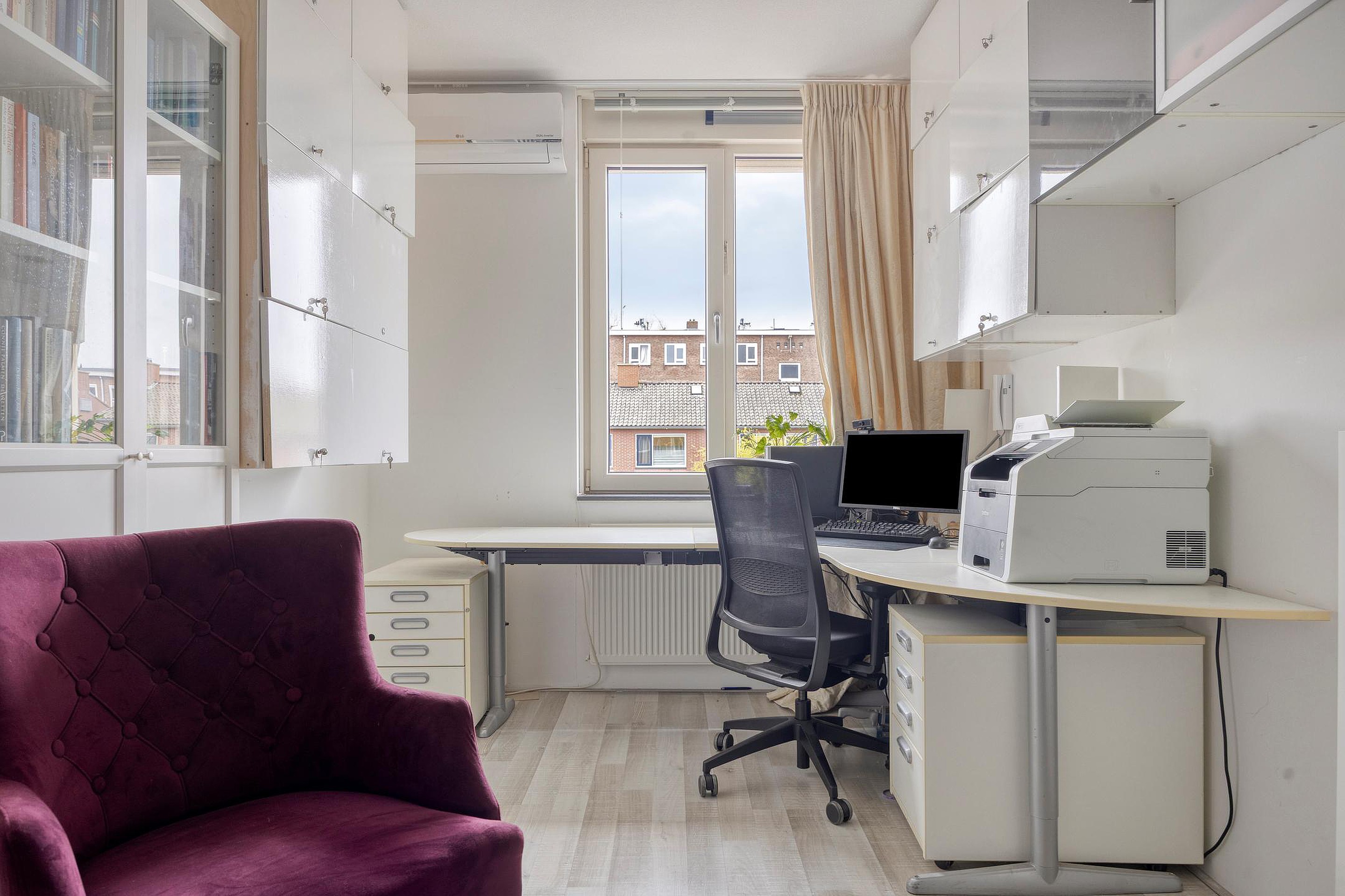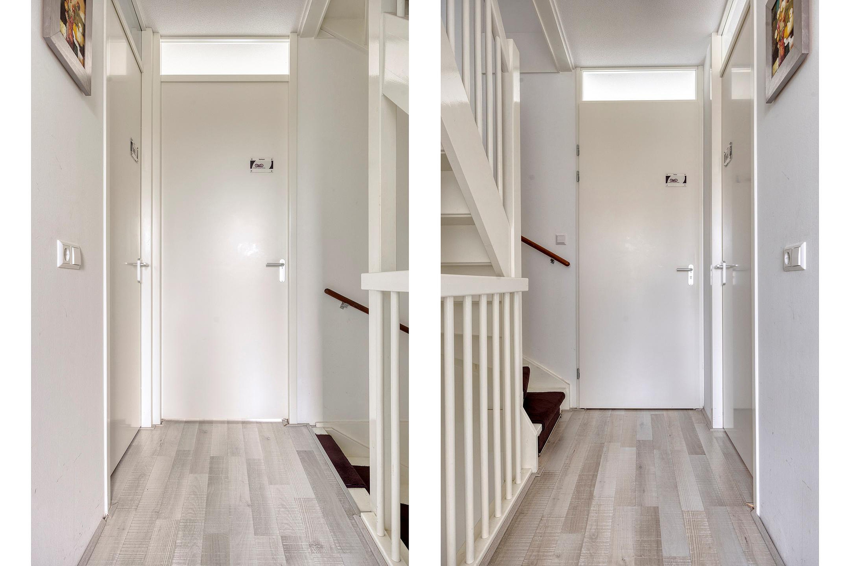 Overloop. Aan de voorzijde van de woning vindt u een slaapkamer. Aan de achterzijde van deze woning bevinden zich nog twee slaapkamers waarvan één kamer is voorzien van een elektrisch bedienbaar zonnescherm. De badkamer met ligbad/douchecombinatie, wastafel en 2e (hangend) toilet maakt het geheel compleet.