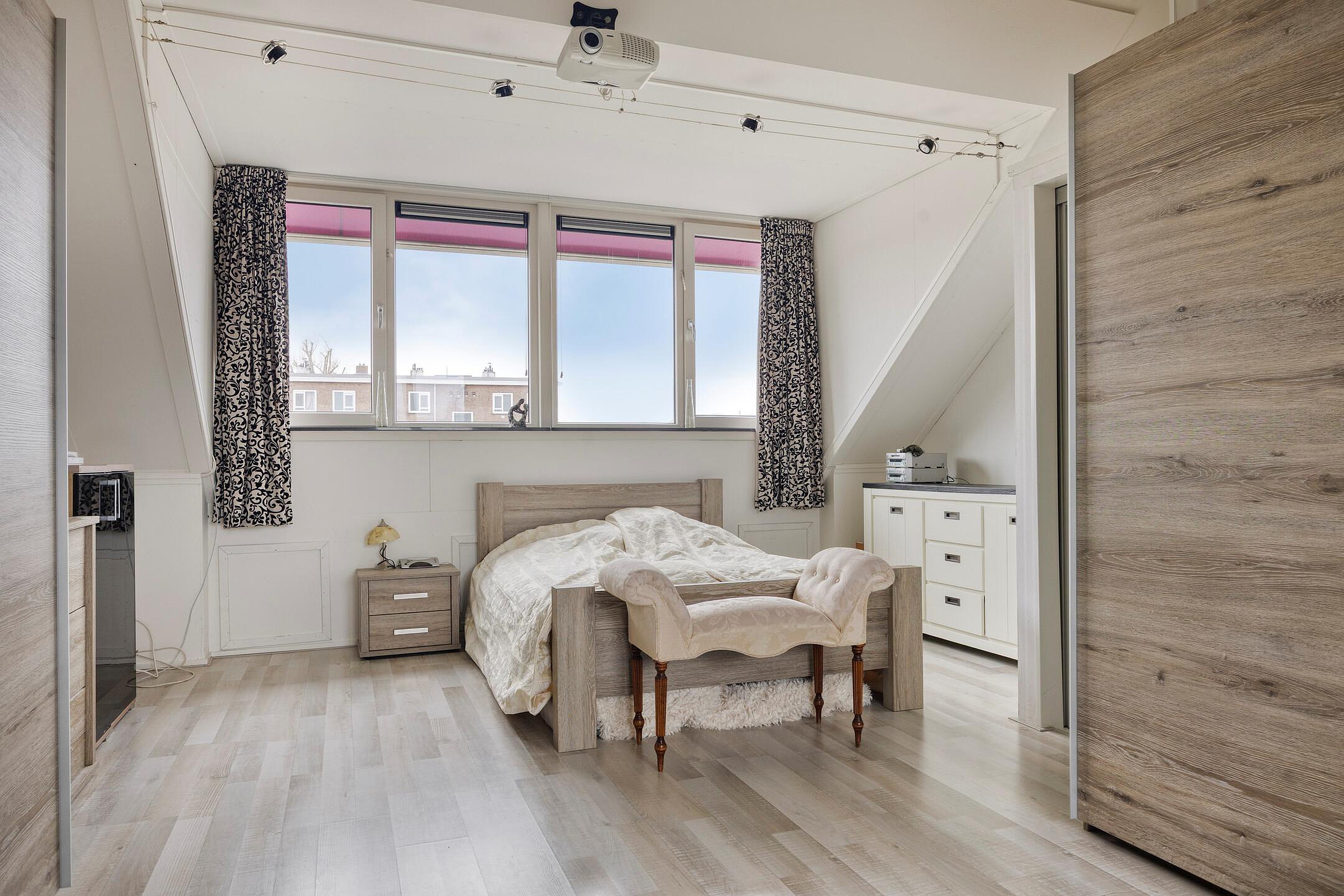 Omdat deze verdieping aan de voor- en achterzijde is voorzien van een dakkapel (inclusief elektrisch bedienbare zonnewering) geniet u van extra woonruimte. Royale afsluitbare zolderslaapkamer met kast inclusief wasmachineaansluiting en een kast voor de cv-opstelling (2015). Het is tevens mogelijk om op deze verdieping een extra slaapkamer, werk- en/of hobbyruimte te creëren.
