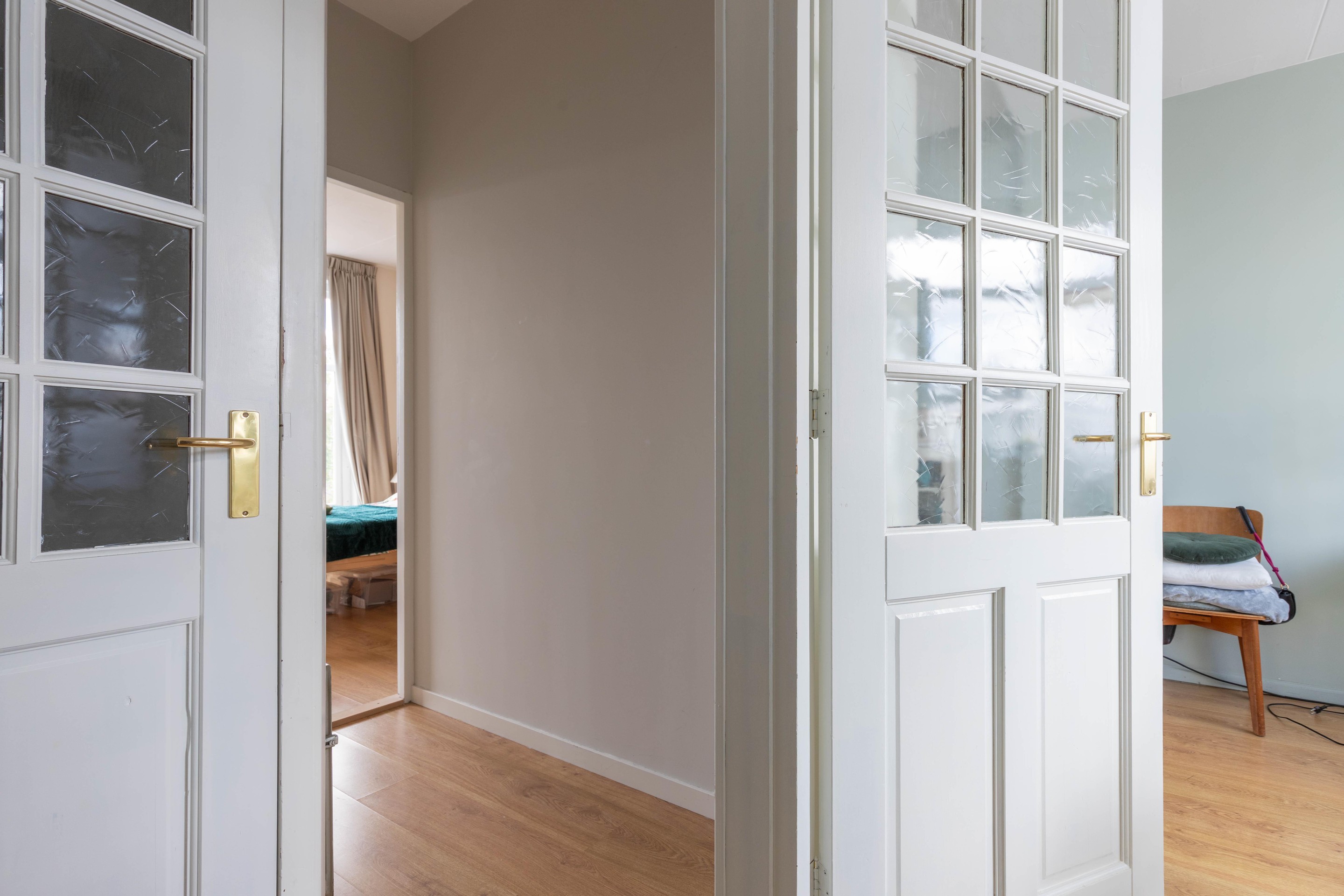 Eerste verdieping Vanaf de overloop is er toegang tot de slaapkamers en waskamer. De slaapkamer aan de achterzijde ligt op de middagzon en beschikt over dubbel glas. De ruime slaapkamer aan de voorzijde van de woning geschikt nog over de oorspronkelijke schuiframen echter wel voorzien van dubbel glas.