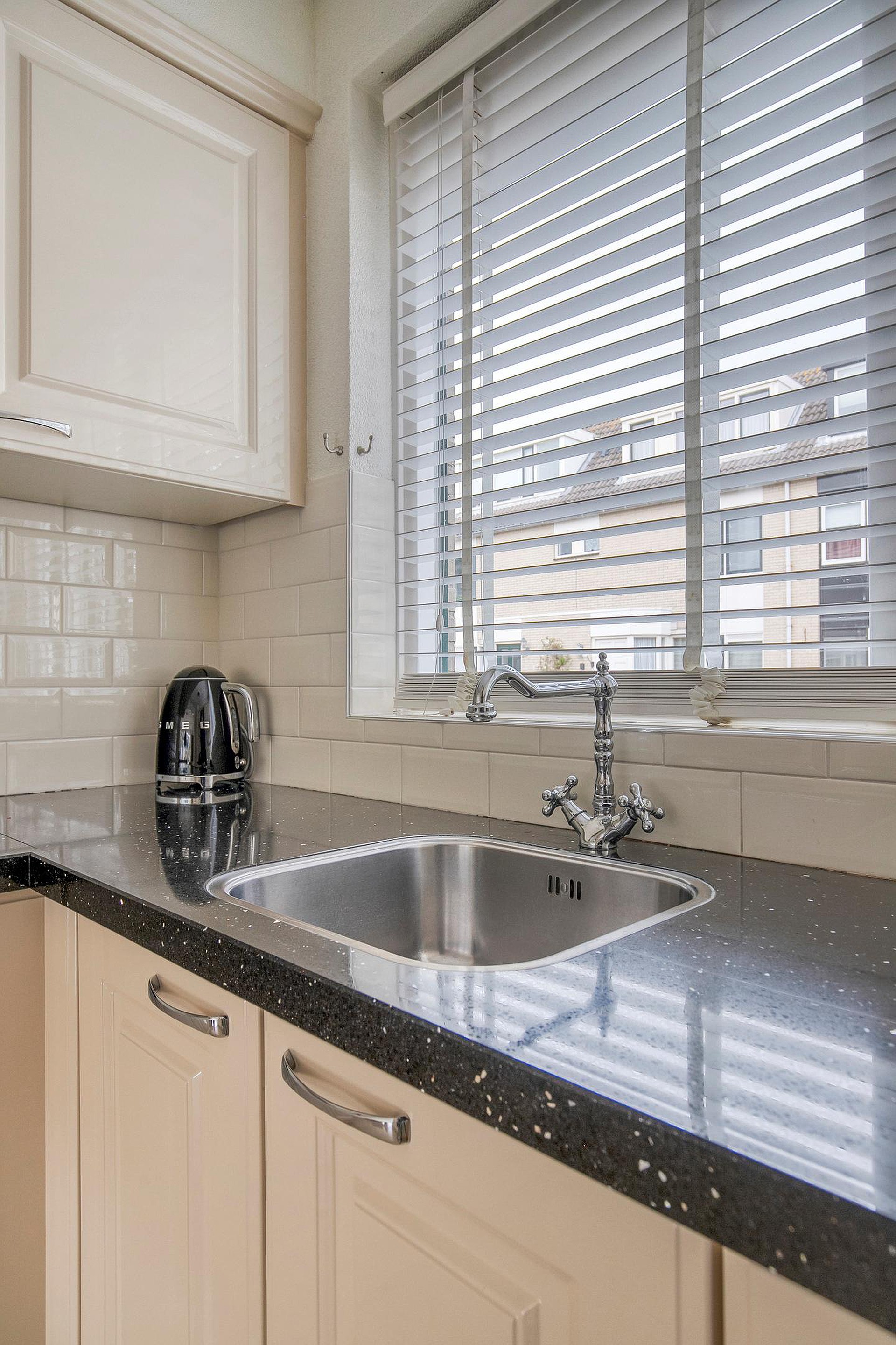 Begane grond Entree woning, hal met meterkast/stadsverwarming, garderobekast en een toiletruimte met hangend closet. Lichte tuingerichte woonkamer voorzien van stuukwerk, trapkast, open keuken en een tegelvloer met vloerverwarming. Leuk detail: één wand in de woonkamer is afgewerkt met steigerhout. Aan de voorzijde van de woning bevindt zich de U-vormige keuken met een granieten werkblad, keramische kookplaat, rvs afzuigkap, combi oven, koel/vriescombinatie en een vaatwasser. De diepe achtertuin maakt deze woning extra bezichtigingswaardig. Zonliefhebbers opgelet! Deze ruime achtertuin is gelegen op het zuiden. Het elektrisch bedienbaar zonnescherm, de stenen berging en de achterom zorgen voor comfort.