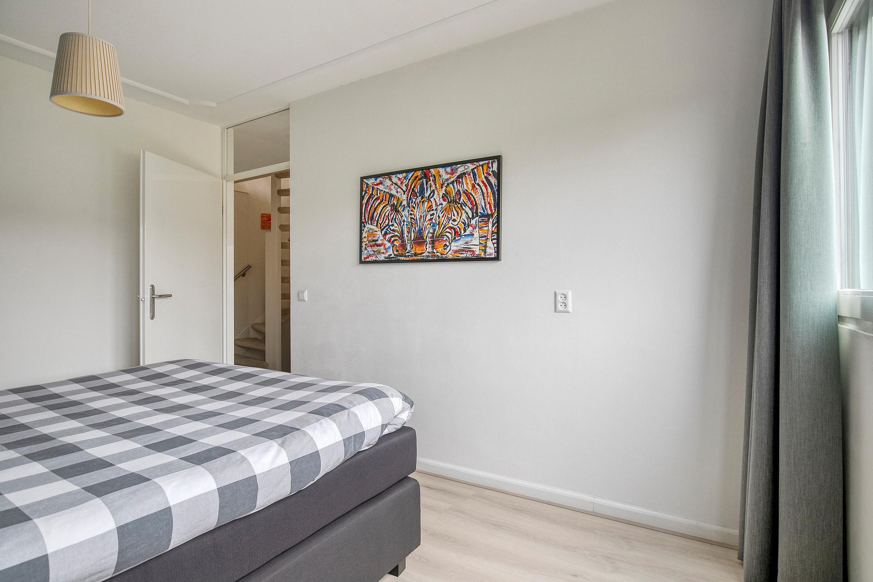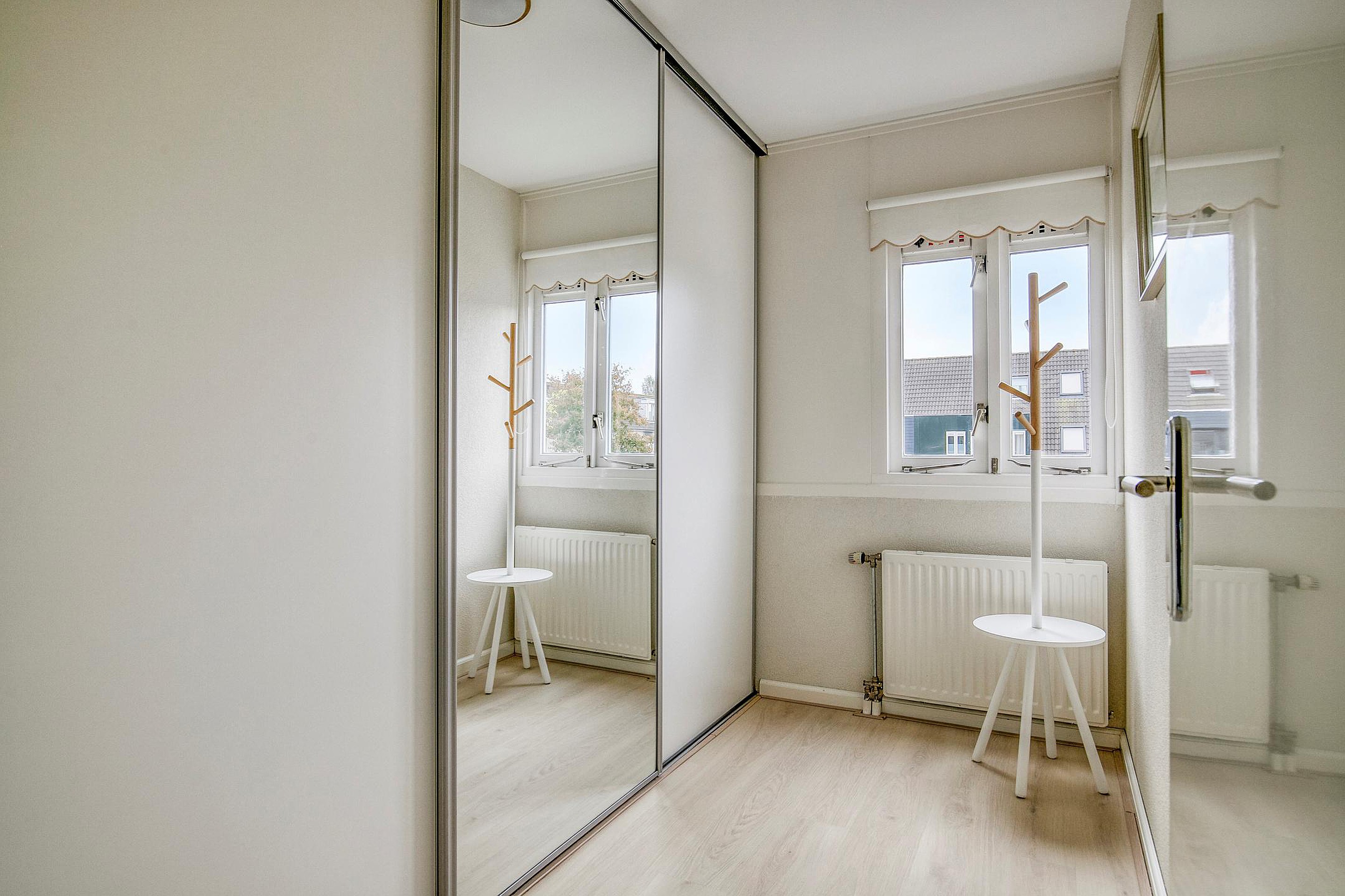 Overloop met vaste (berg)kast. Aan de achterzijde van de woning bevindt zich een slaapkamer voorzien van een dakkapel. Ook aan de achterzijde vindt u een slaapkamer met dakkapel en vaste kastenwand welke ook uitermate geschikt is als studie-/hobby- of kinderkamer. Aan de voorzijde van deze leuke eengezinswoning vindt u een slaapkamer met rolluik. De uitgebouwde badkamer met ligbad, separate doucheruimte, wastafelmeubel, 2e hangend closet en inbouwverlichting maakt het geheel compleet.