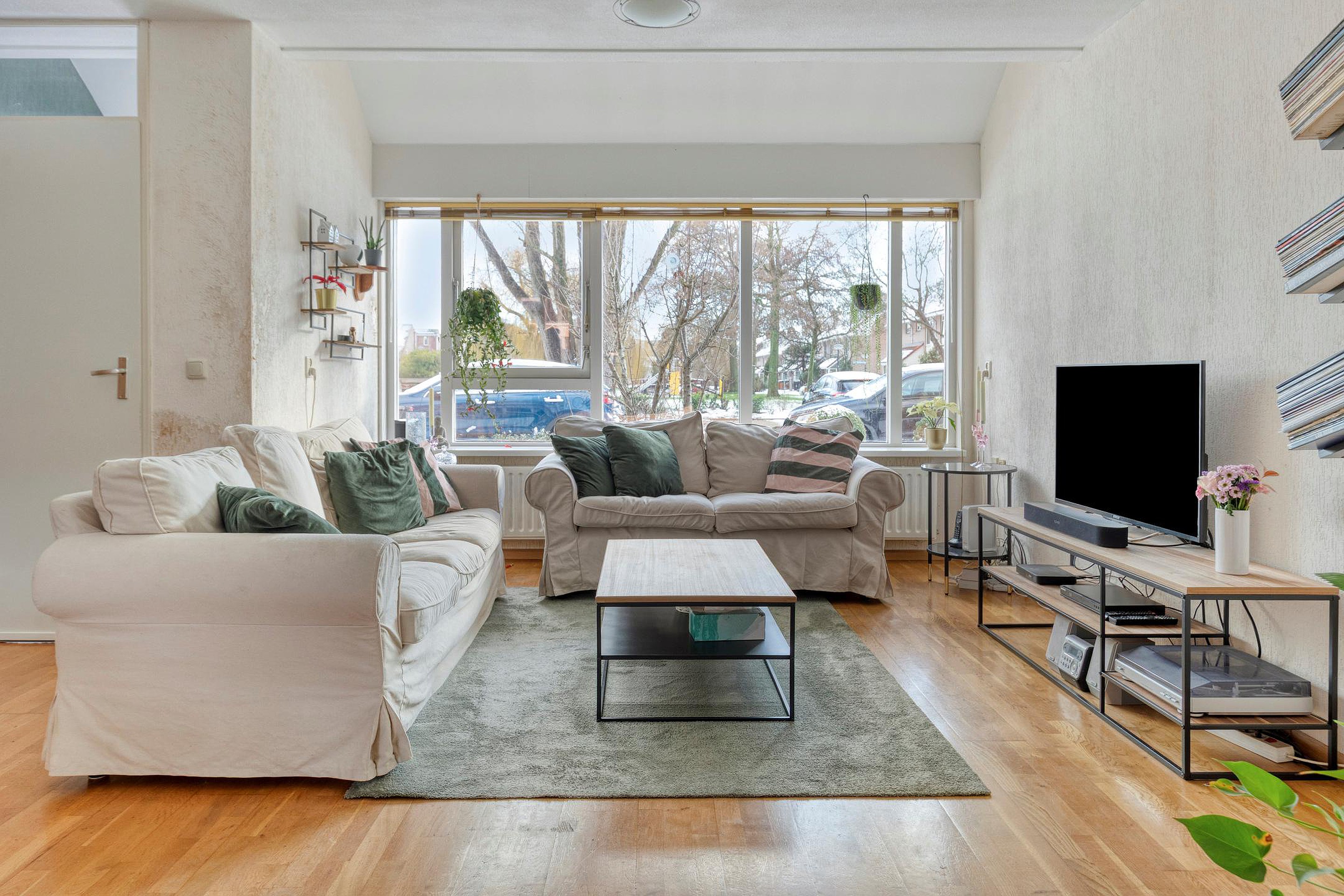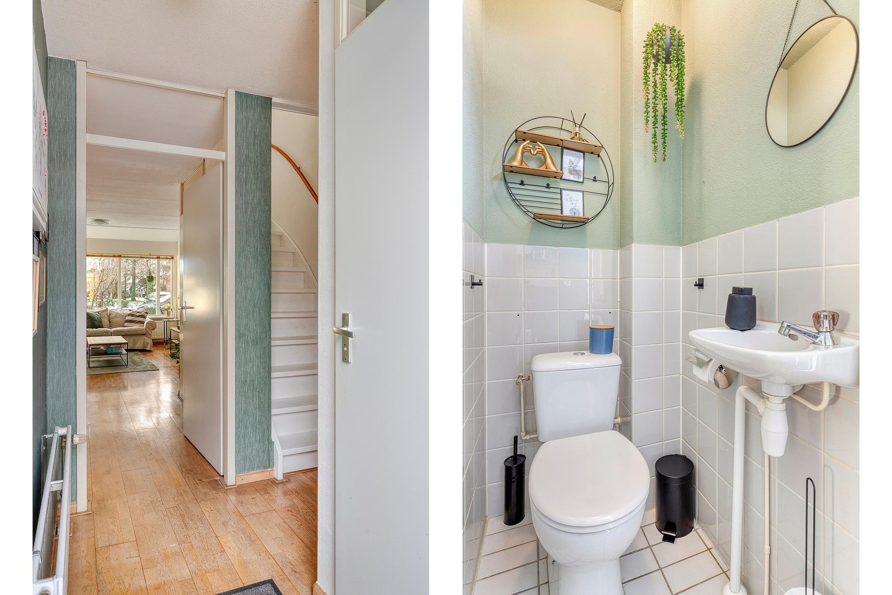 Begane grond Voortuin. Entree woning, hal met meterkast/stadsverwarming. Door de grote raampartij geniet u van een lichte straatgerichte woonkamer met aantrekkelijk uitzicht op groen. Bergruimte vindt u in de trapkast. De U-vormige open keuken bevindt zich aan de achterzijde van de woning en is o.a. voorzien van een 4-pitskookplaat, afzuigkap, oven, koelkast en een vaatwasser. Via de tussenhal met toiletruimte en trapopgang bereikt u de diepe achtertuin gelegen op het noordwesten met houten berging en een achterom. Door z’n afmeting en ligging is deze achtertuin heerlijk zonnig. Beeldt u zich eens in hoe fijn deze tuin kan zijn wanneer u vrienden of familie hebt uitgenodigd voor een bbq...