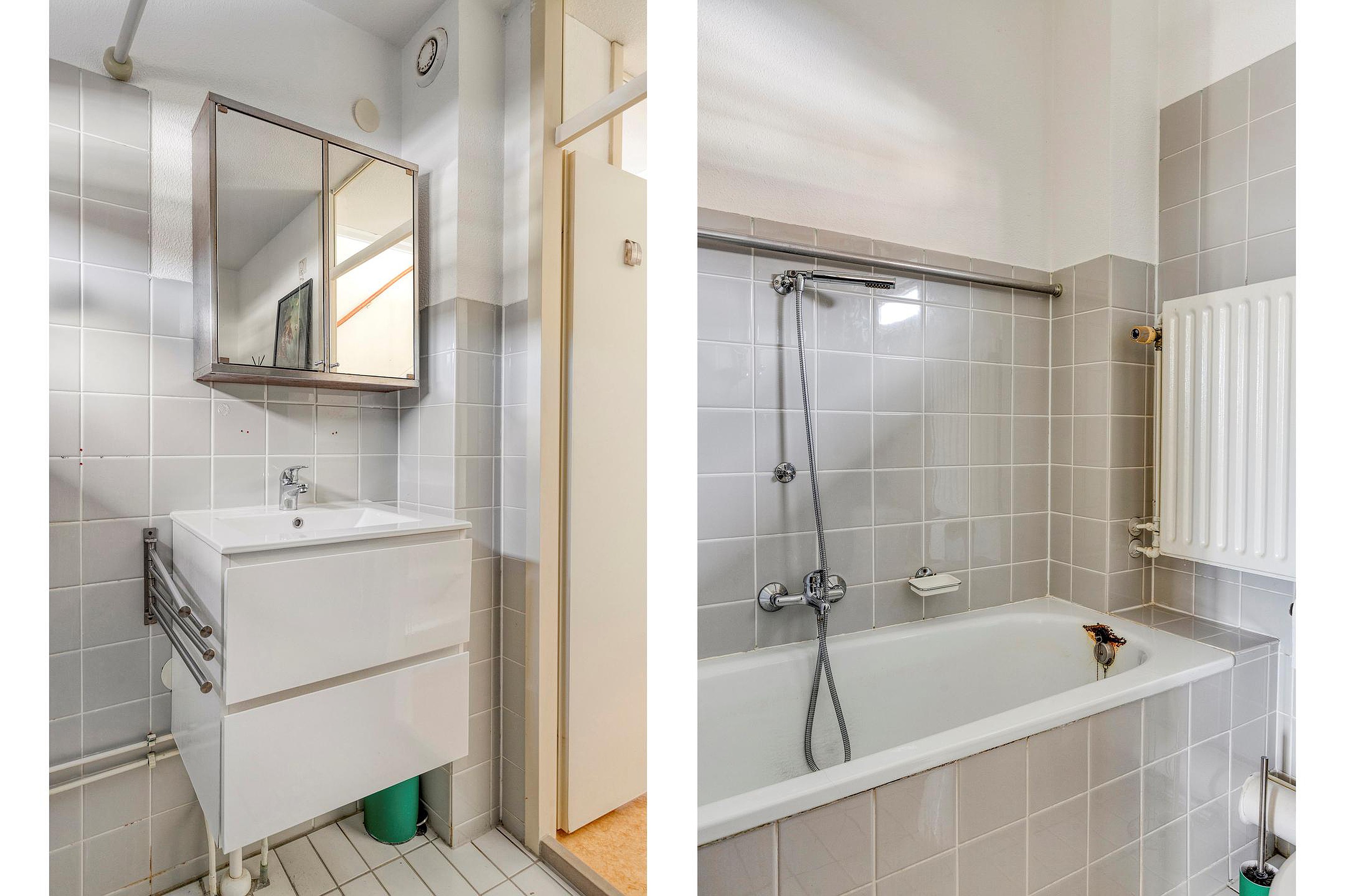 Overloop. Op deze verdieping bevinden zich drie slaapkamers waarvan de kleinste kamer ook uitermate geschikt is als hobby-/studie- of kinderkamer. De badkamer is voorzien van een wastafelmeubel, ligbad, separate doucheruimte, radiator en een 2e toilet.
