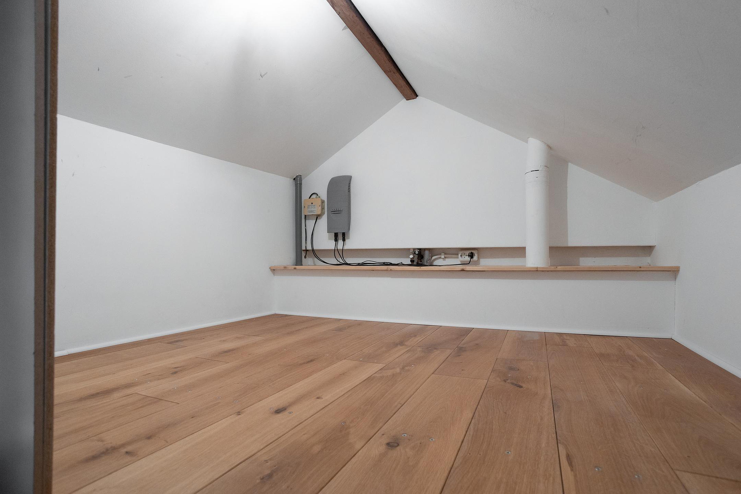 Overloop. Toegang tot de bergvliering met cv-opstelling (2000). Aan de voorzijde van deze woning vindt u een slaapkamer met dakkapel. Aan de achterzijde van de woning bevindt zich nog een slaapkamer met dakkapel. De badkamer (2015) met douche, wastafel, 2e hangend closet, inbouwverlichting en tegelvloer inclusief vloerverwarming maakt het geheel compleet.