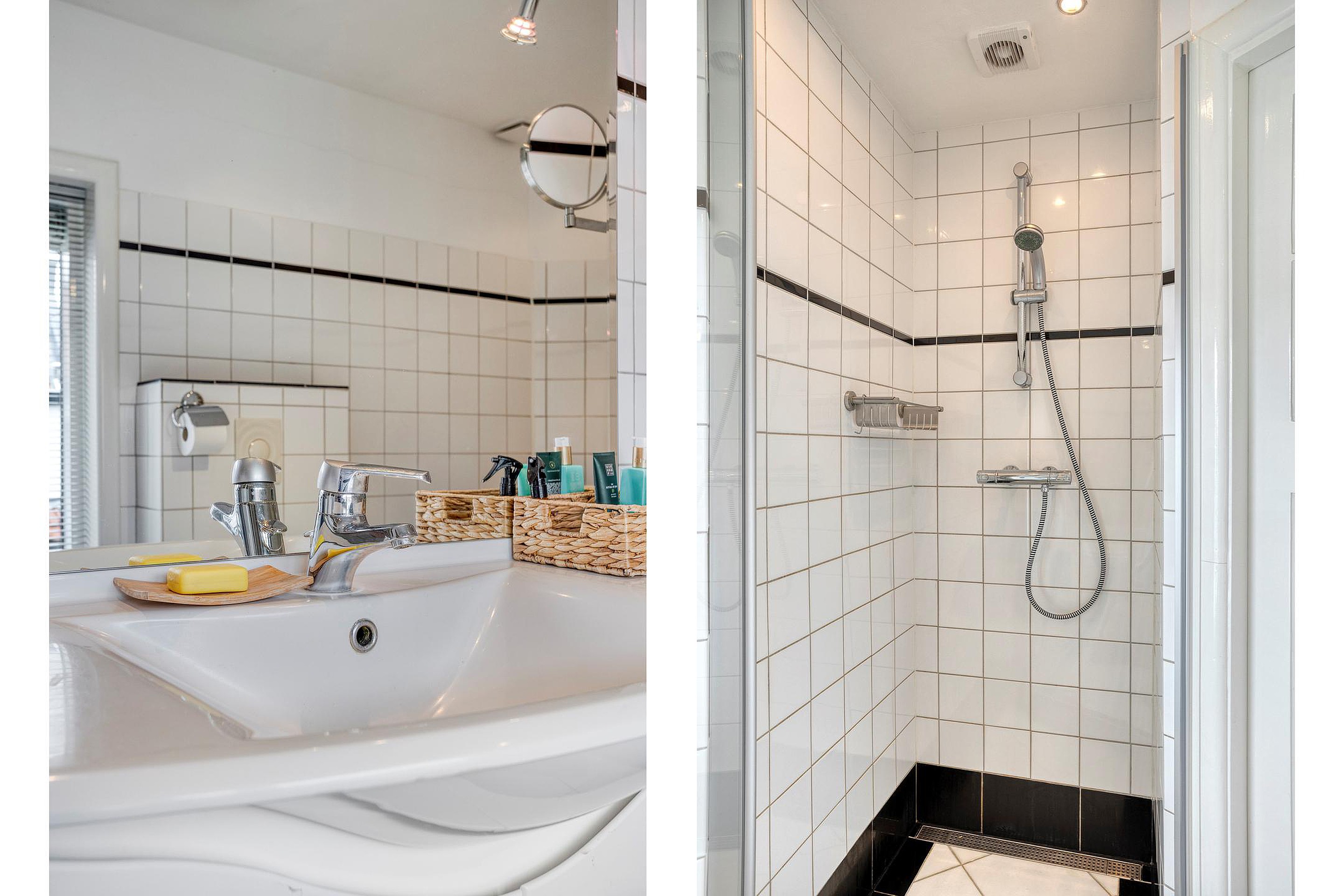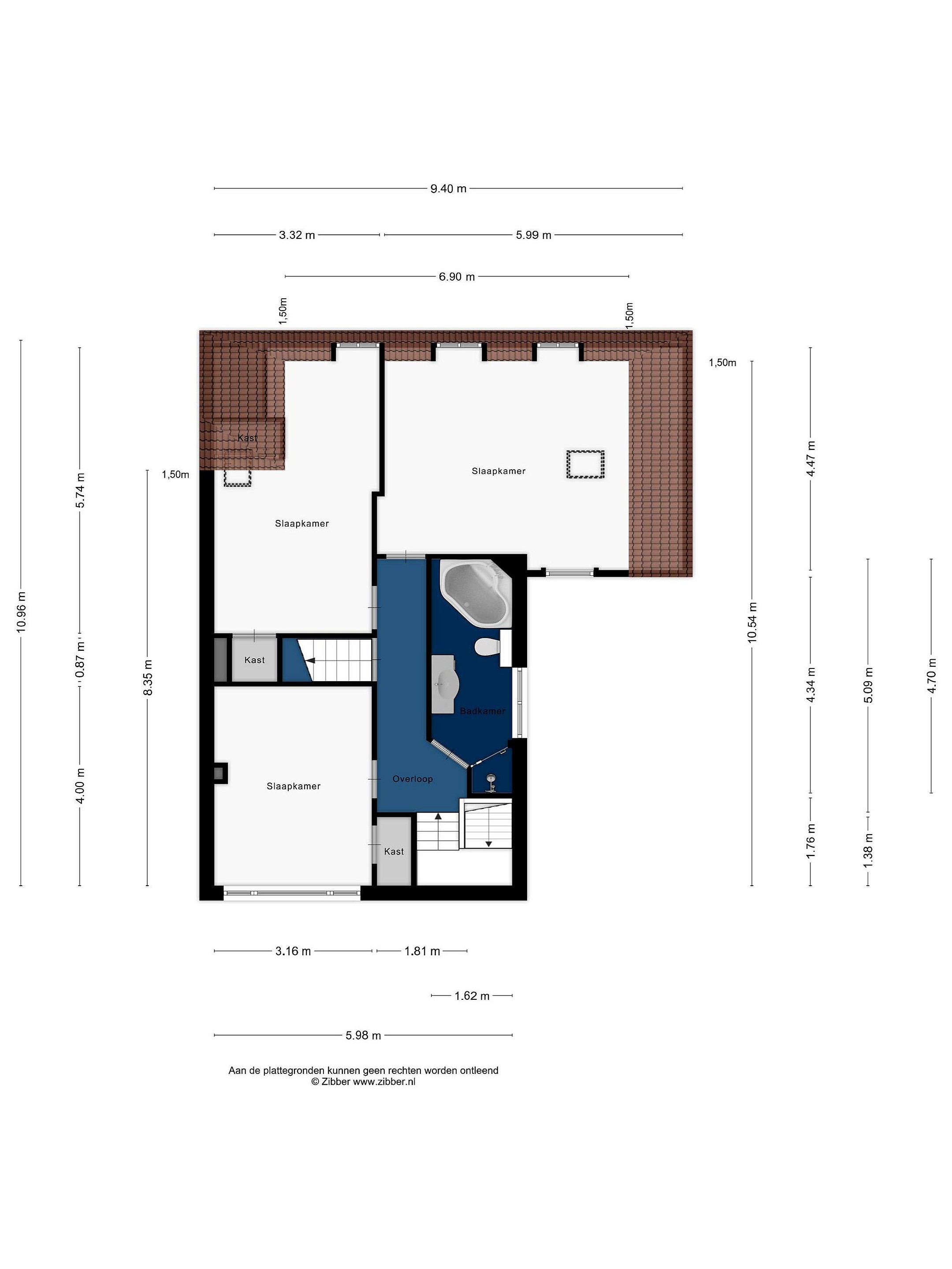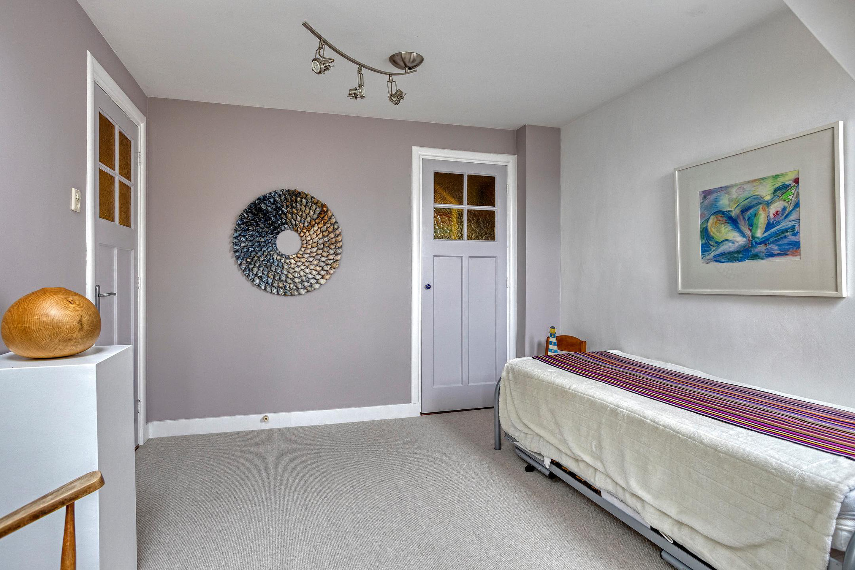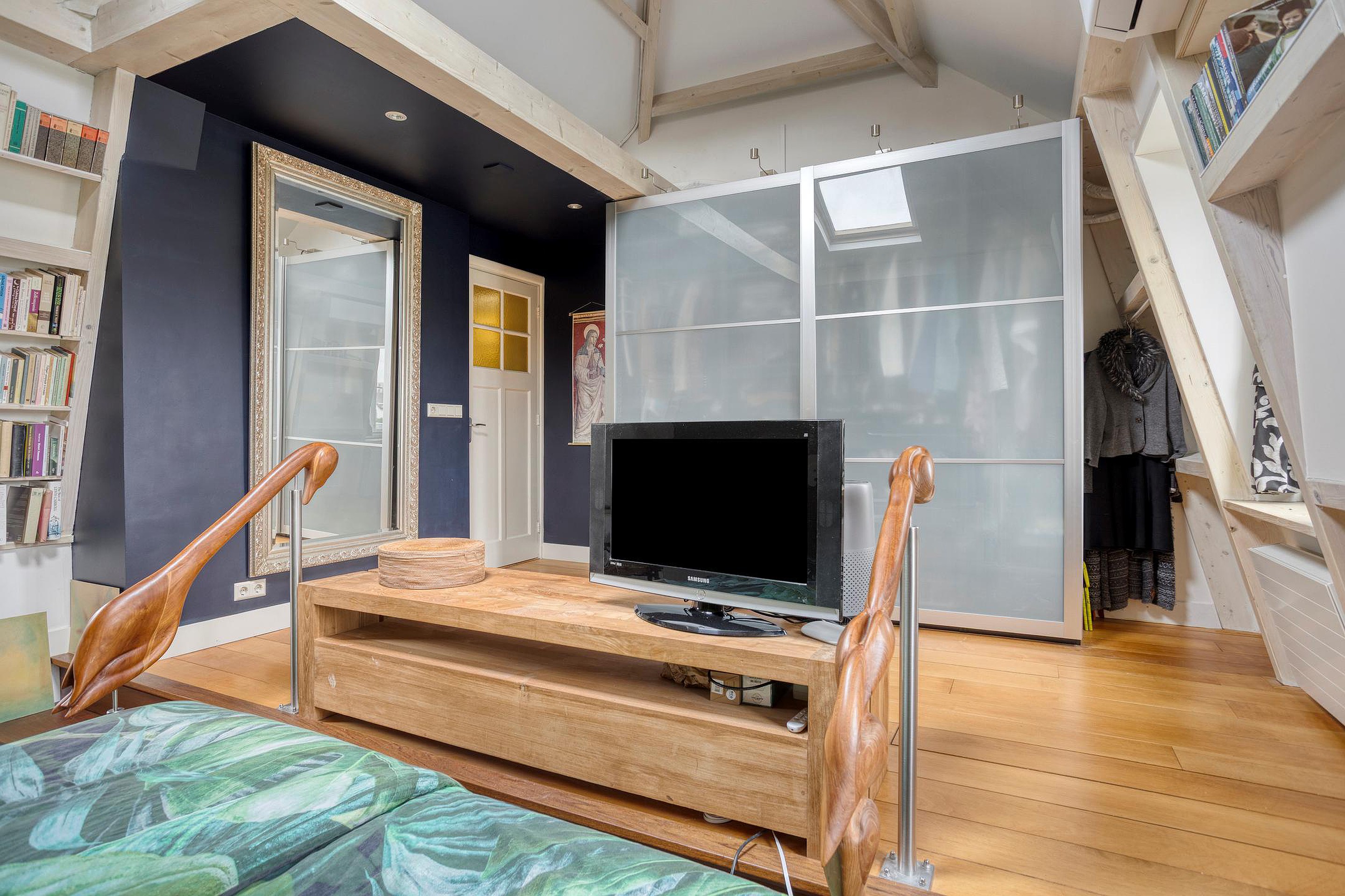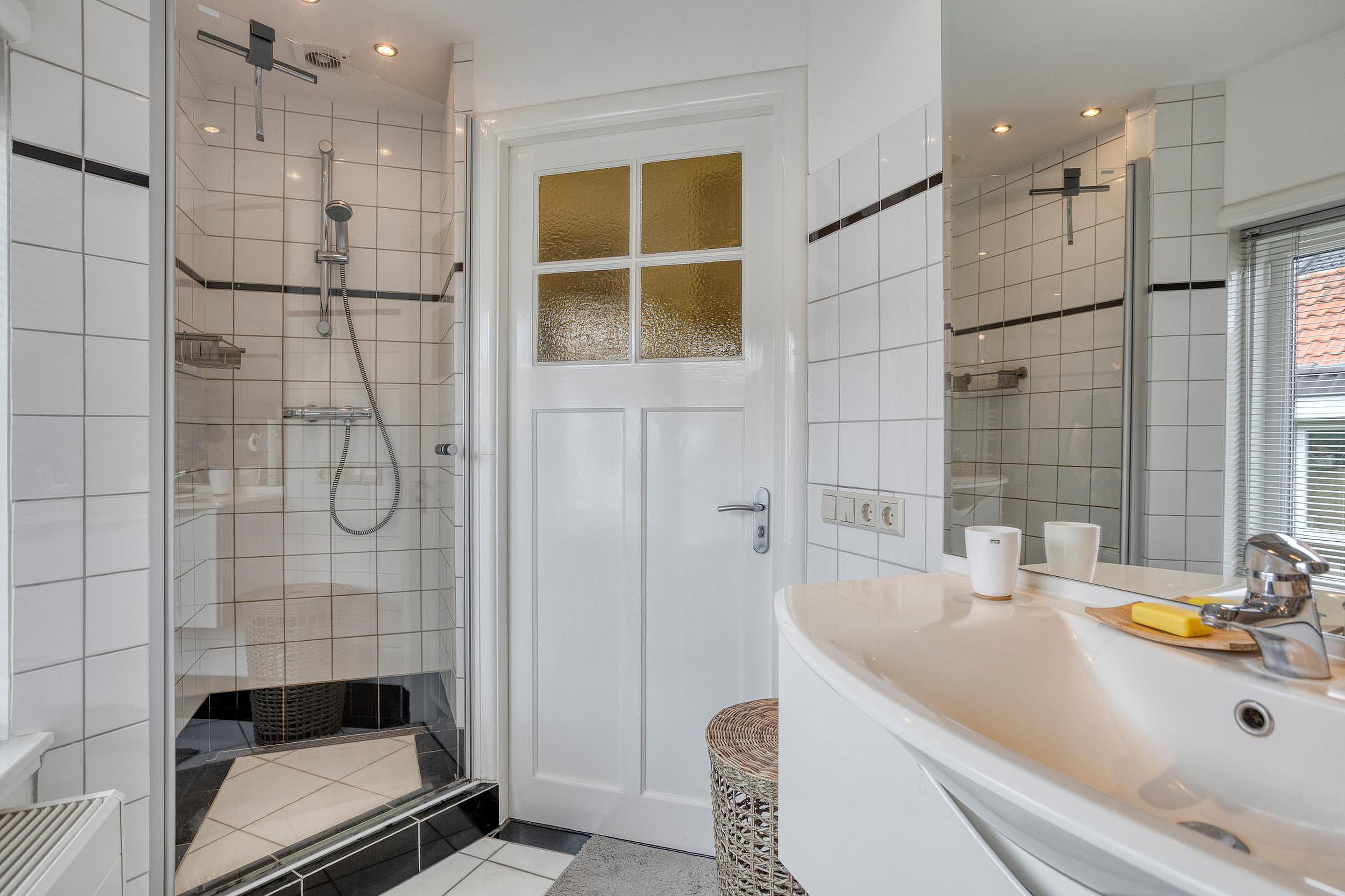 Overloop. Aan de voorzijde van de woning vindt u de ruime ouderslaapkamer met vaste kast en groen uitzicht. Aan de achterzijde van de woning bevinden zich twee sfeervolle slaapkamers met dakramen en uitzicht op de Oude Rijn. De badkamer beschikt over een douche, ligbad, wastafelmeubel, 2e hangend closet en een infra rood paneel aan het plafond.