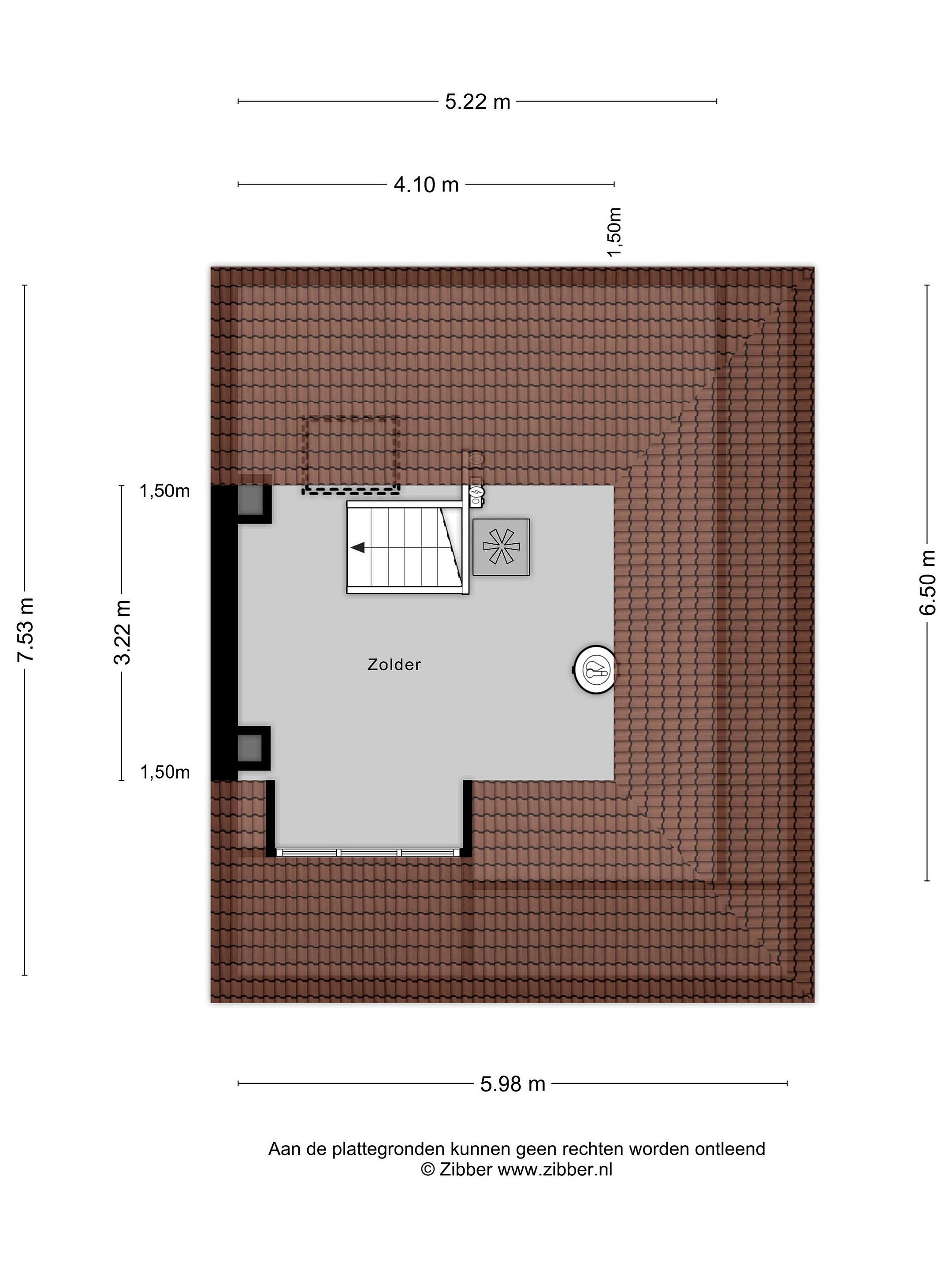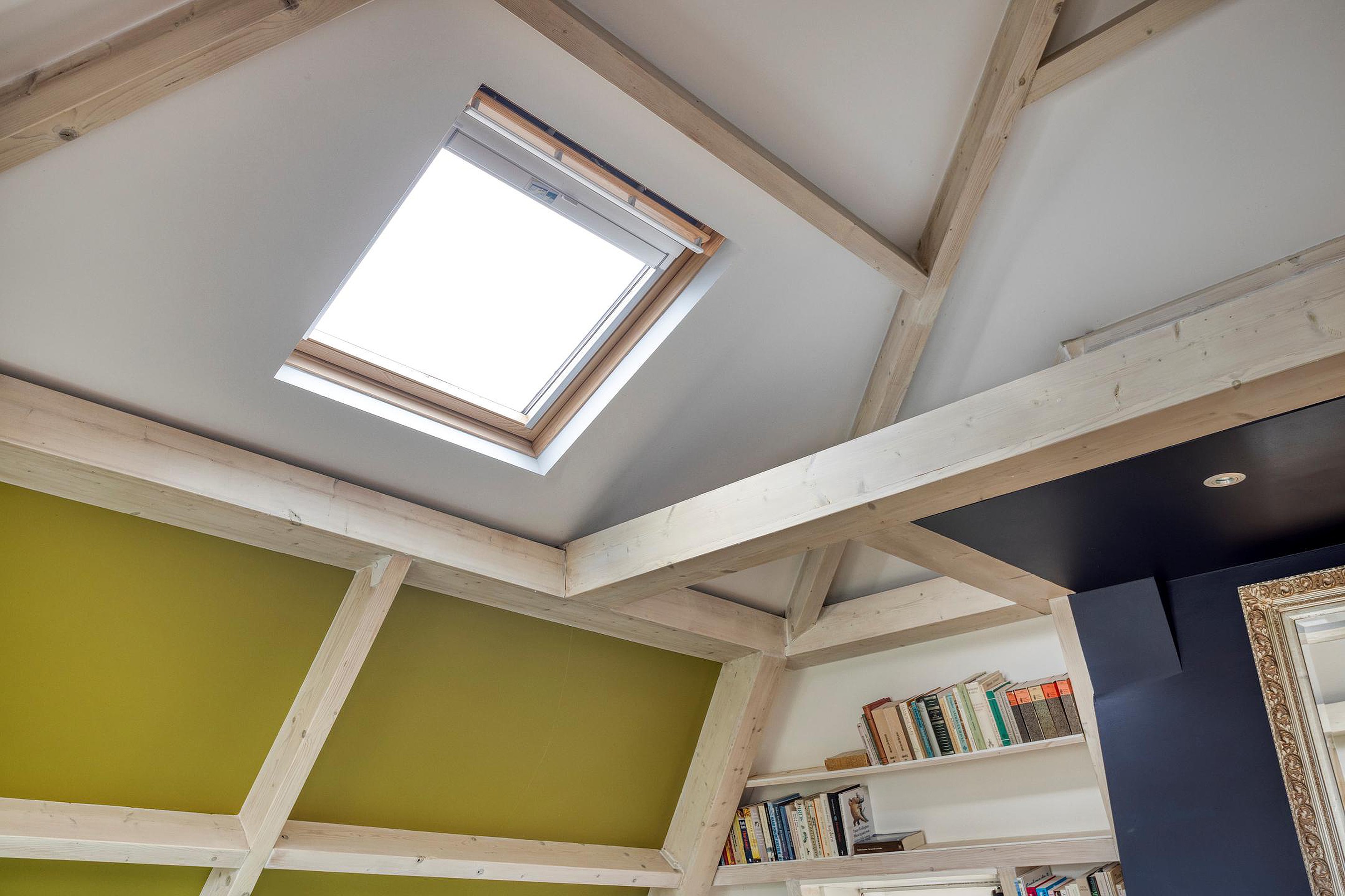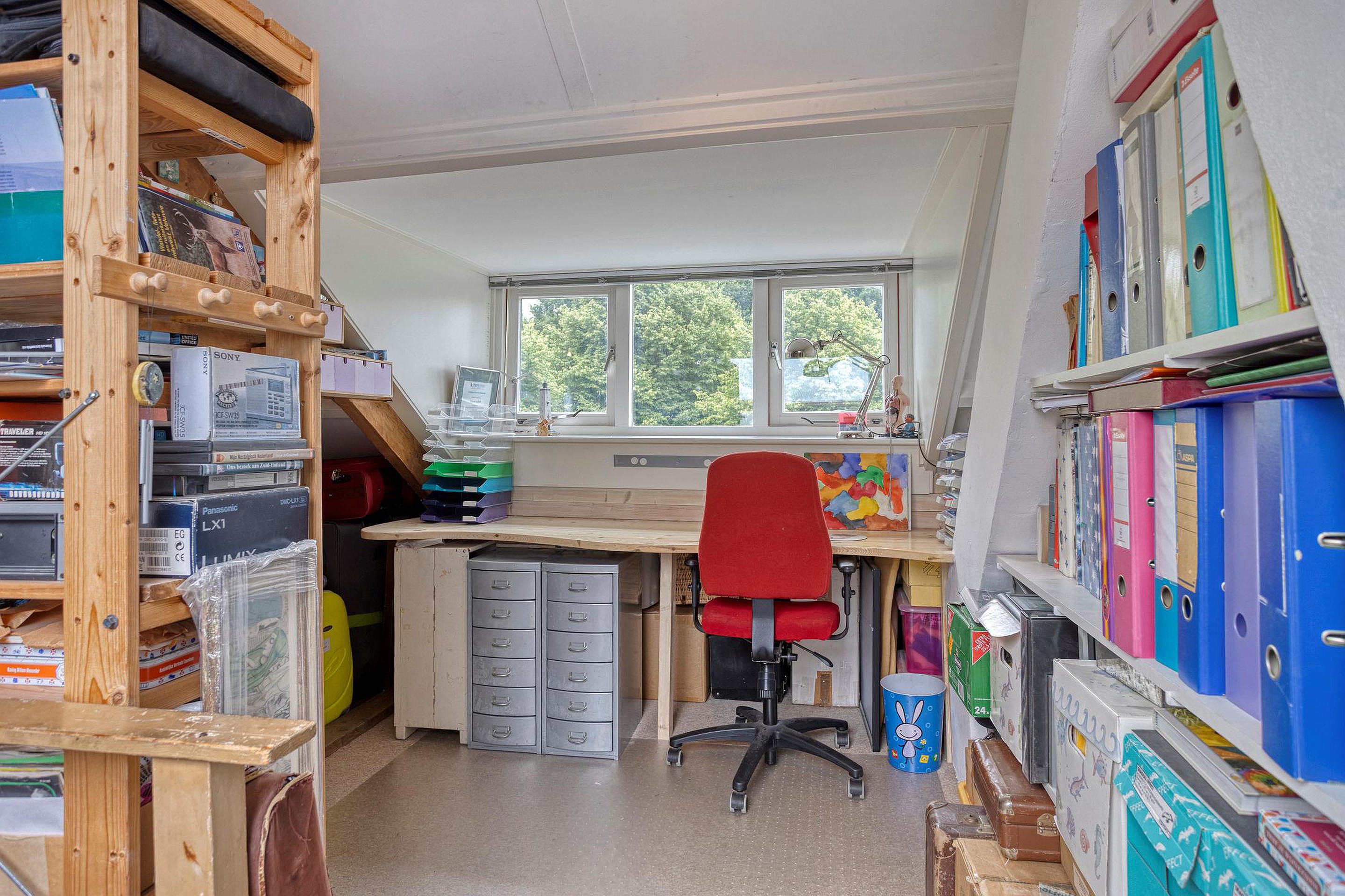 Zolderverdieping met dakkapel, dakraam en opstelplaats voor de boiler (180 L./2023) en lucht/water-warmtepompinstallatie (2023).