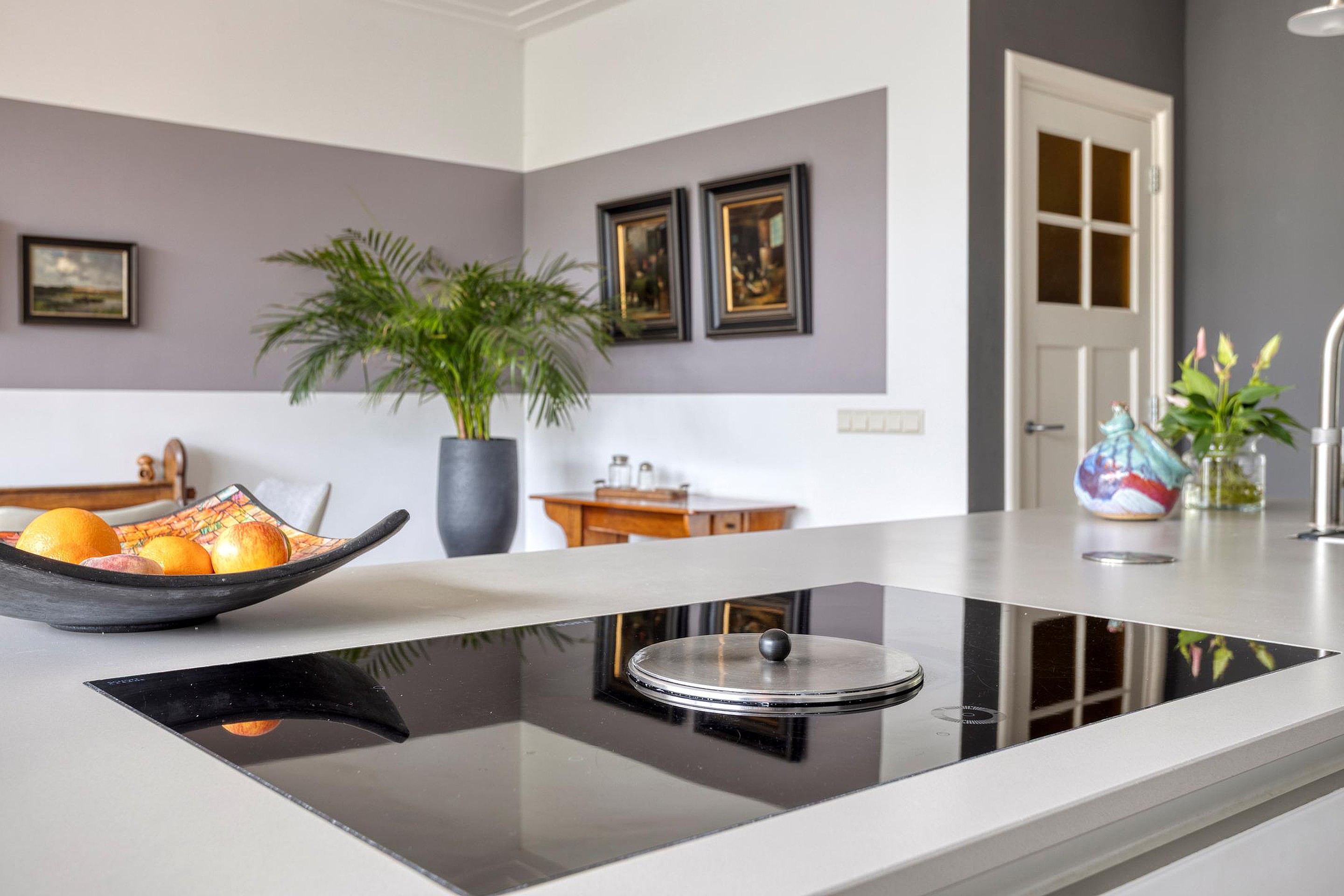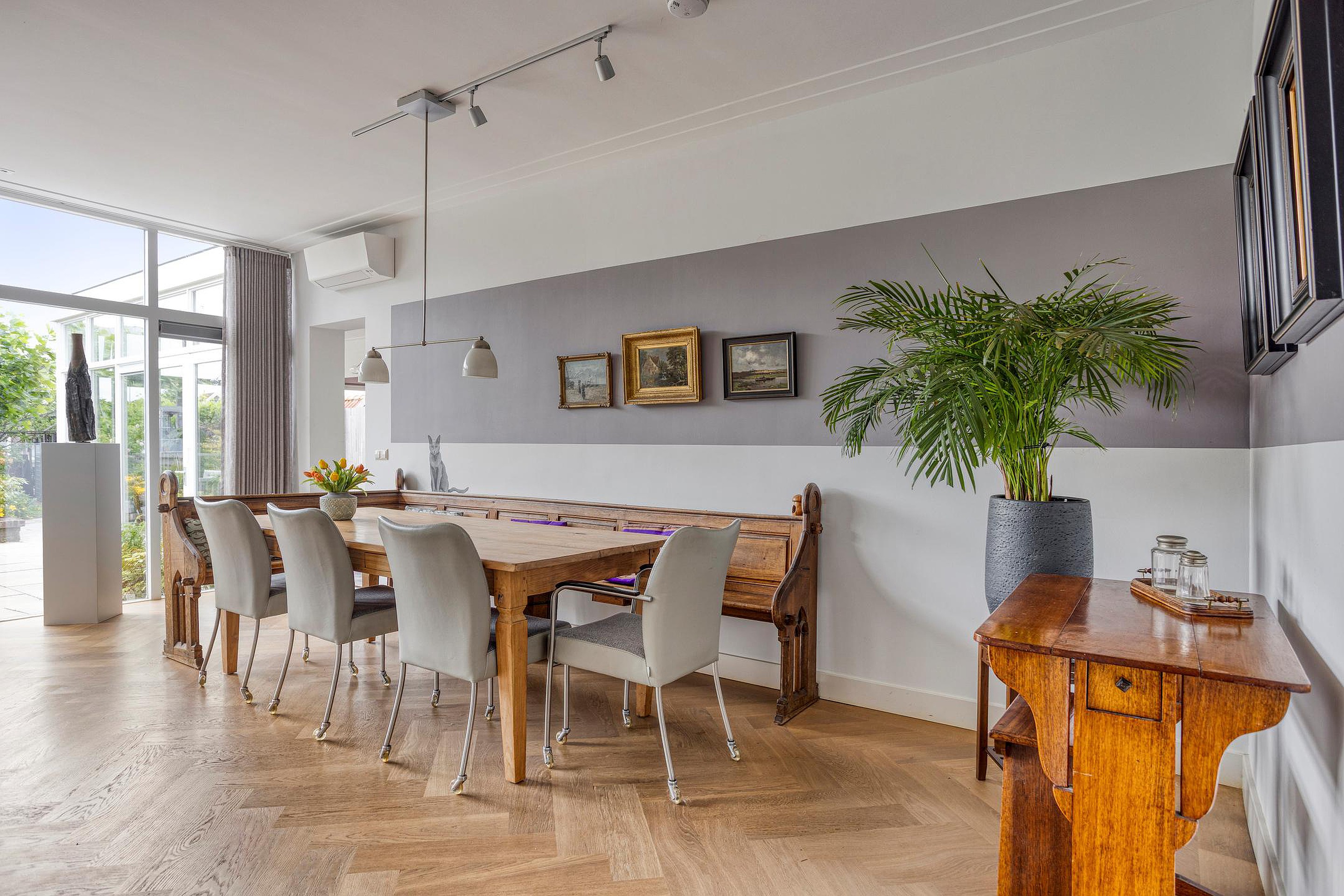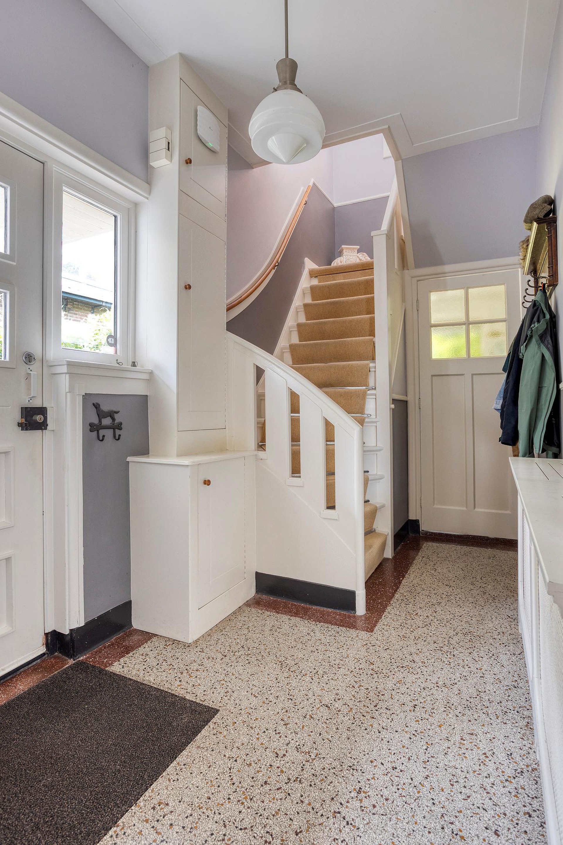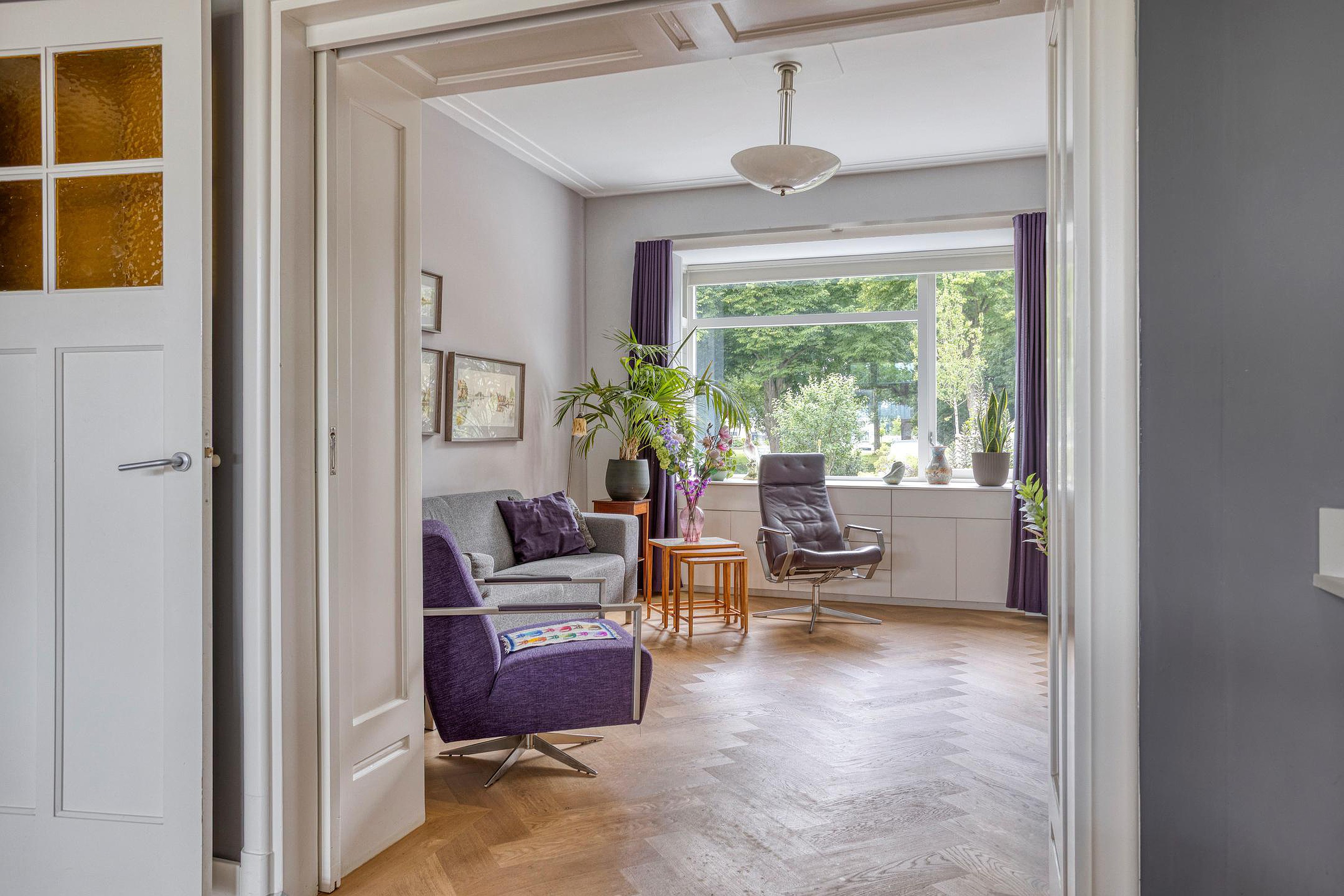 Begane grond Ruime voortuin. Parkeren op eigen terrein inclusief oplaadpunt voor elektrische auto's (ter overname). Aangebouwde stenen garage met dubbele openslaande deuren. Aan de zijkant van de woning bevindt zich de entree. Entree woning, hal, meterkast, toiletruimte, separate wasruimte en de trapopgang naar de eerste verdieping. Leuke (originele) details zoals de granito vloer in de entreehal, paneeldeuren en glas-in-loodramen. Woonkamer ensuite met erker, vaste kasten en voorzien van airconditioning. Vanuit de woonkamer heeft u uitzicht op groen. Door de open haard geniet u het gehele jaar door van een sfeervol vuurtje. De woonkamer en de royale uitgebouwde leefkeuken worden gescheiden door middel van schuifdeuren (schuifseparatie). Er is genoeg ruimte voor een grote eettafel in deze fijne ruimte. De grote raampartij zorgt voor veel daglicht en aantrekkelijk uitzicht. Fijne plek in huis wanneer u vrienden of familie hebt uitgenodigd voor een diner. De luxe keuken (2017) zal het hart van de echte keukenprins(es) zeker sneller doen kloppen! Kookeiland met inductiekookplaat inclusief geïntegreerde afzuiging (Bora) en Quooker. De apparatenkast met koel/vriescombinatie, combi stoomoven (Neff), combi oven inclusief warmtelade en vaatwasser maakt het geheel compleet. De woonkamer en leefkeuken zijn afgewerkt met een in visgraat patroon gelegde eikenhouten vloer. De in 2011 aangebouwde tuinkamer is afgewerkt met een tegelvloer en uitermate geschikt is als thuiswerkplek/kantoor en/of hobbyruimte. Door grote raampartij is deze ruimte opvallend licht en geniet u van optimaal zicht op de achtertuin. Ook vanuit de tuinkamer is de garage bereikbaar. De woonkamer, leefkeuken en tuinkamer zijn voorzien van vloerverwarming. Tuin en water(sport)liefhebbers opgelet! De opvallend diepe en zonnige achtertuin met buitendouche (warm water d.m.v. een boiler), houten berging en volière (kippenhok) is gelegen aan het water (Oude Rijn) en biedt u de mogelijkheid om met uw boot aan te meren (ligplaatsvergunning vereist). Door z'n ruime afmeting en ligging van de tuin kunt u de hele dag van de zon genieten. Beeld u eens in… Het is zomer. U komt thuis. Even bijkomen, genieten van de zon en de dag doorspreken onder het genot van een gekoeld drankje met uitzicht op o.a. voorbijkomende (plezier)vaart. Vanuit uw tuin stapt u in uw boot en vaart u bijvoorbeeld naar het bruisende centrum van Leiden, recreatiegebied Vlietland of de Kagerplassen. Onwerkelijk?