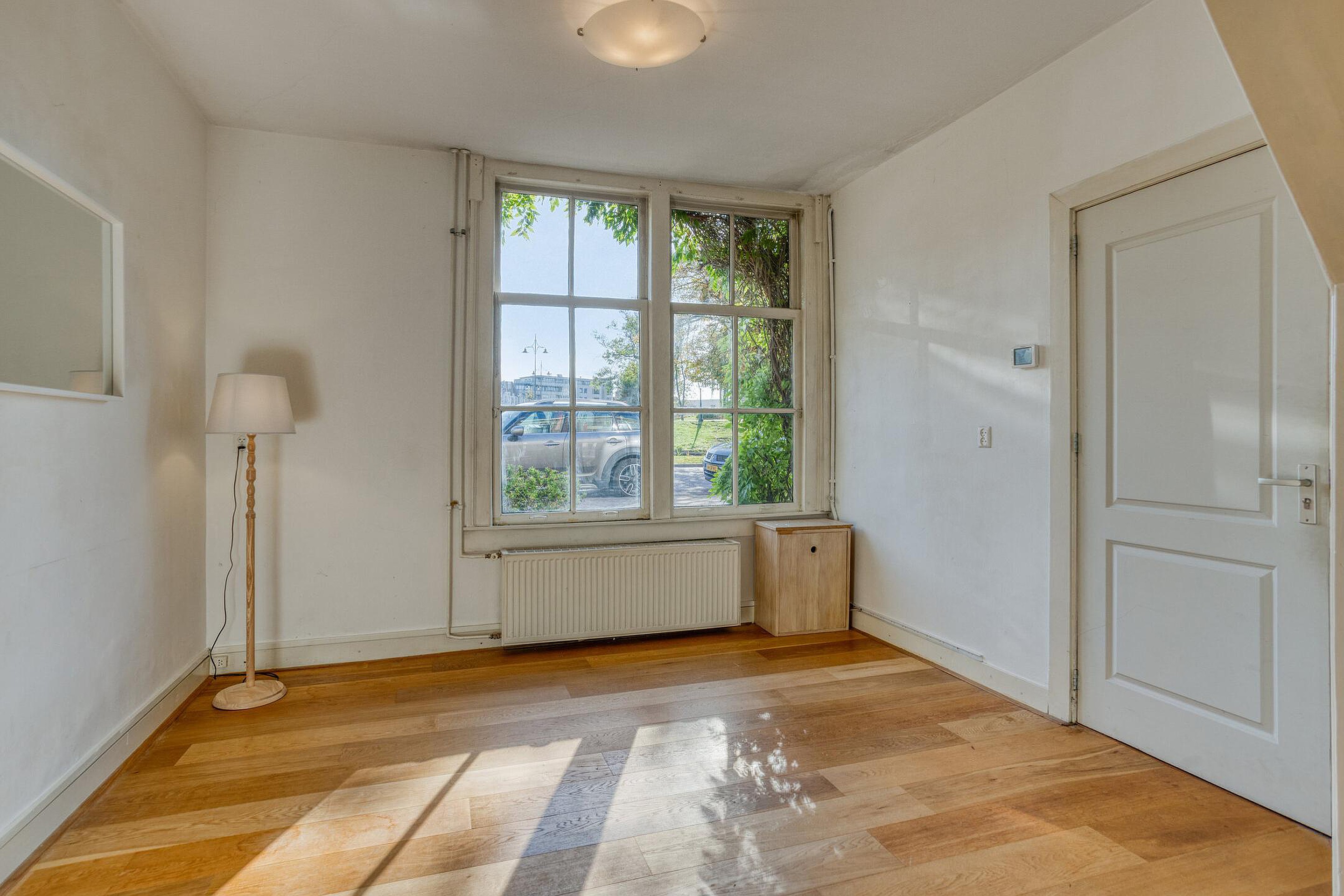Overloop met de trap naar de 2e verdieping. Aan de achterzijde van deze unieke woning bevindt zich wederom een woonkeuken voorzien van een keukenblok met design afzuigkap en (inbouw) apparatuur. Extra opbergruimte vindt u in de trapkast. Via een doorloop bereikt u de badkamer met wastafel, toilet en een radiator. Het is tevens mogelijk om hier een doucheruimte te creëren. De L-vormige kamer aan de voorzijde van de woning maakt deze woning extra bezichtigingswaardig. Wat een geweldig uitzicht op o.a. de singel en molen De Valk heeft u vanuit deze kamer! Het is zeer aannemelijk dat u deze kamer zult gaan gebruiken als woonkamer.
