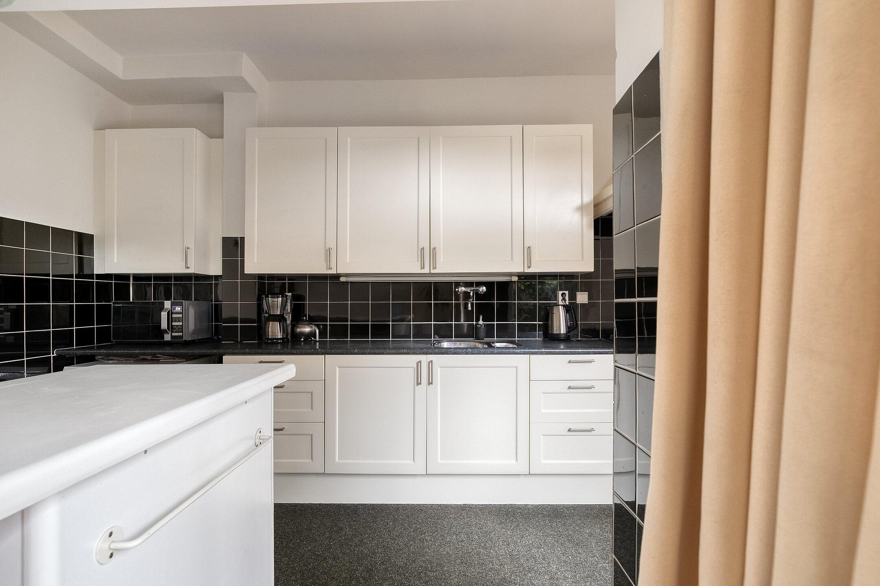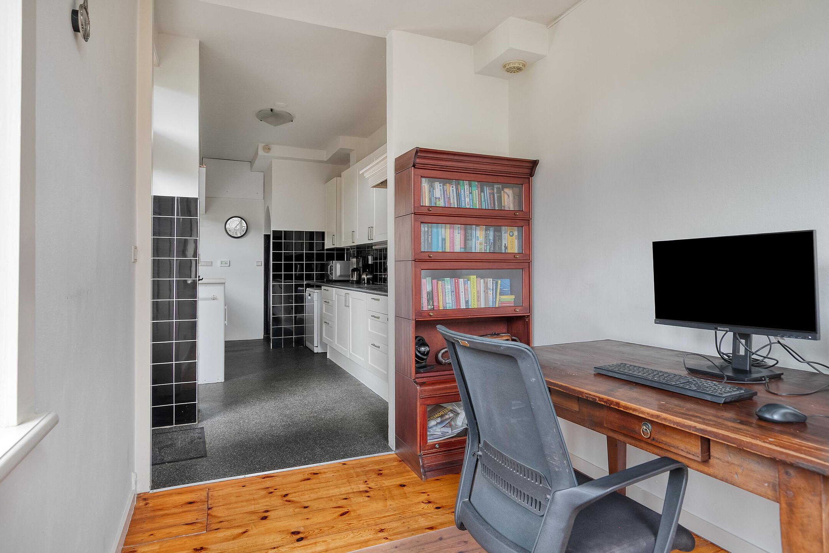 De open keuken is royaal opgezet, voorzien van diverse inbouwapparatuur en veel bergruimte. Aansluitend ligt de achtergelegen werkkamer van circa 8,5 m2: ideaal als thuiswerkplek, speelkamer, tv-kamer of juist een afgesloten keukenruimte. De keuze is aan jou.
