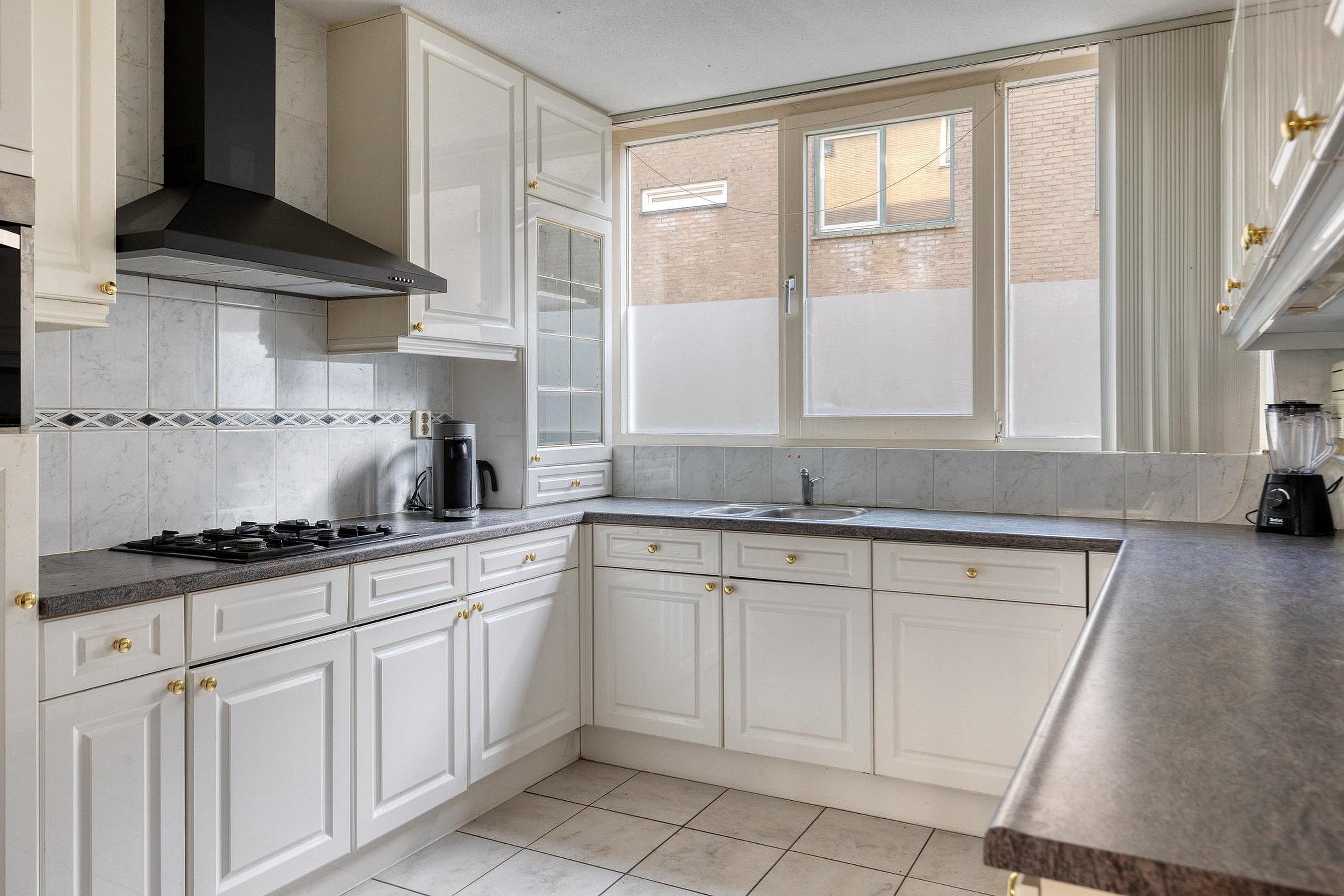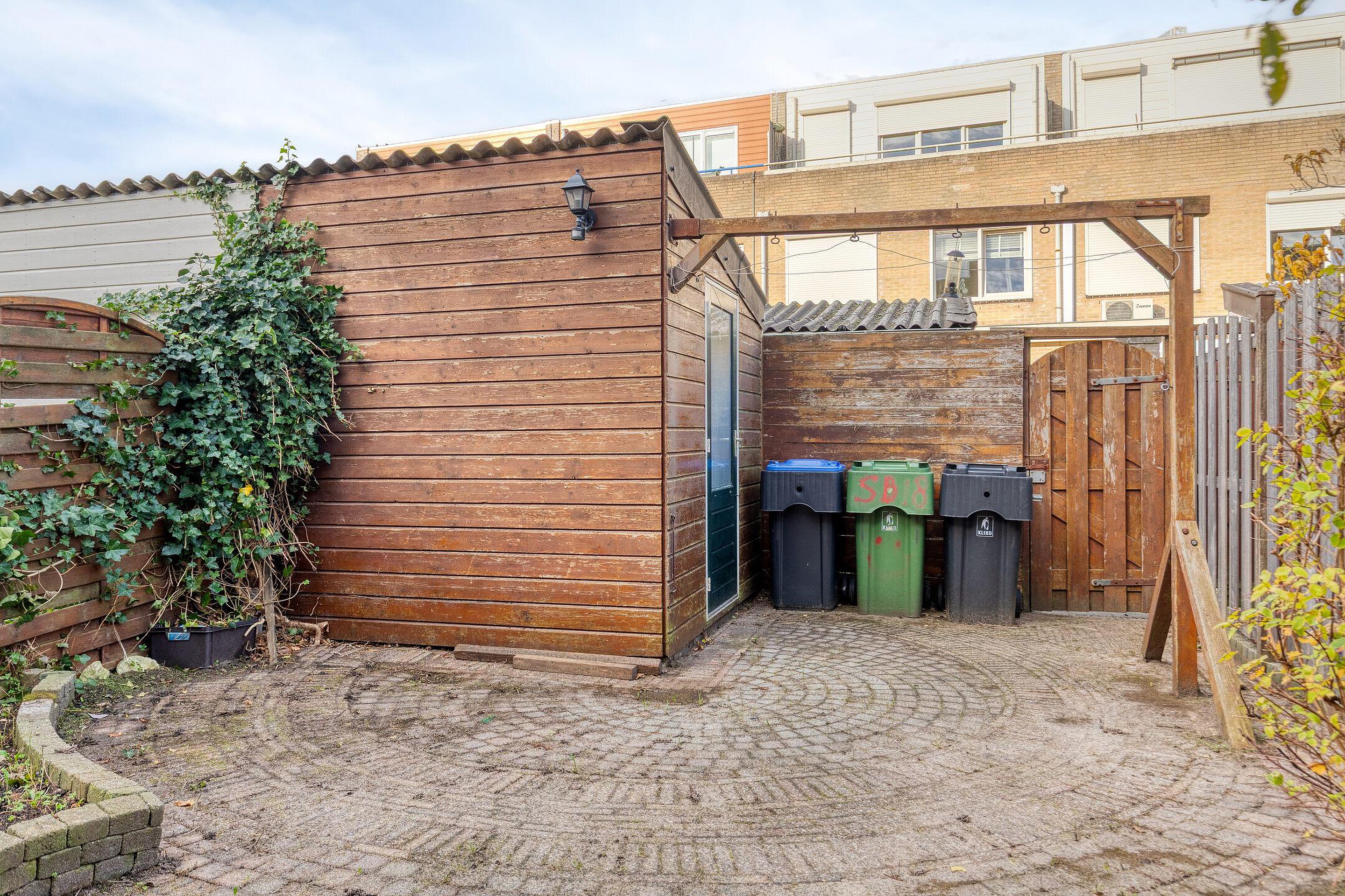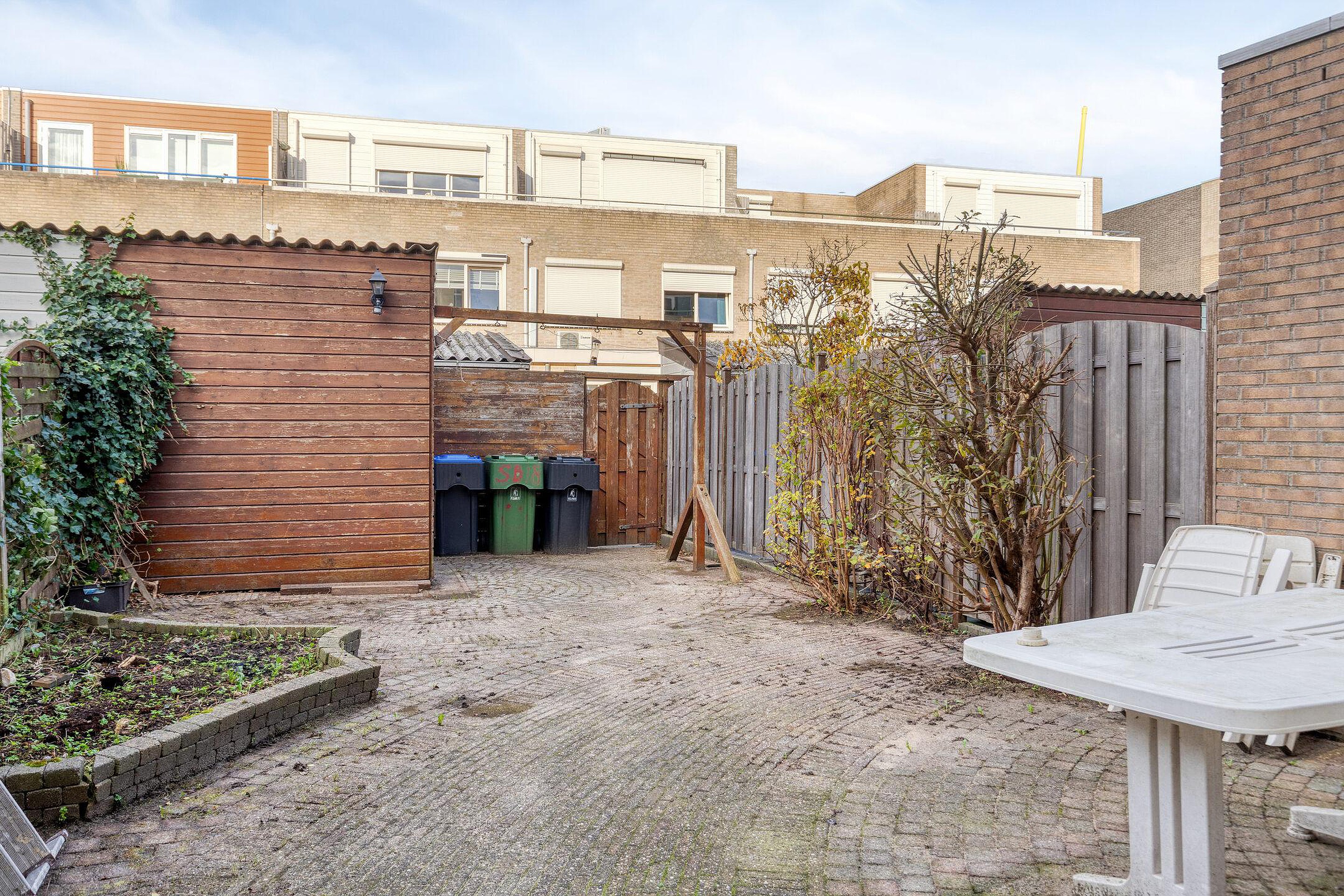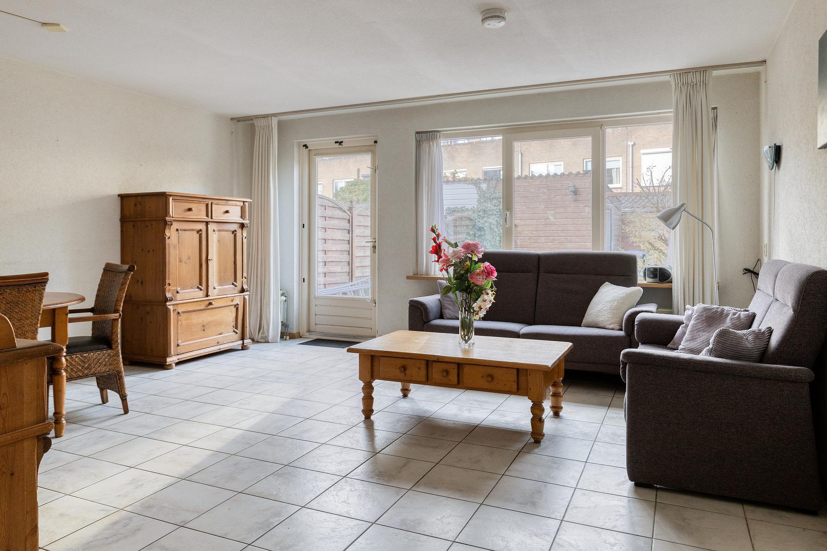 Begane grond Entree woning, hal met meterkast/stadsverwarming en een toiletruimte. Tuingerichte woonkamer. De U-vormige open keuken is gelegen aan de voorzijde van de woning en is o.a. voorzien van een 4-pitskookplaat, afzuigkap, koelkast, vriezer, combi oven en een vaatwasser. De ruime trapkast zorgt voor opbergruimte. De hal, woonkamer en keukenruimte zijn afgewerkt met een tegelvloer. Zonliefhebbers opgelet! Via de tuindeur in de woonkamer bereikt u de heerlijk zonnige achtertuin gelegen op het westen (middag-/avondzon). Deze achtertuin met zonnescherm, houten berging en achterom doet het hart van de echte tuin- en zonliefhebber zeker sneller kloppen!