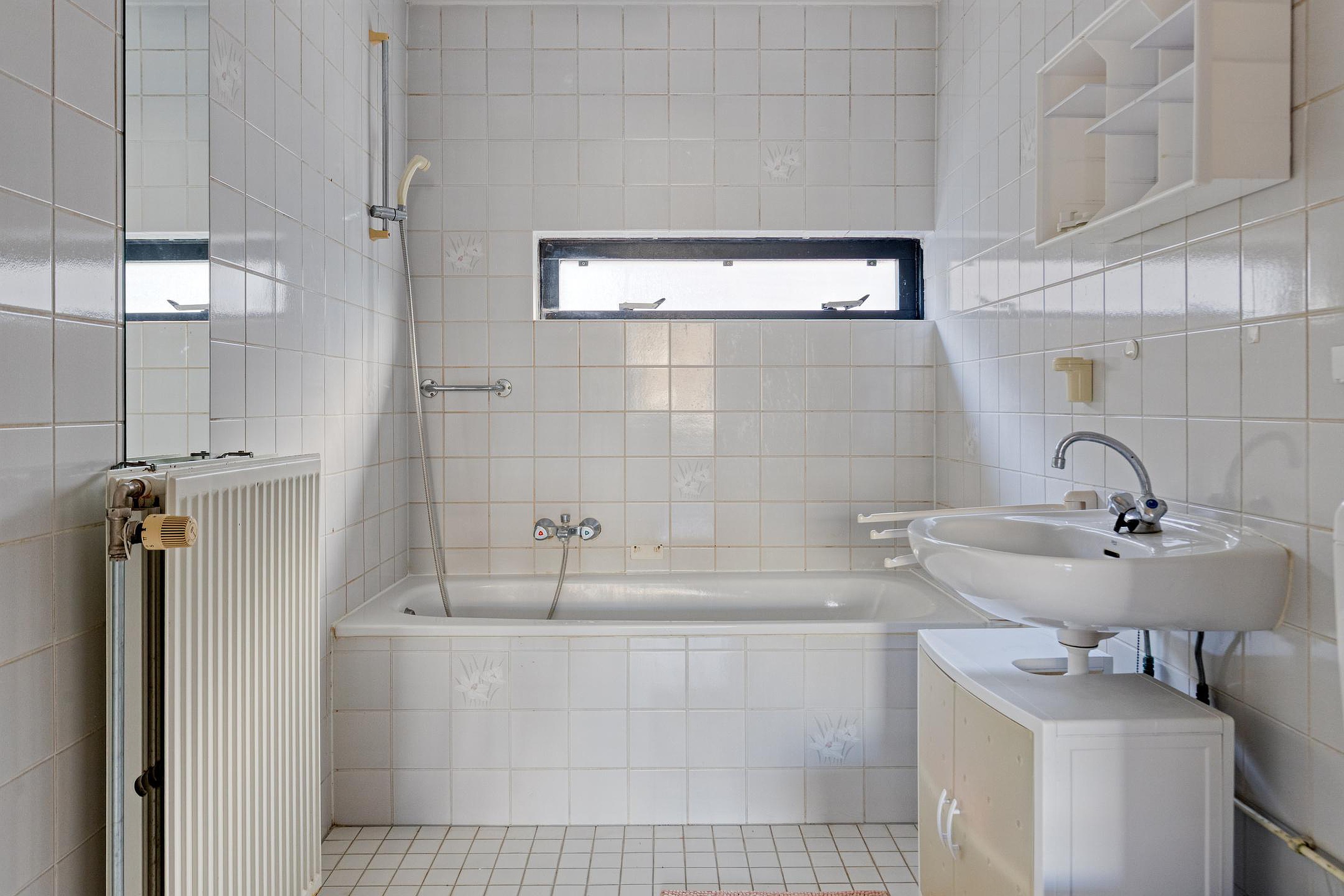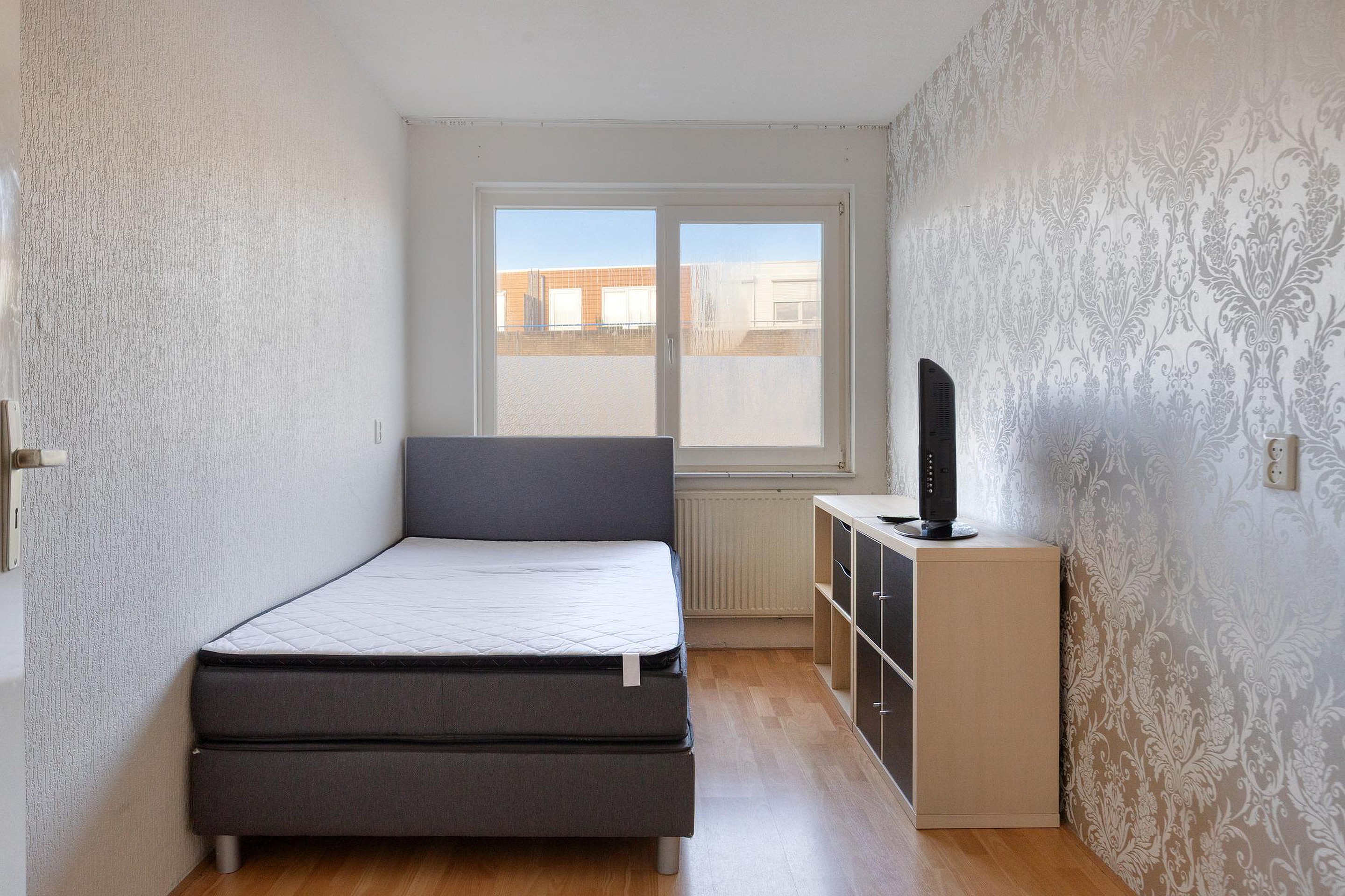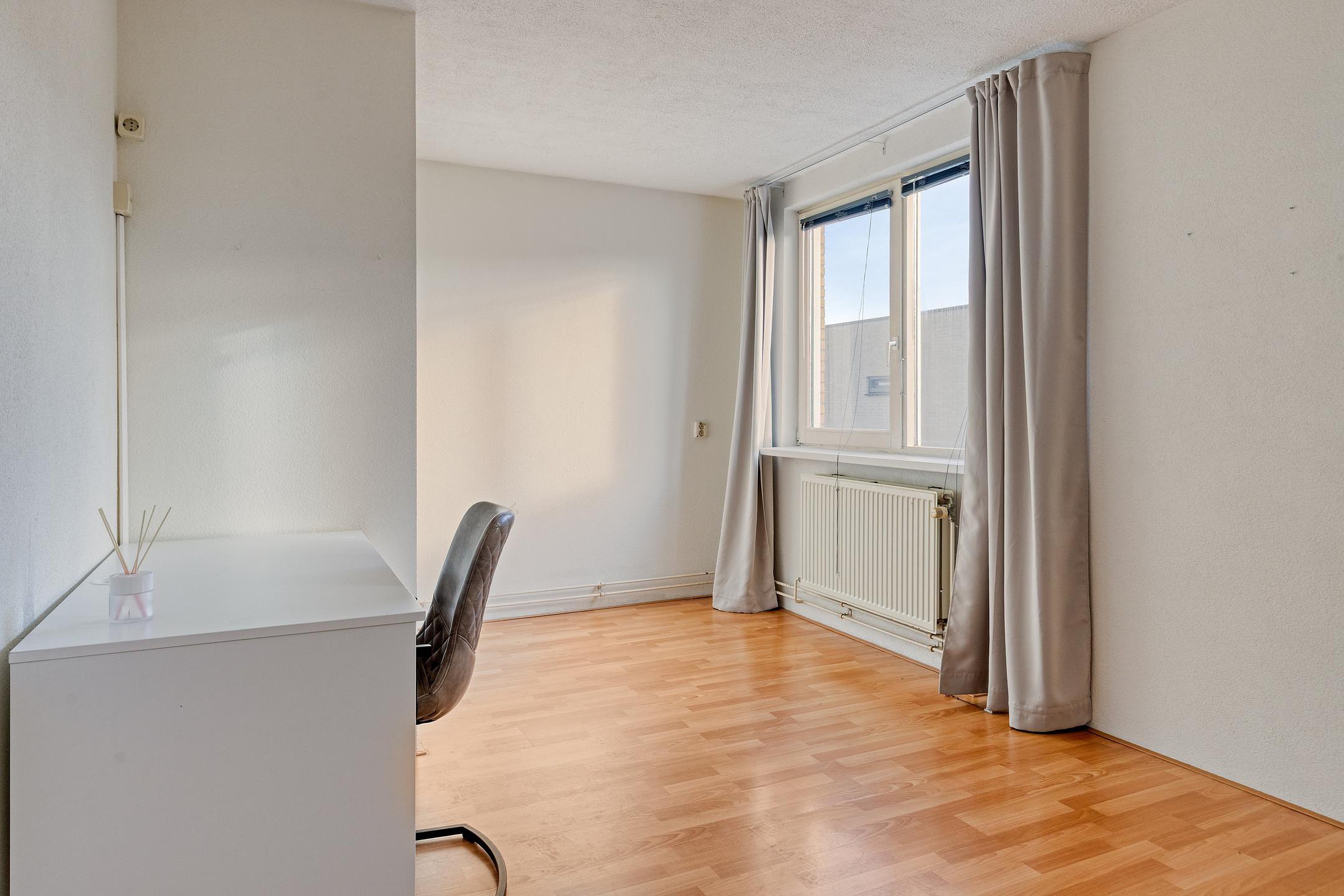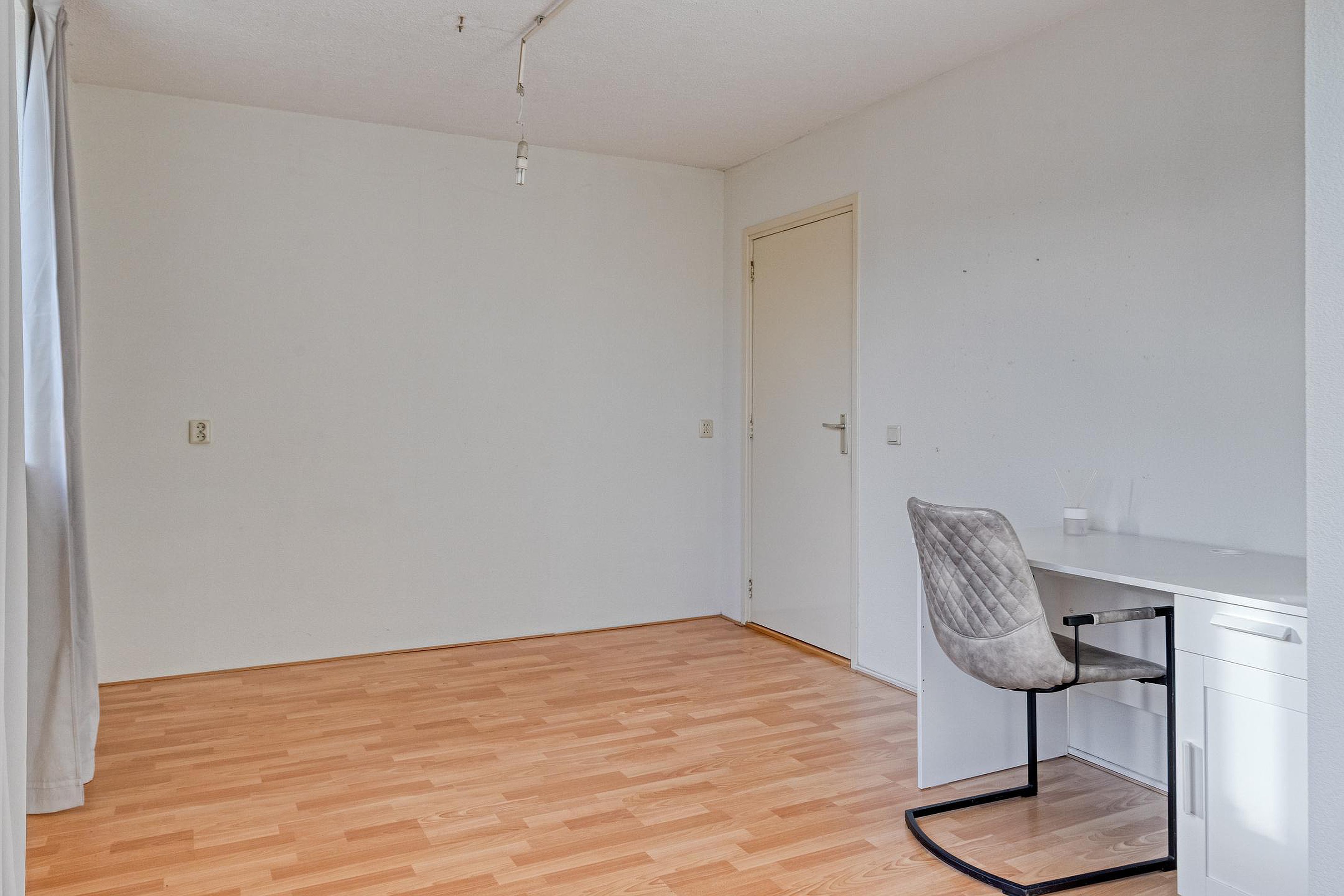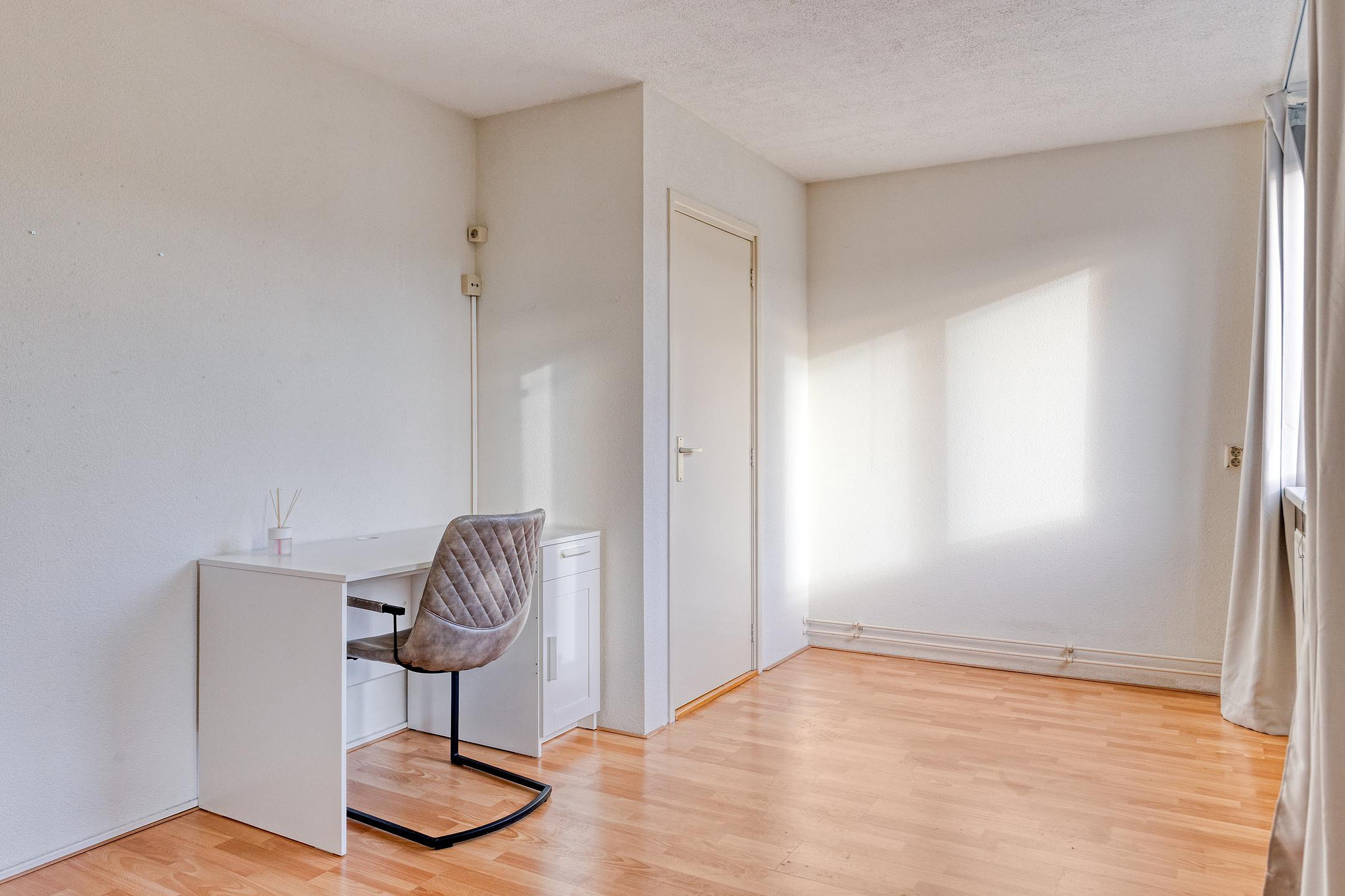 Overloop met twee vaste kasten en de trap naar de 2e verdieping. Aan de voorzijde van de woning vindt u een slaapkamer. Aan de achterzijde van de woning bevinden zich nog twee slaapkamers. De badkamer beschikt over een wastafel, ligbad/douchecombinatie en een 2e toilet.