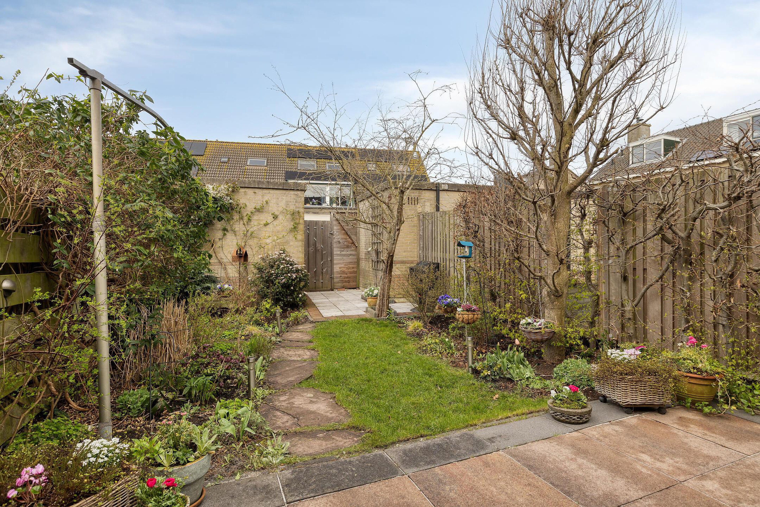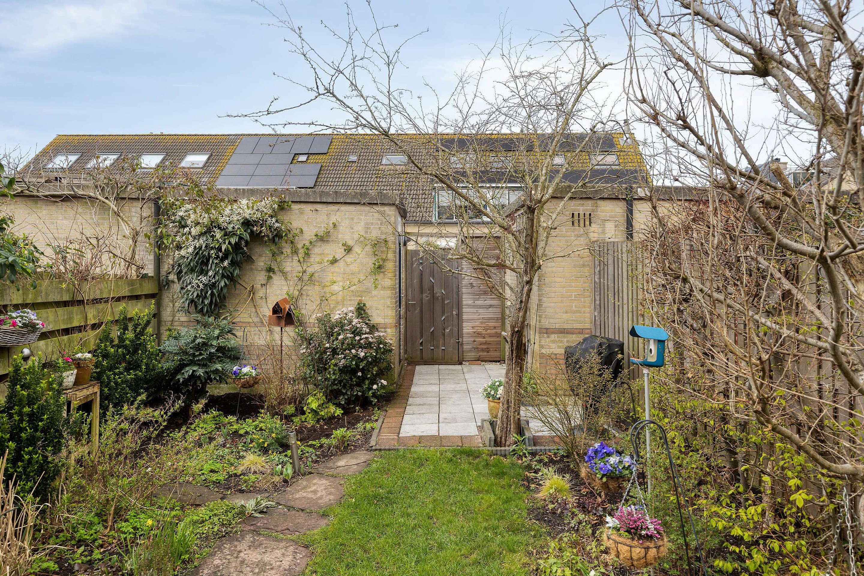 Via de schuifpui lopen we zo de achtertuin in. Deze ligt op het westen en is fraai aangelegd, waardoor je hier volop geniet van de middag- en avondzon. Met circa 65 m2 is het een royale tuin met genoeg ruimte voor meerdere zitplekken. Achterin staat de stenen berging met elektra, ideaal voor fietsen, gereedschap of hobbyspullen. We gaan door naar boven.