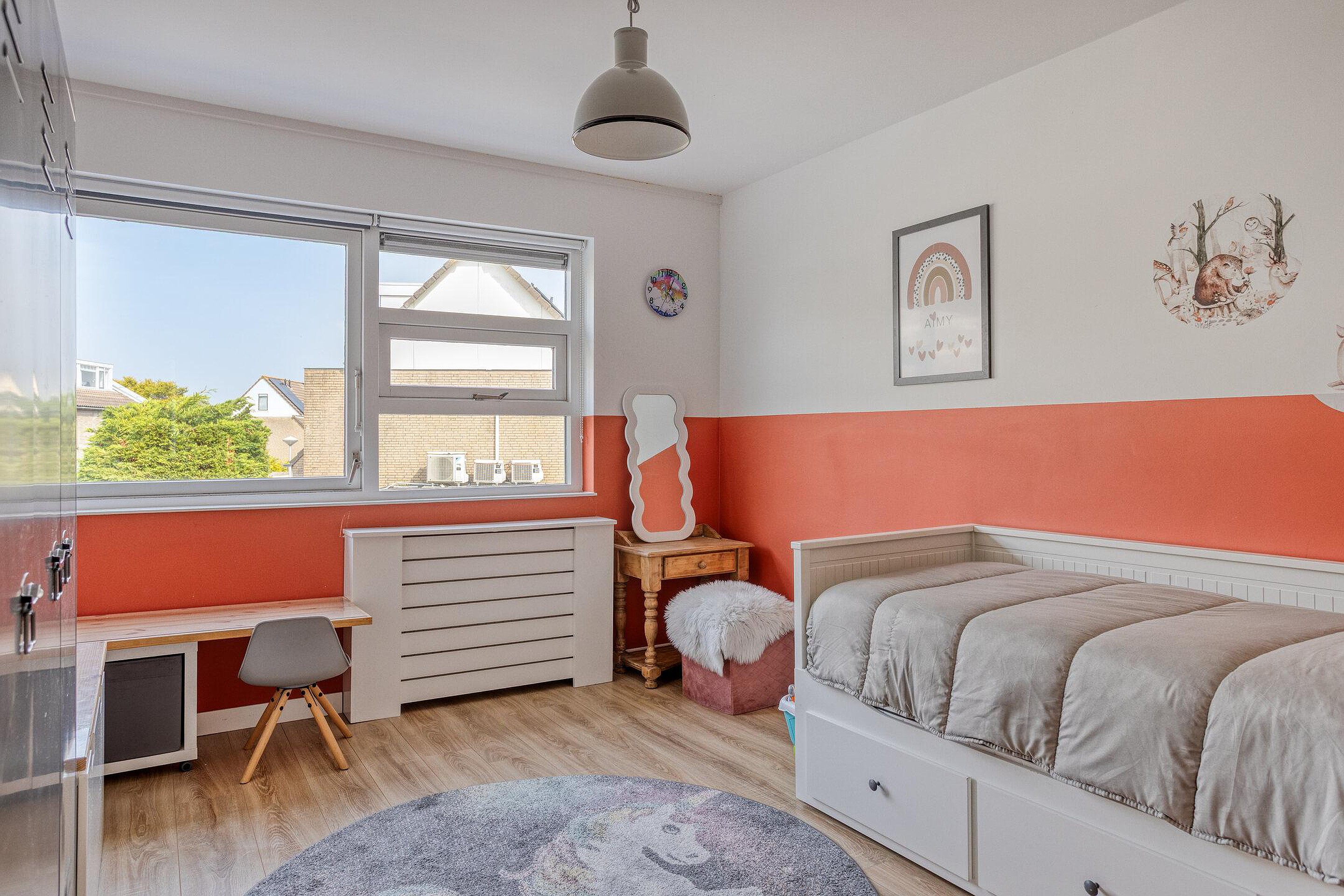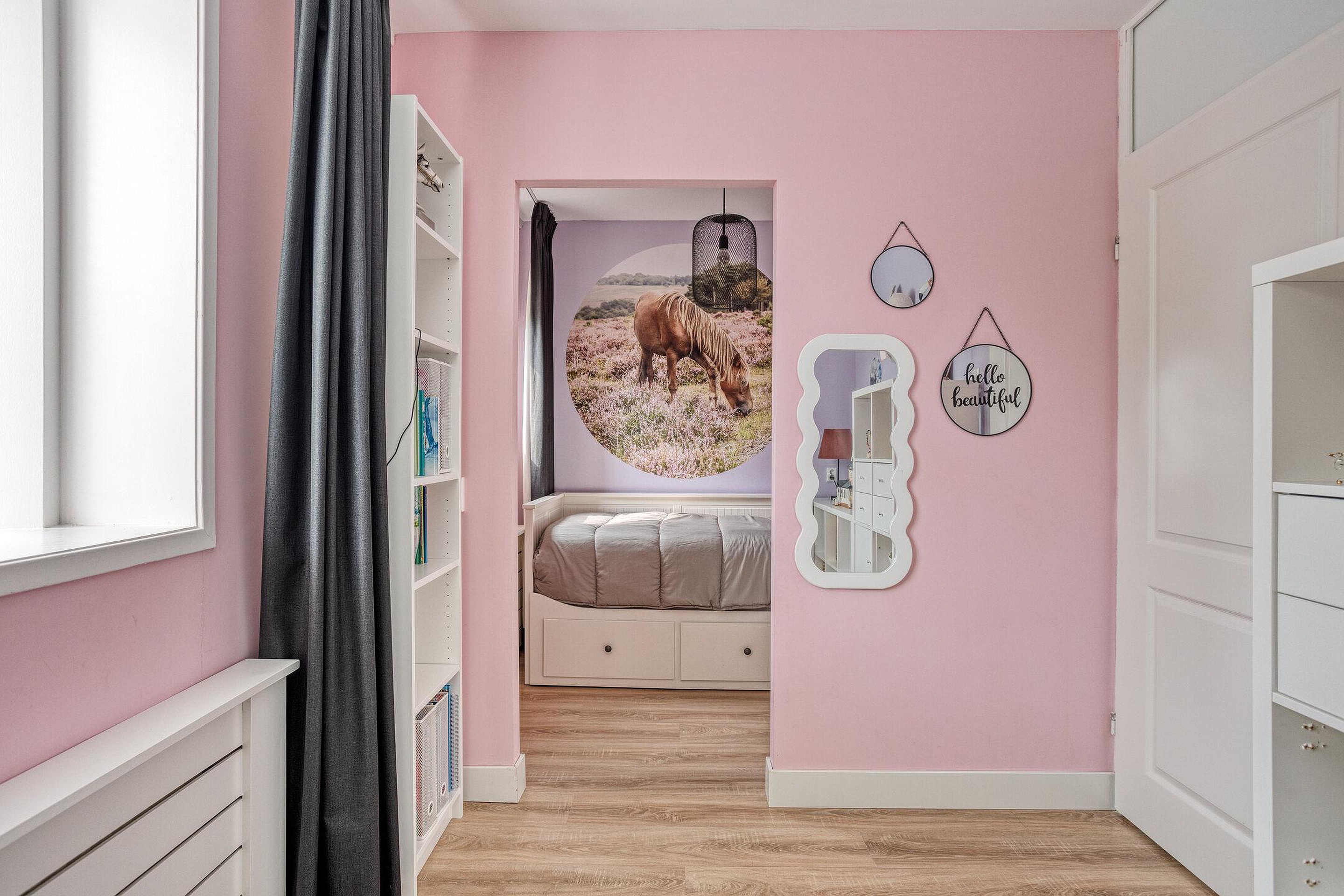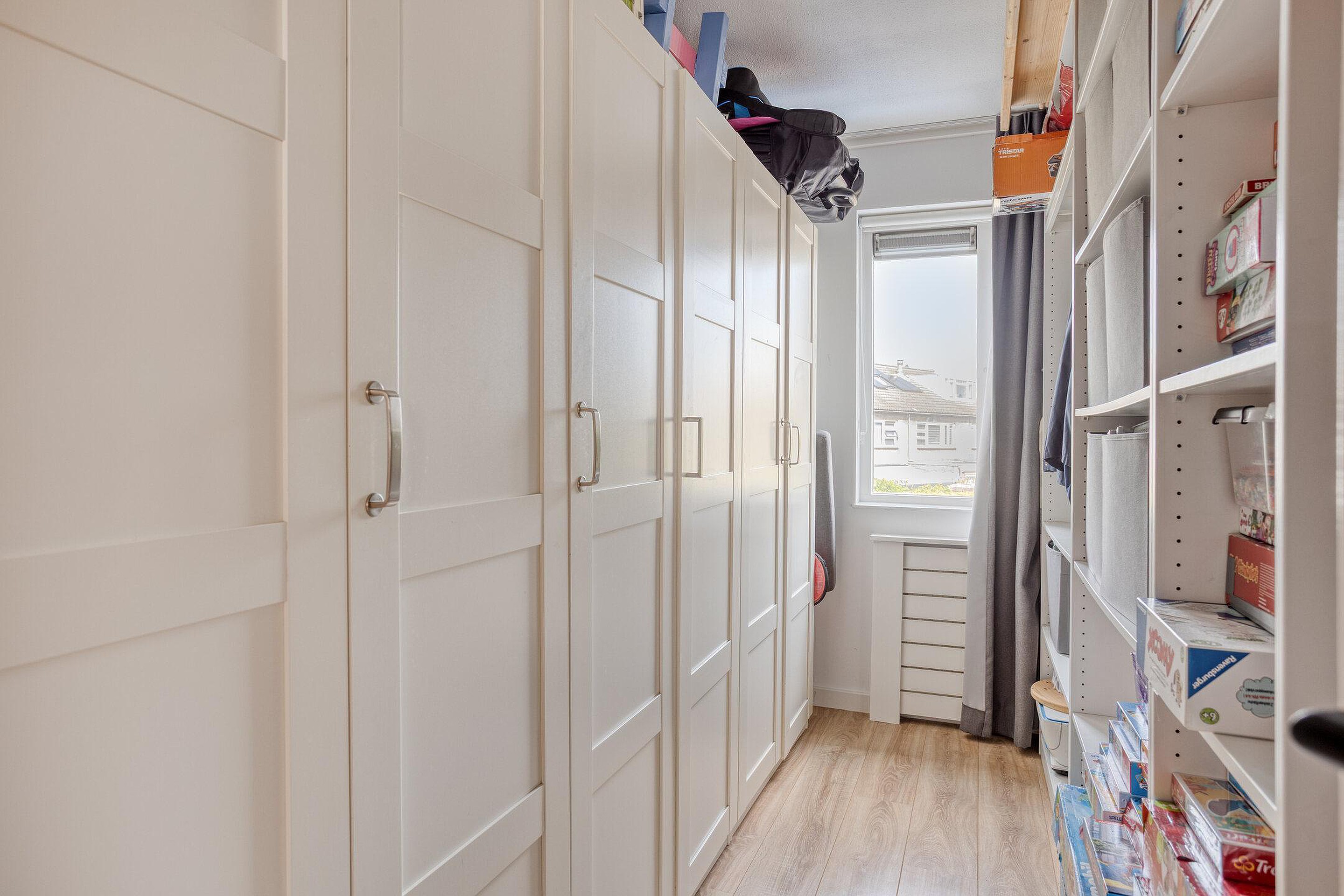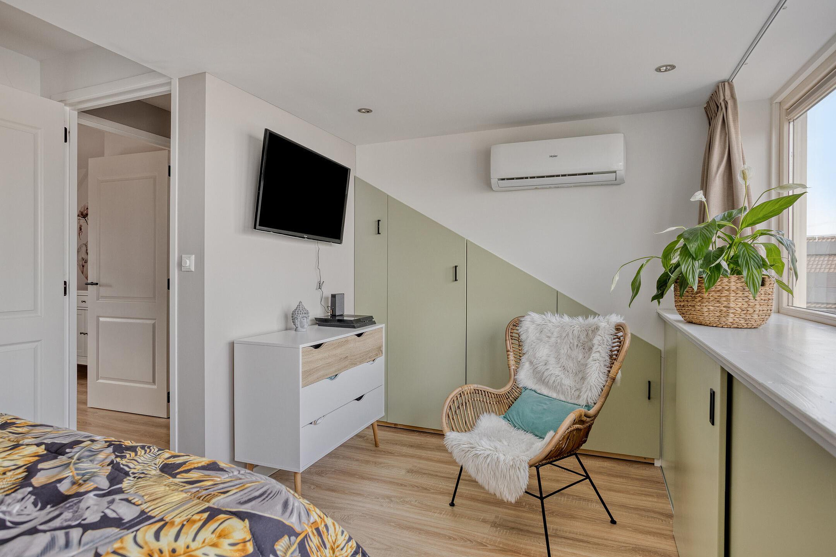 Via de kleine overloop rechts gelijk de 4e slaapkamer. Wederom groot en helemaal van nu. En dan de master bedroom. Wauw…… een giga dakkapel achter, de airco, de breedte, de mooie vaste kasten welke op maat zijn gemaakt, alles klopt hier.