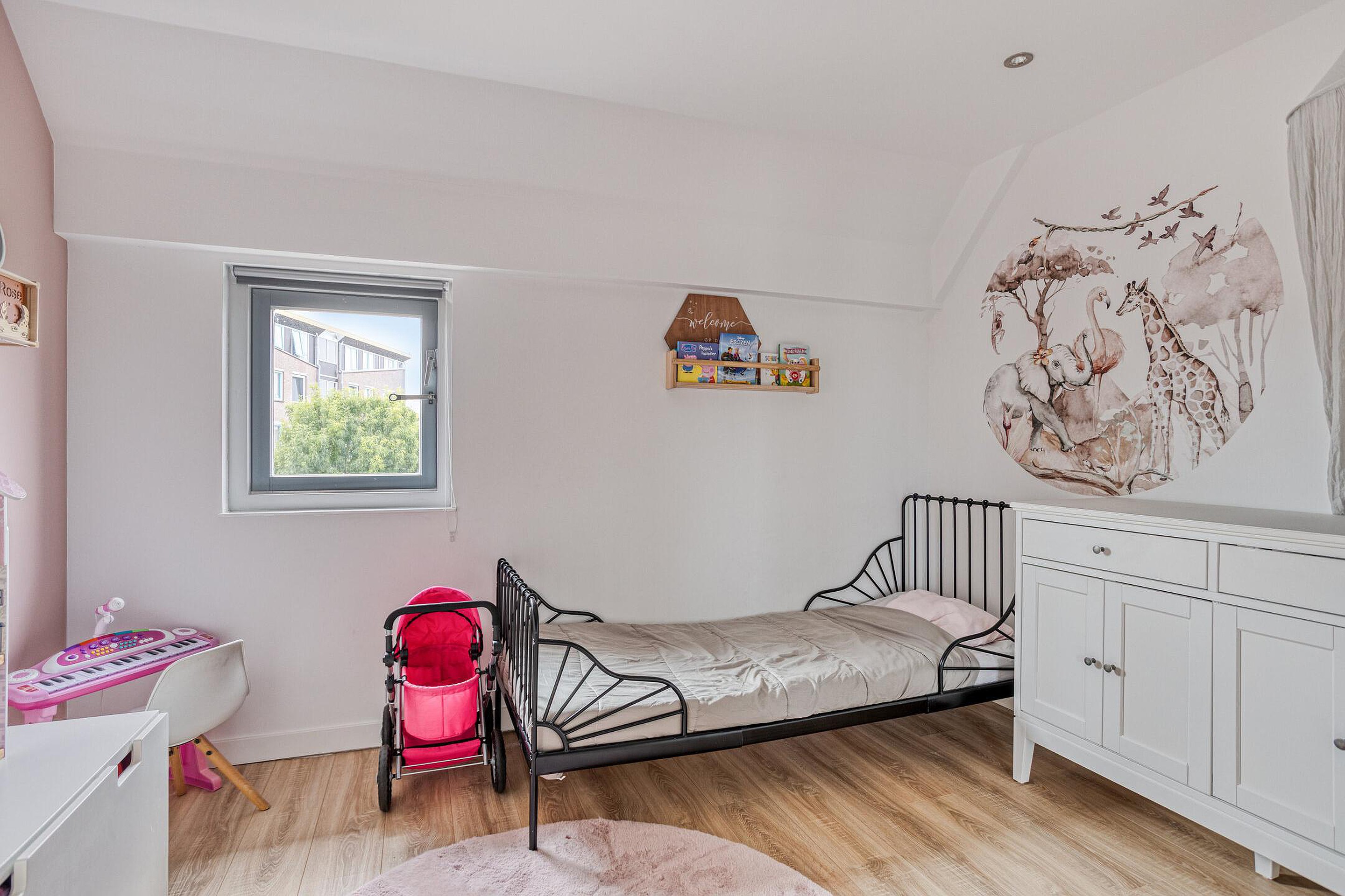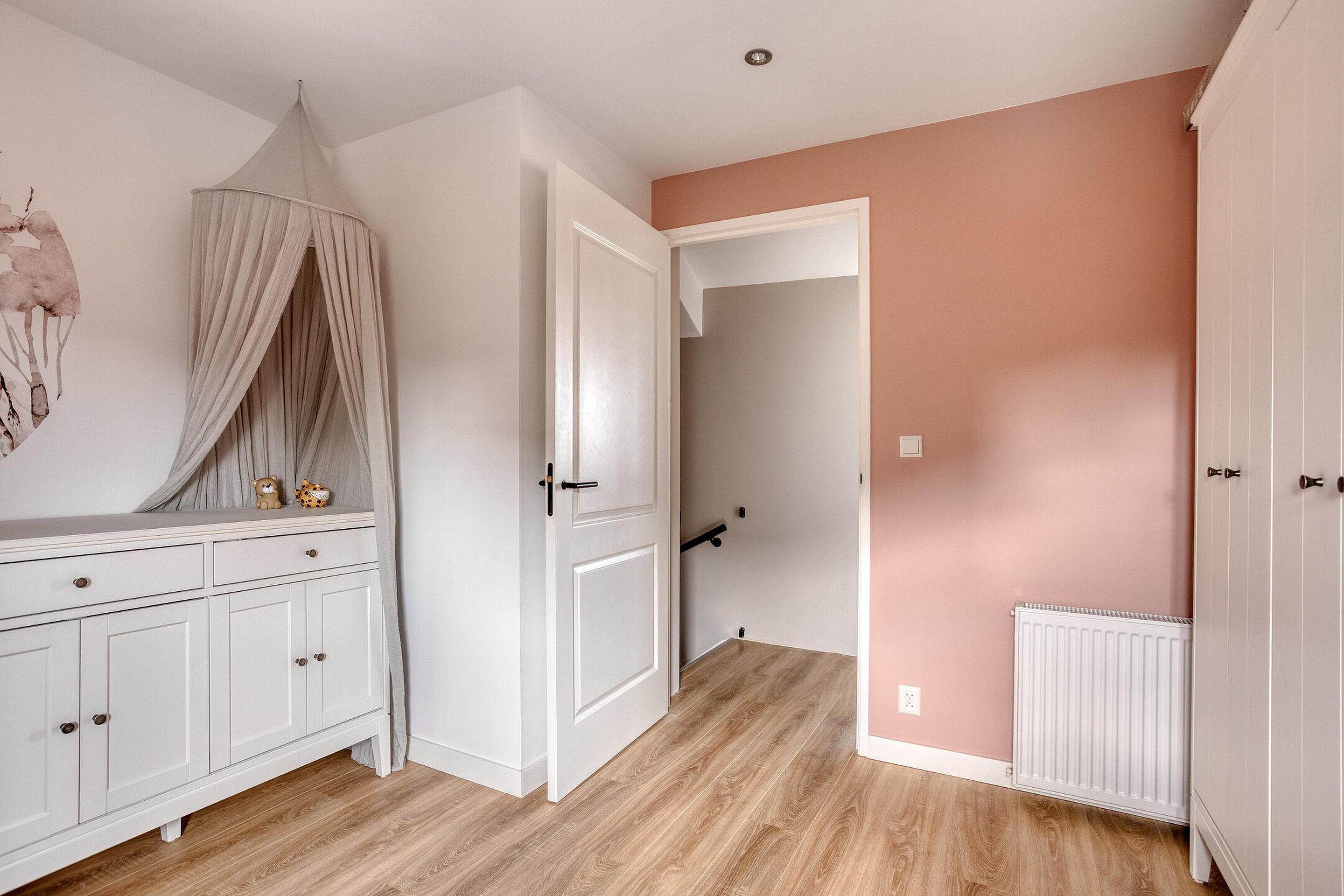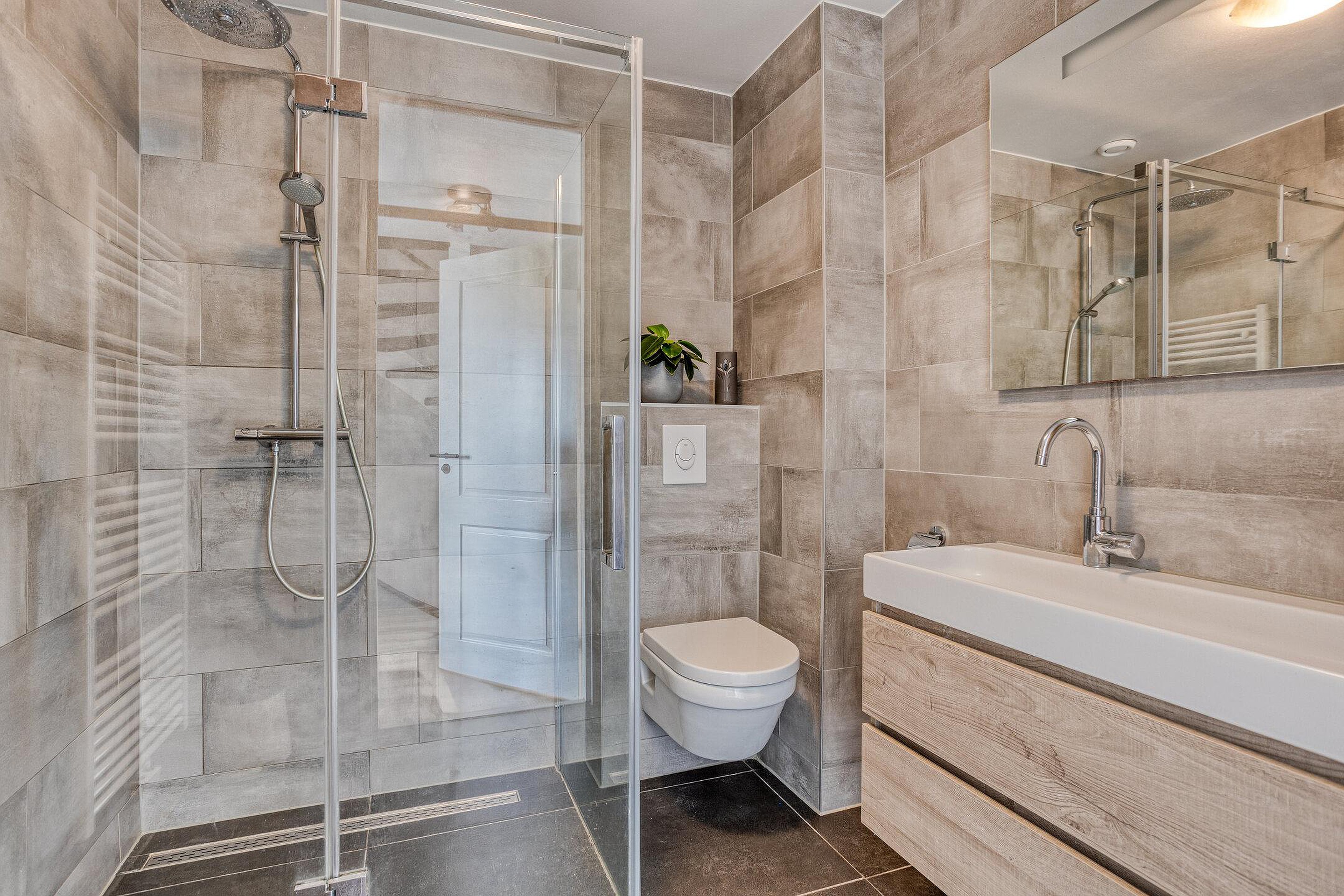 We hadden eerder al gezegd ruim toch? Via de overloop zijn de 3 slaapkamers te bereiken. 2 kamers heel goed van formaat en 1 kamer heeft een verrassing . Deze bestaat namelijk uit 2 samengevoegde kamers en is echt geweldig om als kind te hebben. Tussenin ligt de badkamer. Luxe, moderne en voorzien van een grote douche, een 2e toilet, vloerverwarming en een grote dubbele wastafel met mooi meubel. Alles is af en alles is strak. Op naar de 2e etage, want het houdt niet op.