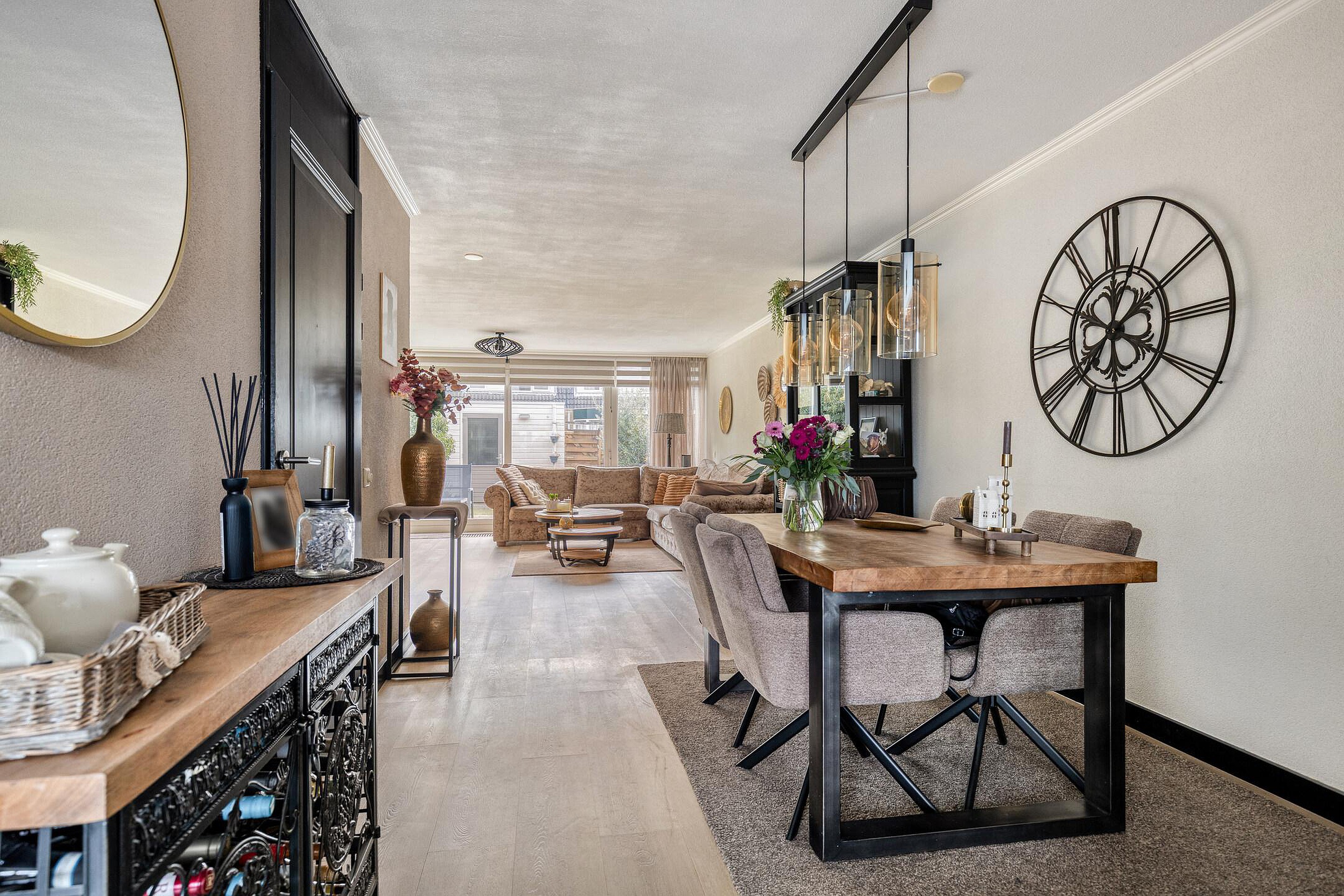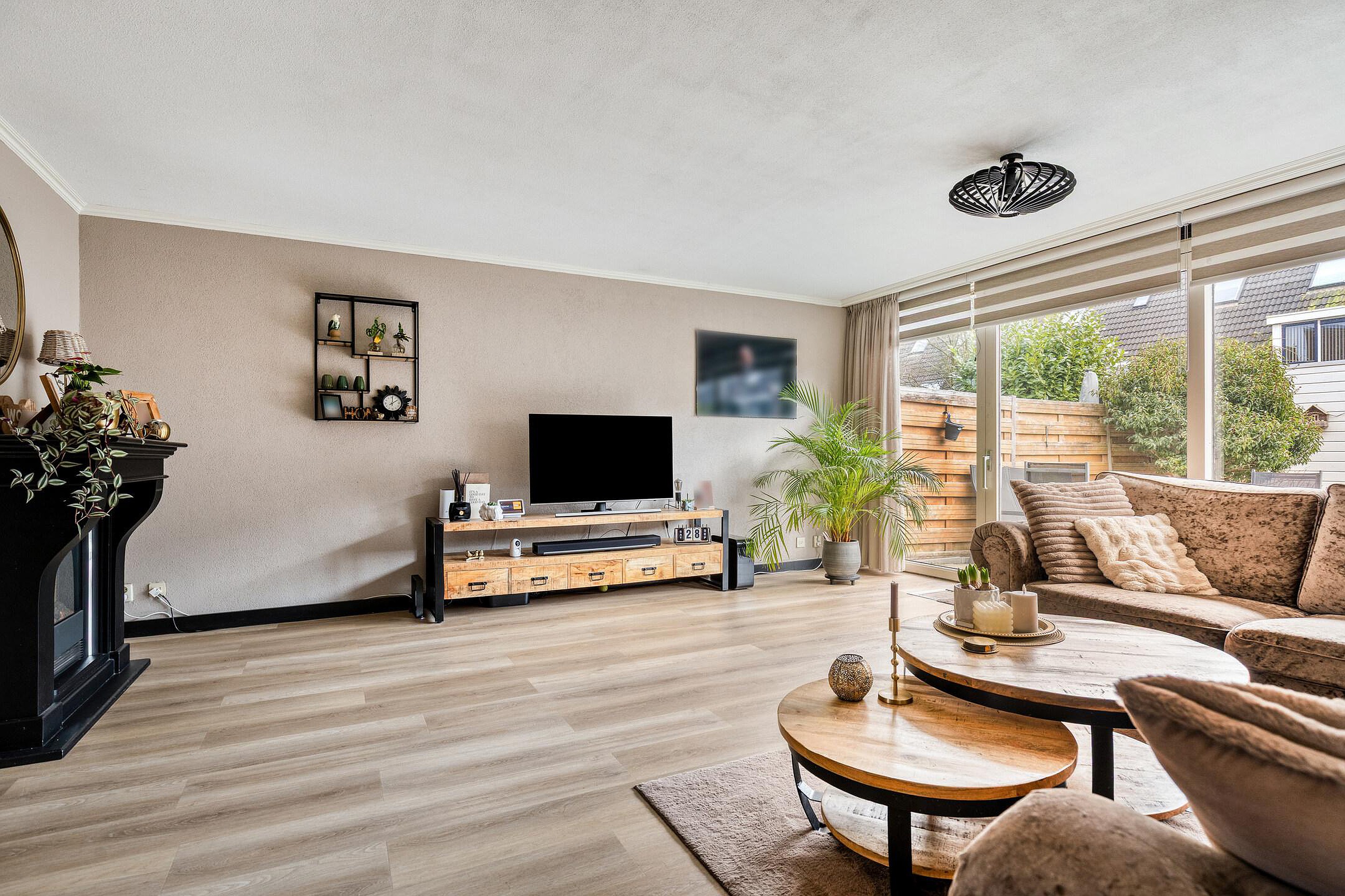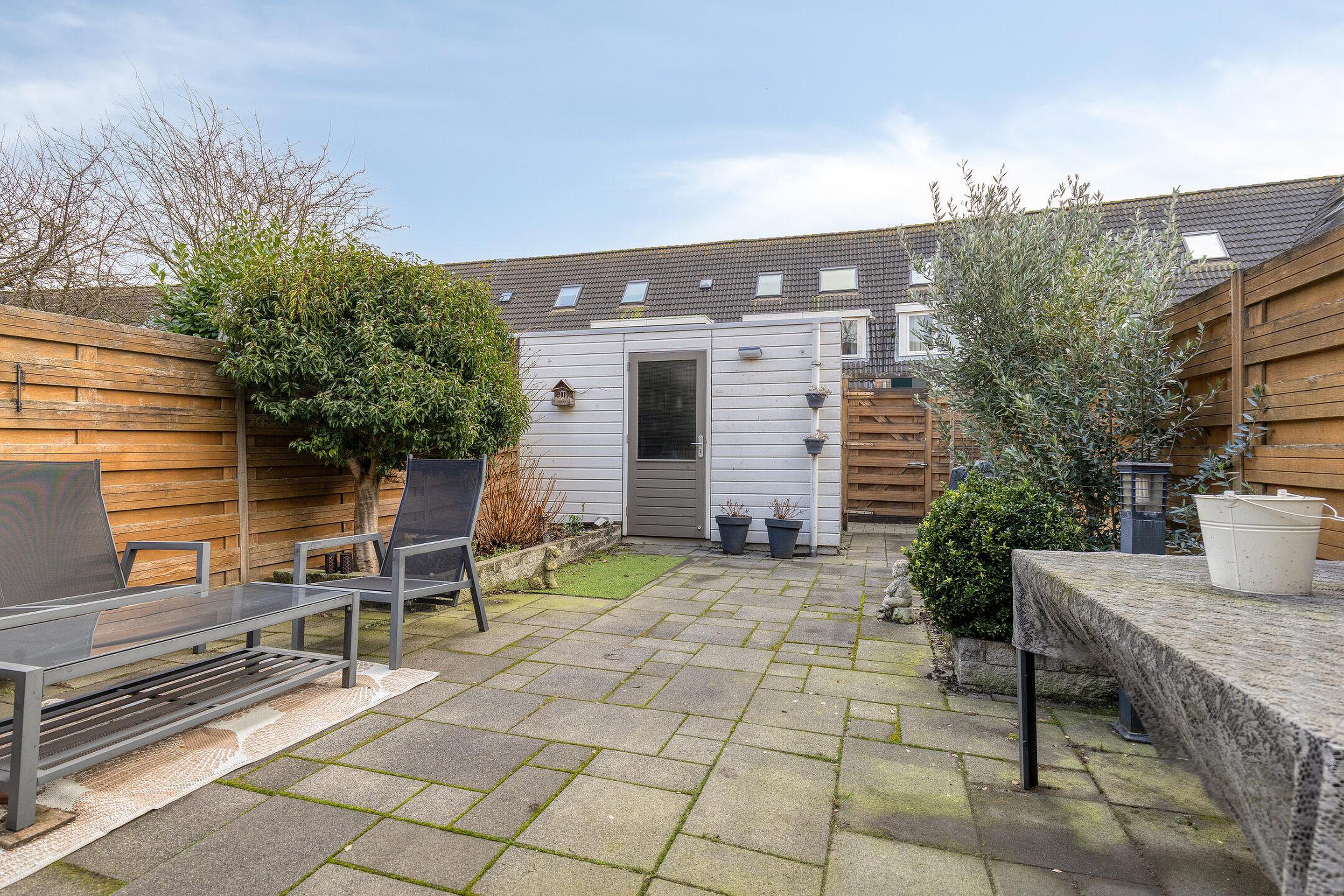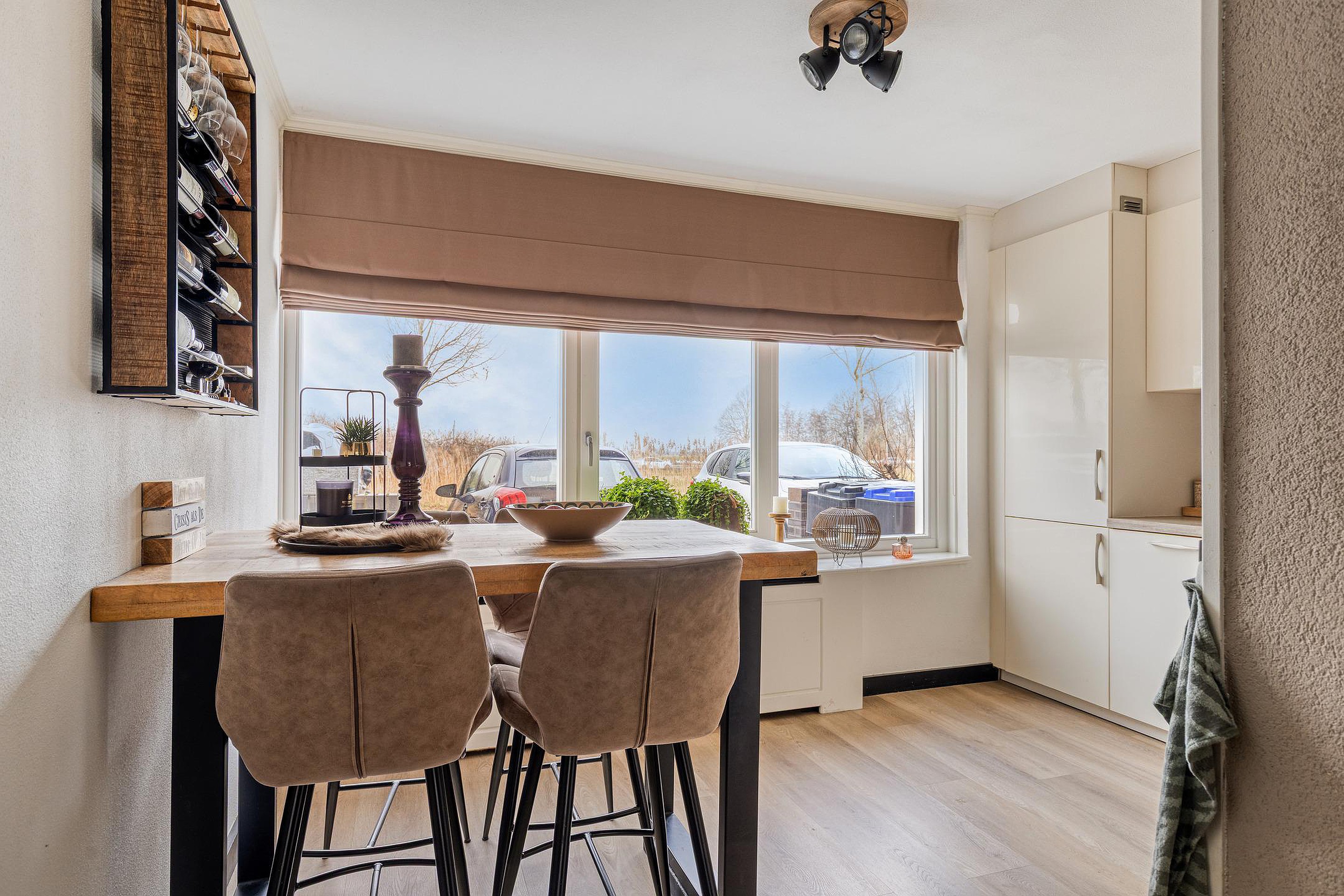 Begane grond Voortuin met twee eigen parkeerplaatsen, elektra en wateraansluiting. Entree van de woning, hal met meterkast. Uitgebouwde woonkamer met convector en schuifpui. Door de grote raampartij geniet u van een lichte woonkamer met optimaal uitzicht op de achtertuin. Er is genoeg ruimte voor een grote eettafel. Beeldt u zich eens in hoe fijn deze plek in huis kan zijn wanneer u vrienden of familie hebt uitgenodigd voor een diner... De moderne open keuken bevindt zich aan de voorzijde van de woning en beschikt o.a. over een inductiekookplaat, rvs afzuigkap, combi oven, koel/vriescombinatie, handige Le Mans kasten en een vaatwasser (2023). De gezellige eetbar met vier barstoelen worden door de verkoper ter overname aangeboden. Het kozijn in de keukenruimte is in 2025 vernieuwd. De hal, woonkamer en keukenruimte zijn afgewerkt met een onderhoudsvriendelijke pvc vloer. Zonliefhebbers opgelet! Via de schuifpui in de woonkamer bereikt u de zonnige achtertuin gelegen op het zuiden met elektrisch bedienbaar zonnescherm, houten berging en een achterom. Via de tussenhal met ruime trapkast en moderne toiletruimte (2016) bereikt u via de luxe beklede trap (inclusief ledverlichting) de 1e verdieping.