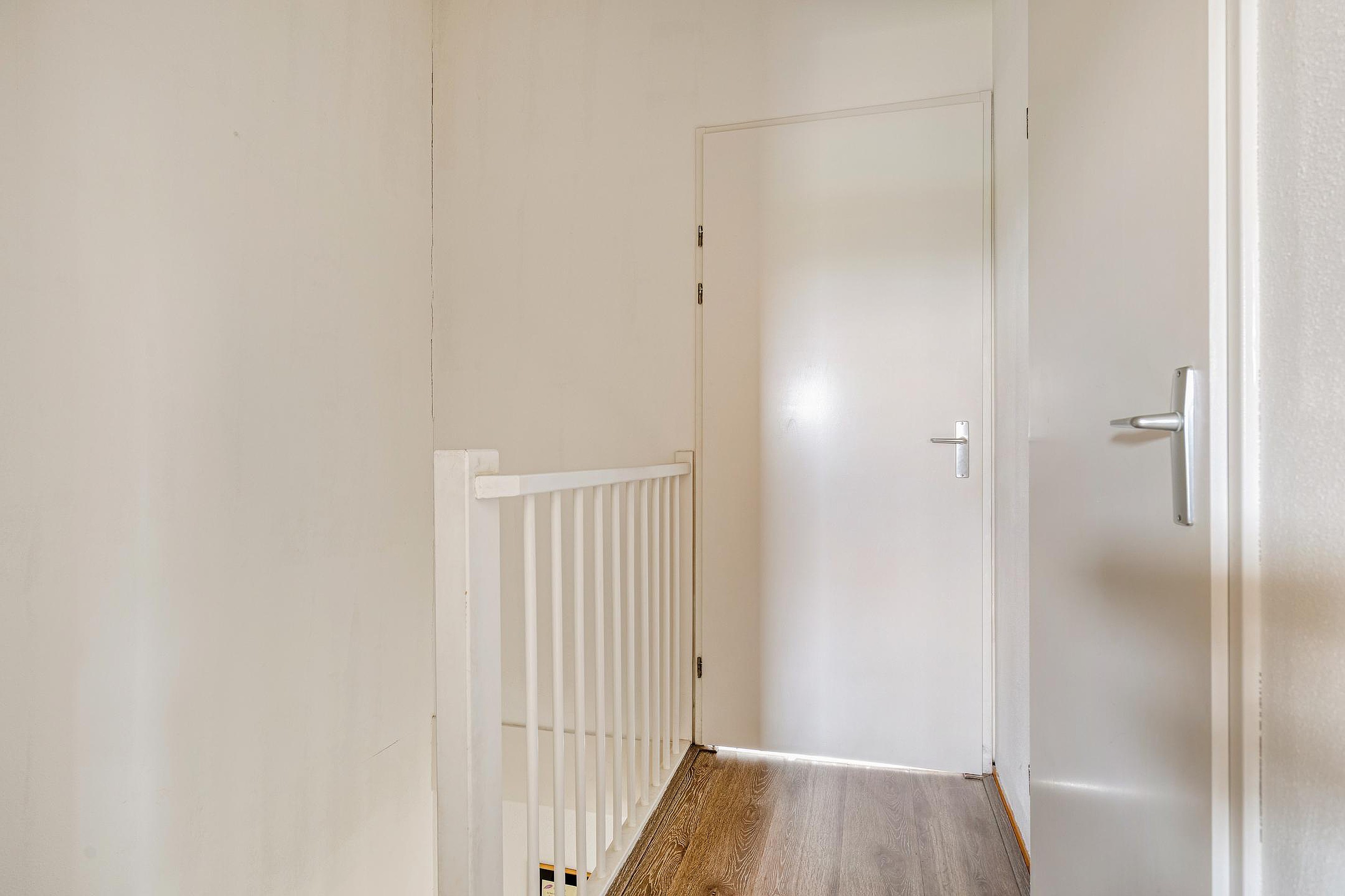 Ook de trap naar de 2e verdieping is luxe afgewerkt. Overloop met vaste kast, cv-opstelling (2016) en de opstelplaats voor de mechanische ventilatie-unit. Aan de voorzijde van de woning vindt u een slaapkamer. Aan de achterzijde van de woning bevindt zich de wasruimte/opbergkamer (oorspronkelijk slaapkamer).