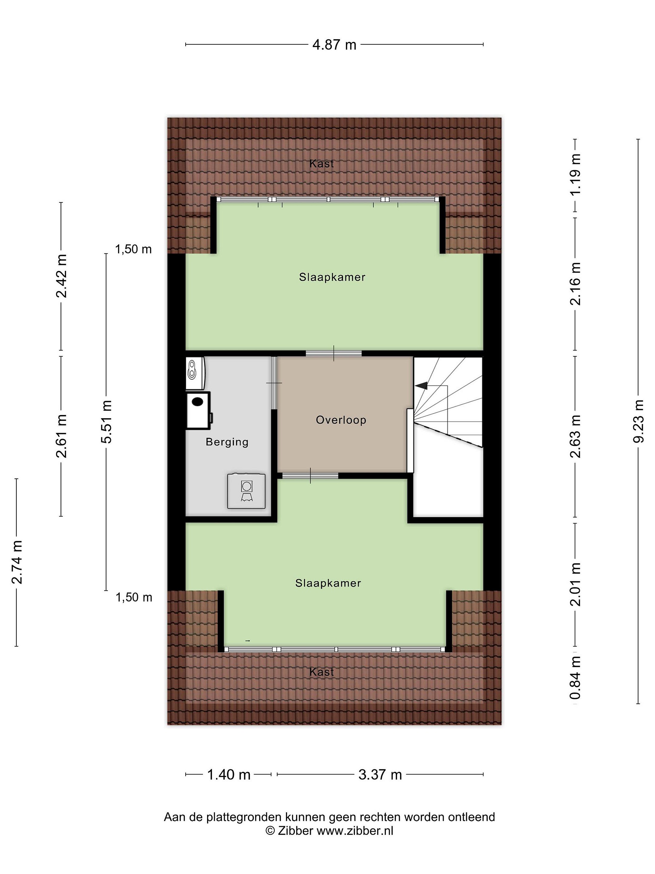 Eventueel kun je op deze verdieping nog een derde slaapkamer creëren, maar dat is niet noodzakelijk dankzij de ruimte op zolder. Op naar de 2e etage