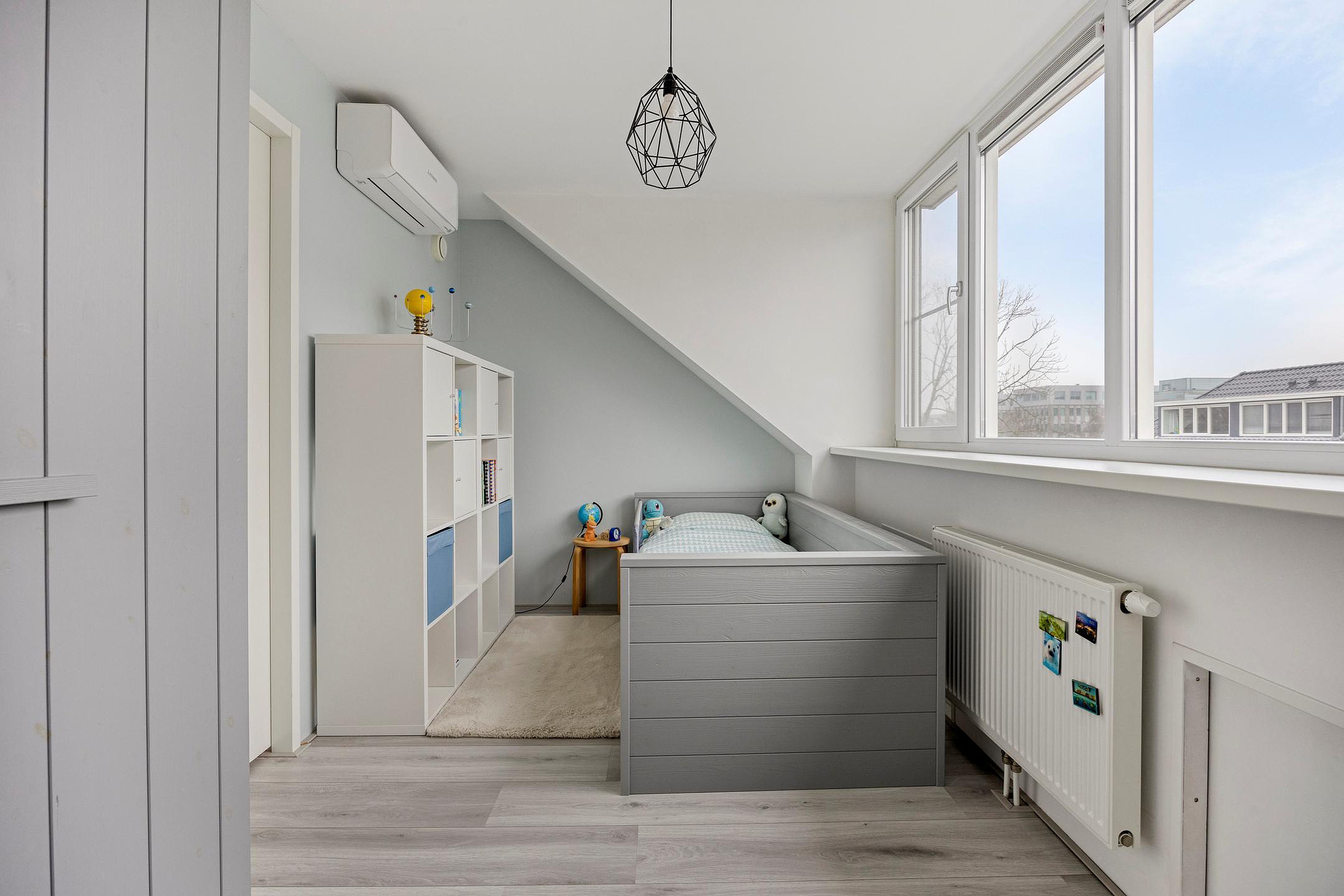 Door de dakkapellen aan zowel de voor- als achterzijde zijn hier twee royale slaapkamers ontstaan. Beide kamers zijn strak afgewerkt en voorzien van een airco. Deze verdieping is daarmee ideaal als combinatie van slapen, werken of hobbyruimtes.