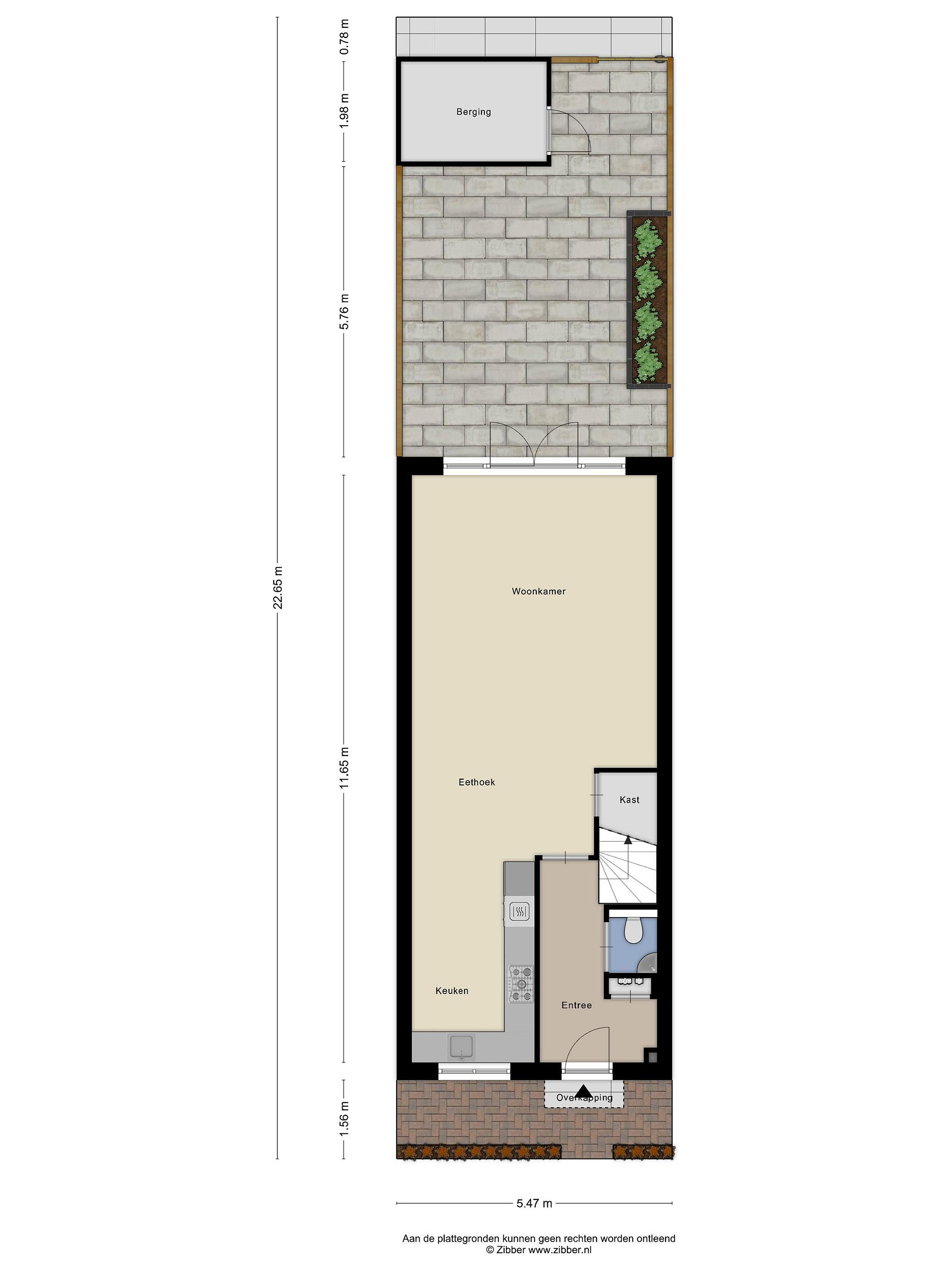 Begane grond Wandel de straat in, want je kan niet met de auto hier komen. Heerlijk voor spelende kinderen en de rust. Je komt binnen in een ruime entree met de meterkast, het moderne toilet met een fontein en de trap naar boven. De breedte en het gevoel van ruimte vallen direct op. En dat is pas in de gang. Door naar de woonkamer. Die is echt uitzonderlijk ruim: bijna 5 meter breed en circa 7,5 meter diep. Vanuit de bouw is al gekozen voor een uitbouw waardoor je echt ruimte hebt. Dankzij de openslaande deuren stroomt het licht naar binnen en loopt je zo de tuin in. Het geheel is mooi en straks afgewerkt op de vloer (PVC) en de wanden en genoeg ruimte voor al je meubels.