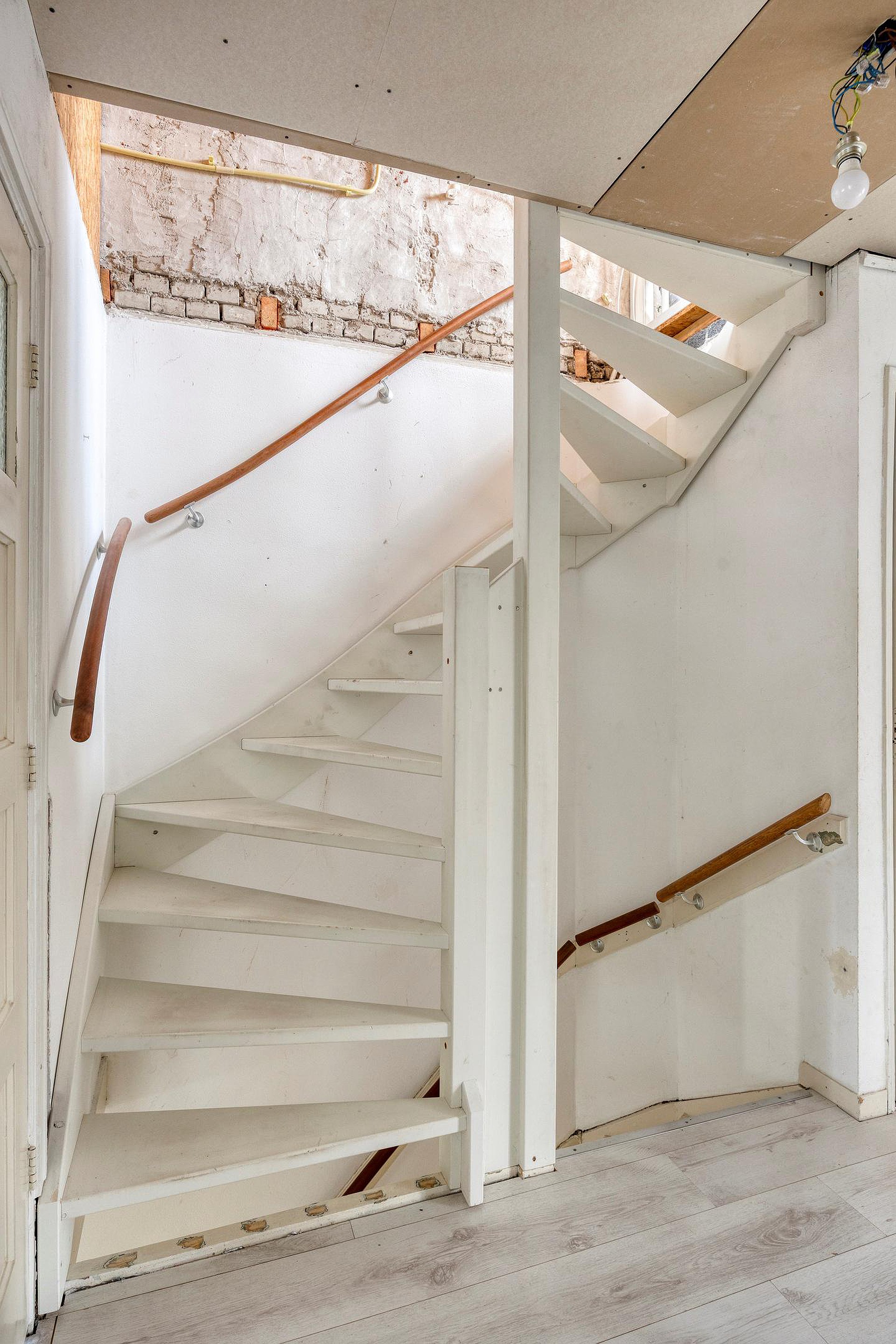 Op de eerste verdieping kun je je eigen smaak echt laten spreken. Via de overloop met tweede toilet kom je bij drie slaapkamers: twee aan de voorzijde en één aan de achterzijde. Hier is al begonnen met verbouwen, maar het werk is niet afgerond. Radiatoren moeten nog worden teruggeplaatst en de afwerking moet nog gebeuren. Werk aan de winkel dus, maar daarna heb je ook echt wat. De badkamer is netjes van formaat met ligbad, wastafel en douche, al is moderniseren naar de huidige tijd zeker het overwegen waard.